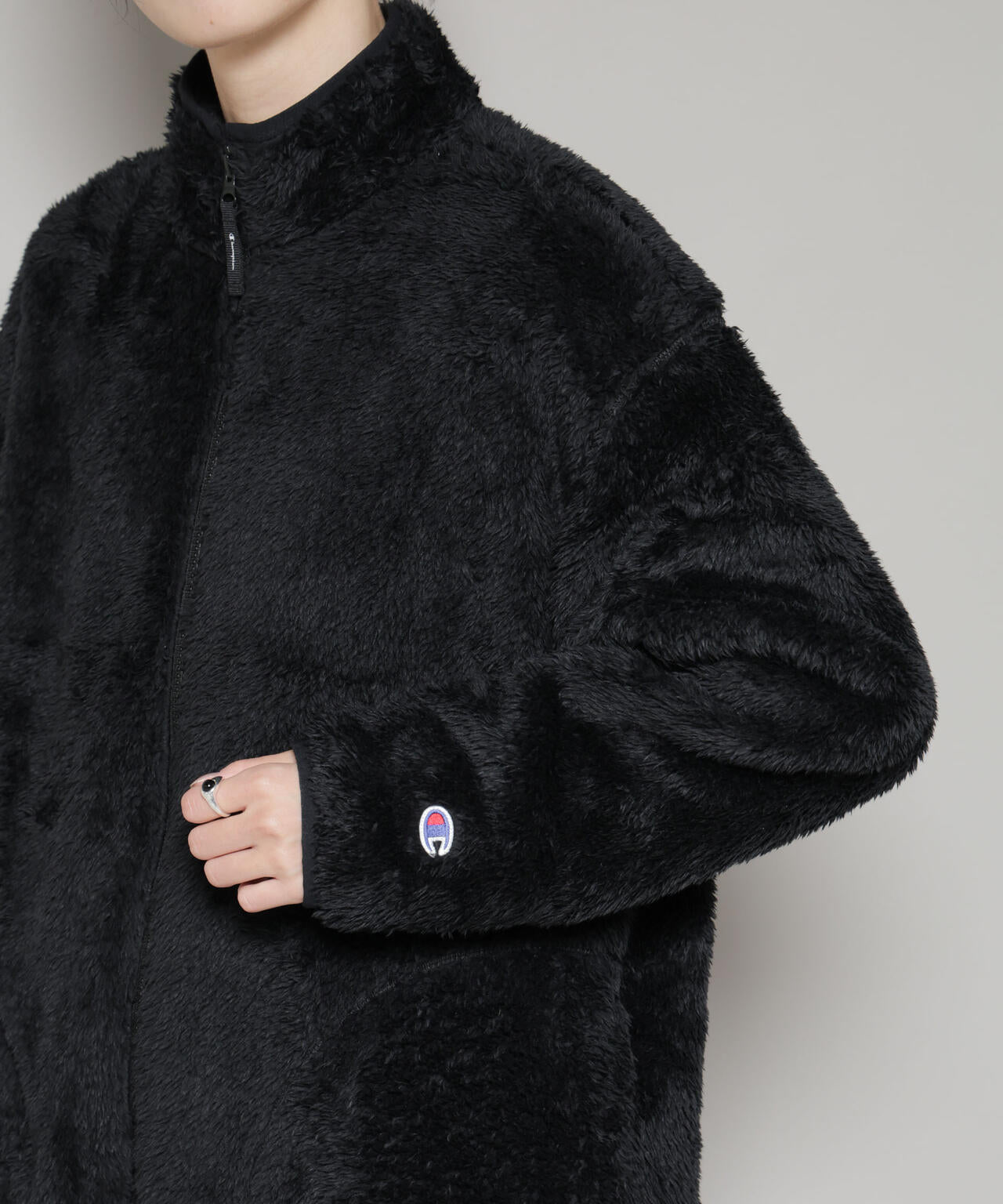 ジャンパー引手は「チャンピオン」ロゴのプリント入り