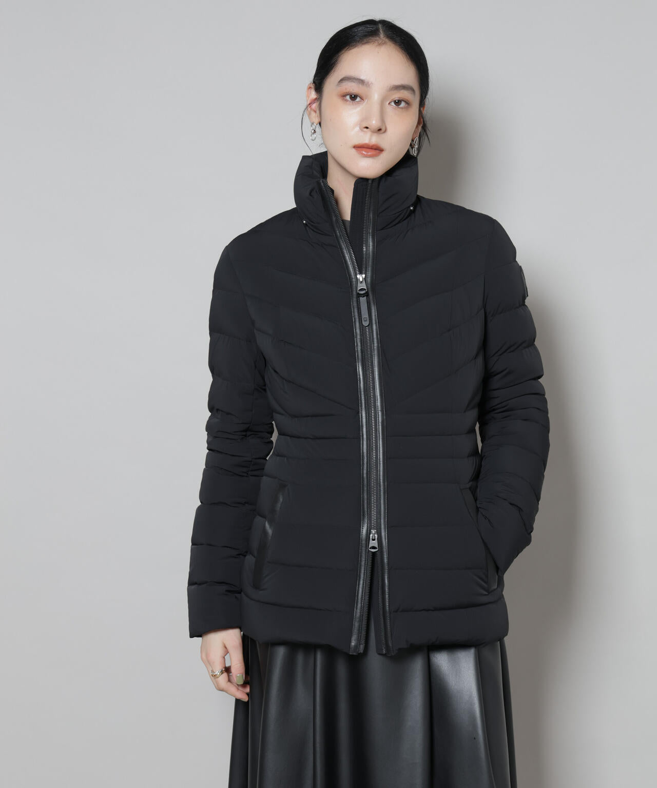 ラグジュアリー感漂うストレッチ素材のダウンジャケット。美しいシェイプラインが女性らしさを引き立ててくれるので、ON/OFFでサマになるアイテムです。