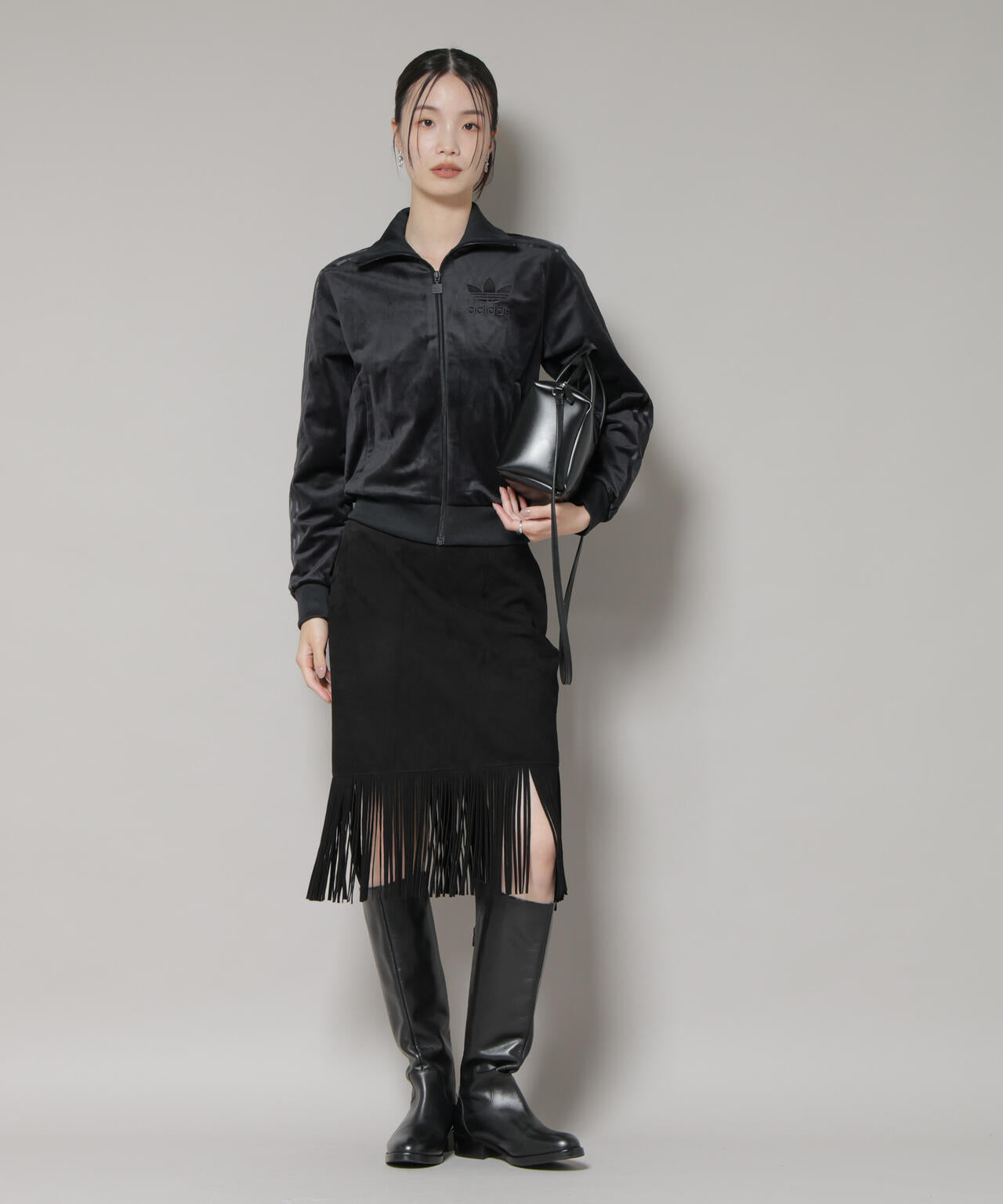 柔らかなベロア生地を使用したアディダス定番のトラックジャケット