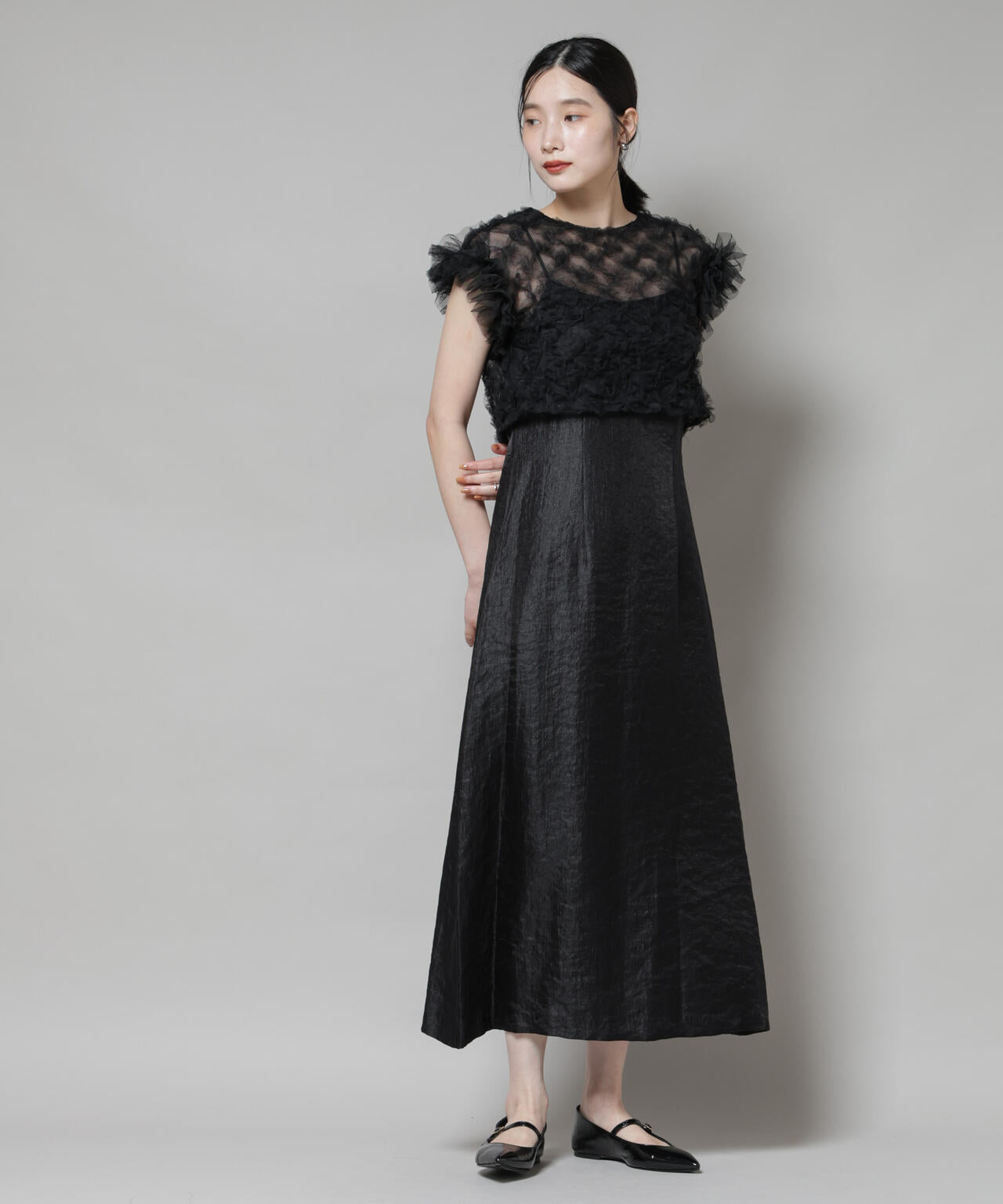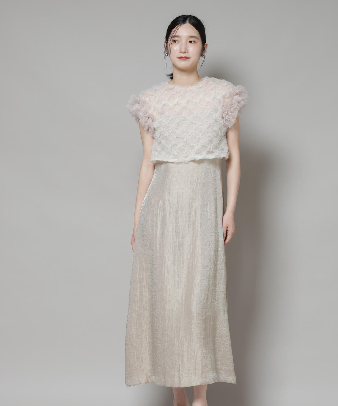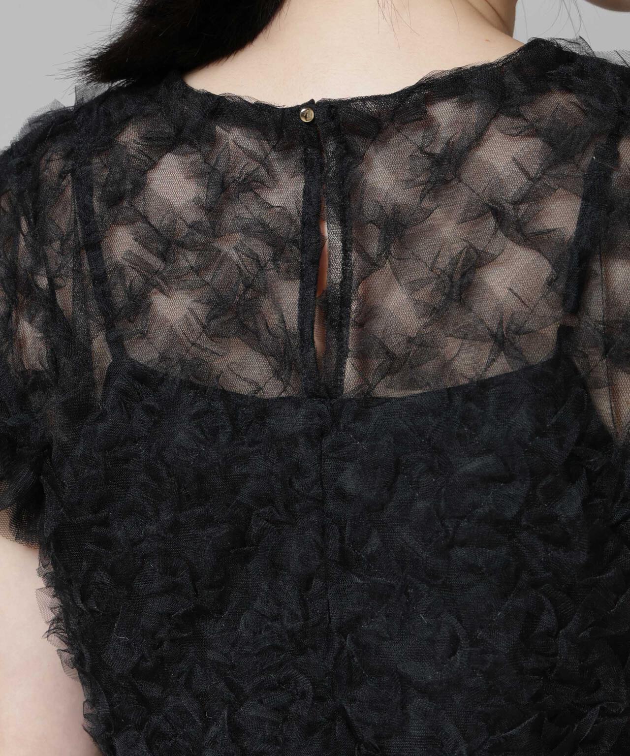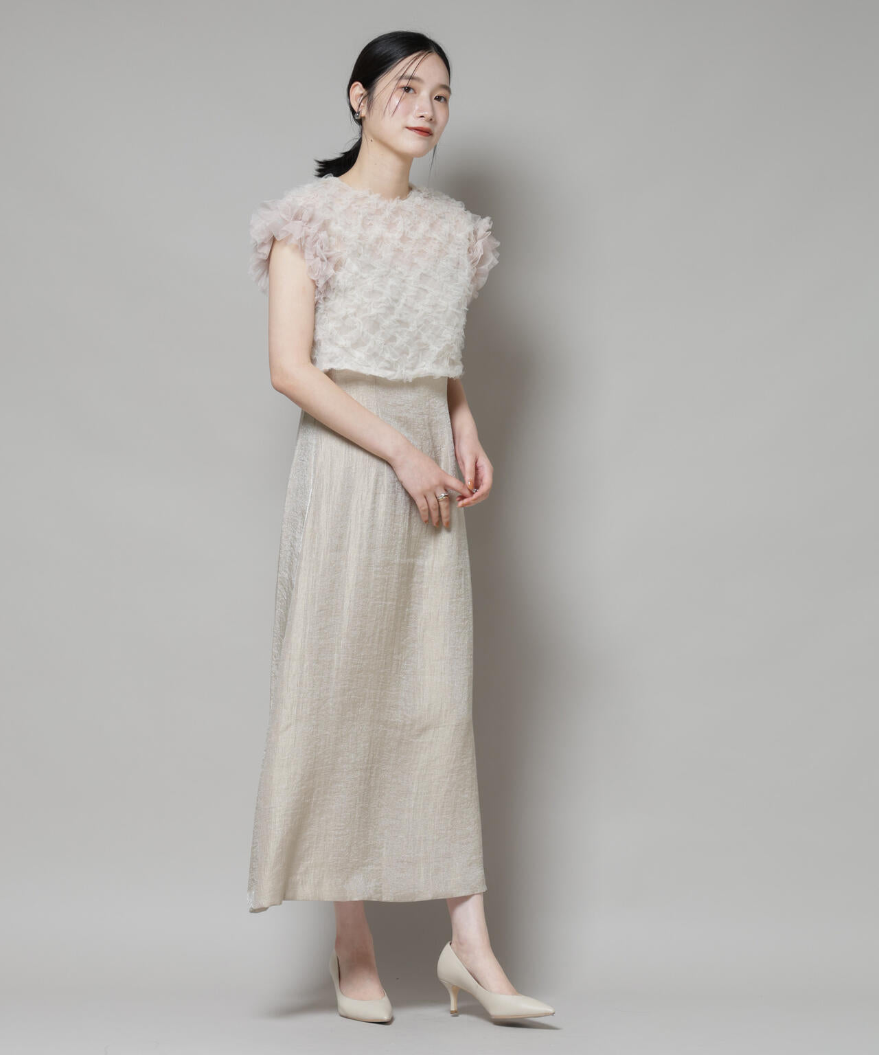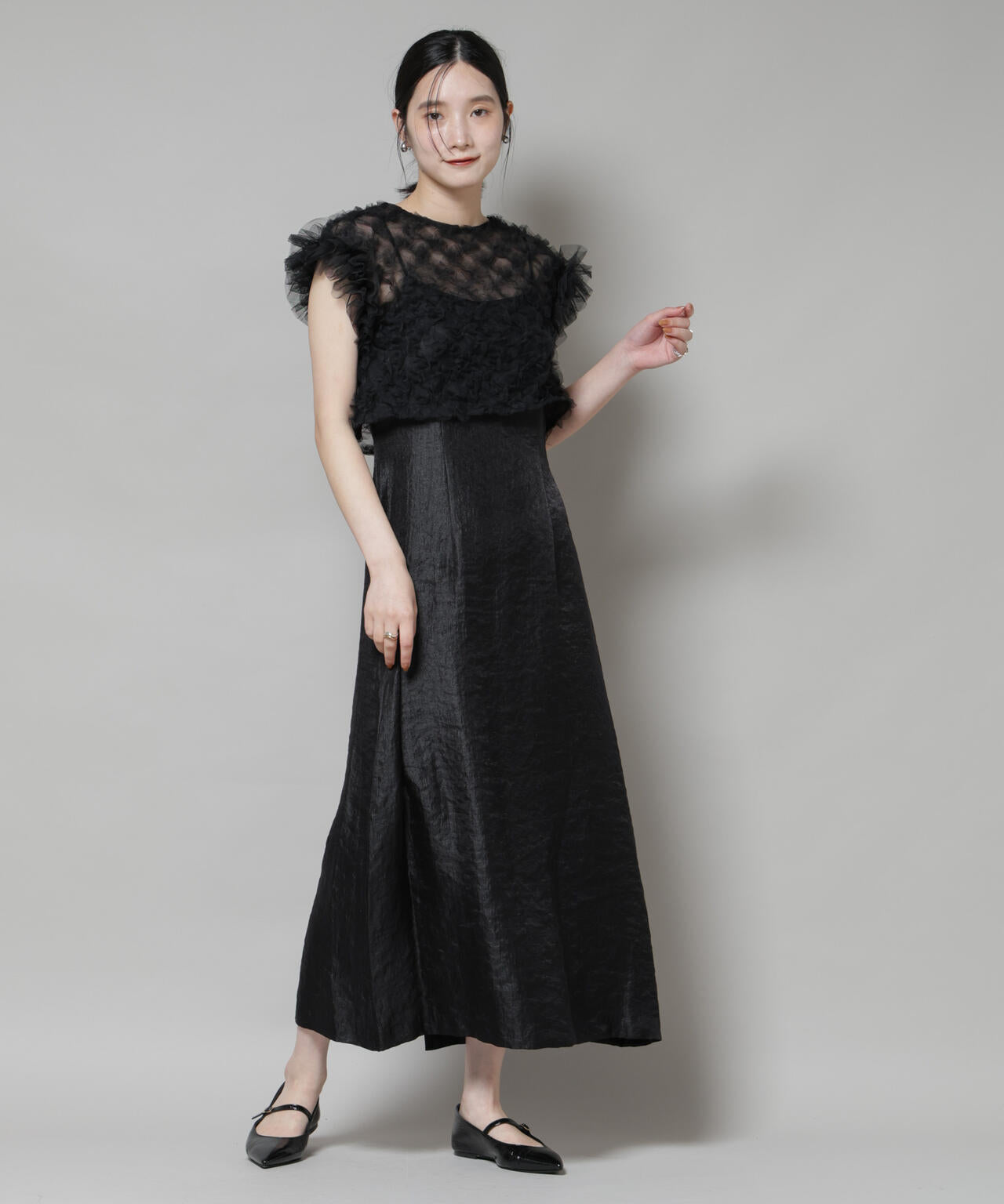 存在感たっぷりの立体チュールブラウスが目を惹くドレス