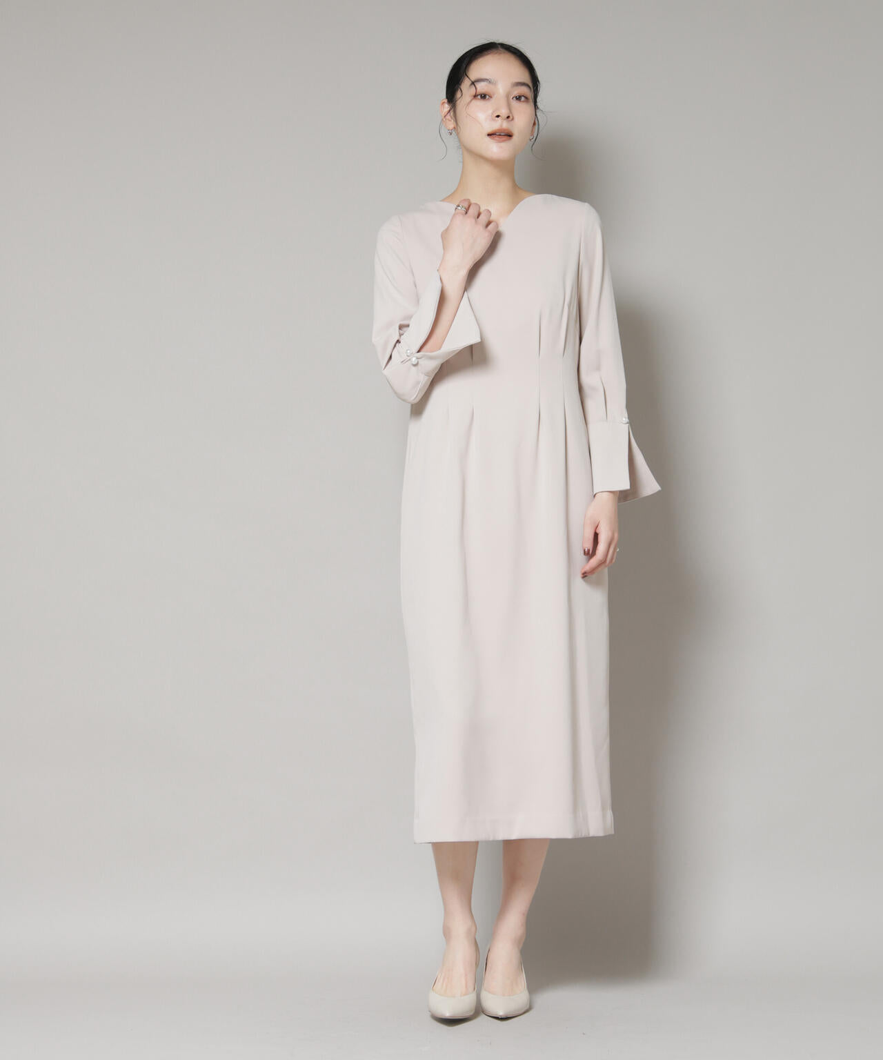 袖口の1粒パールが華やかなアクセントを効かせるワンピース