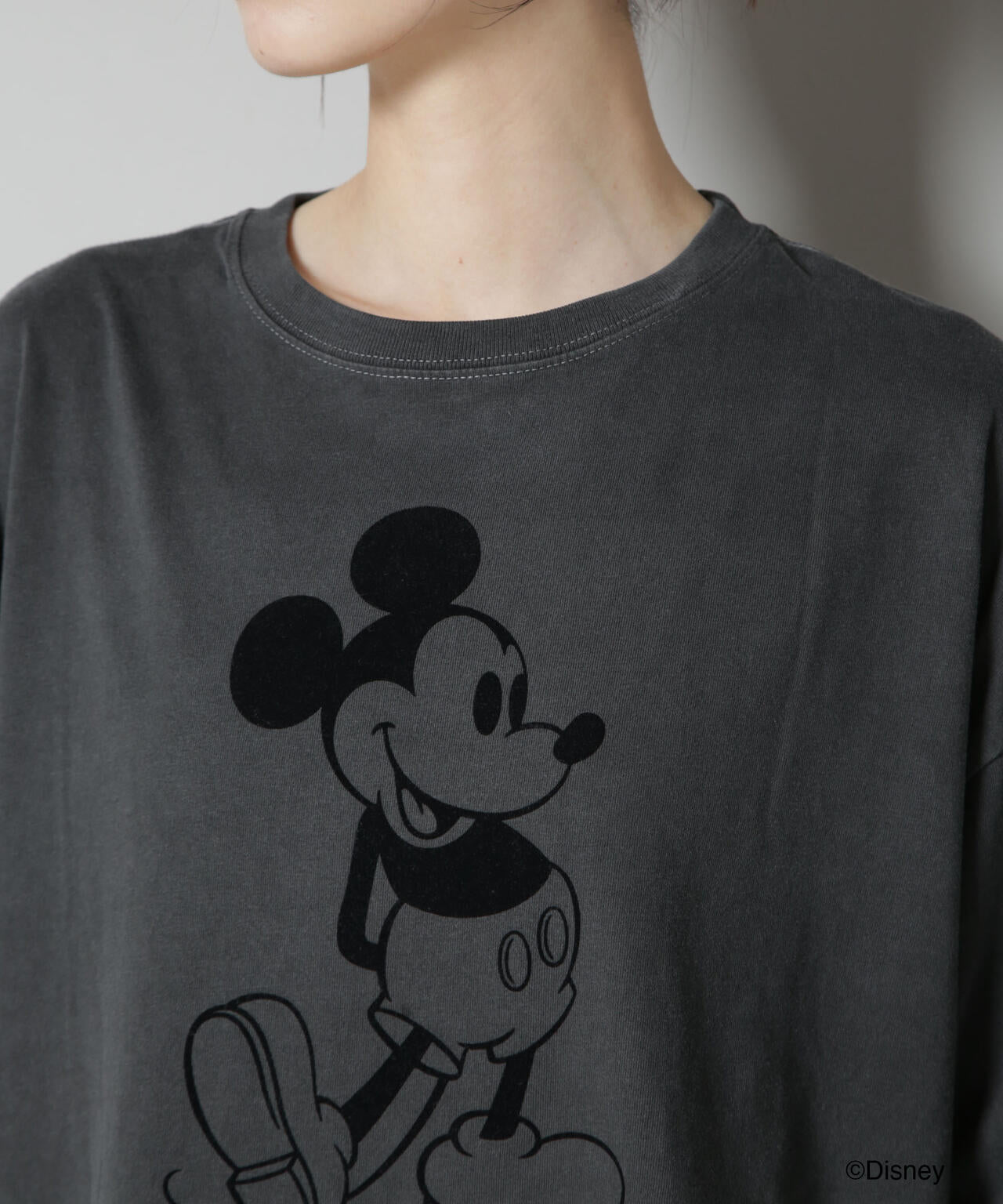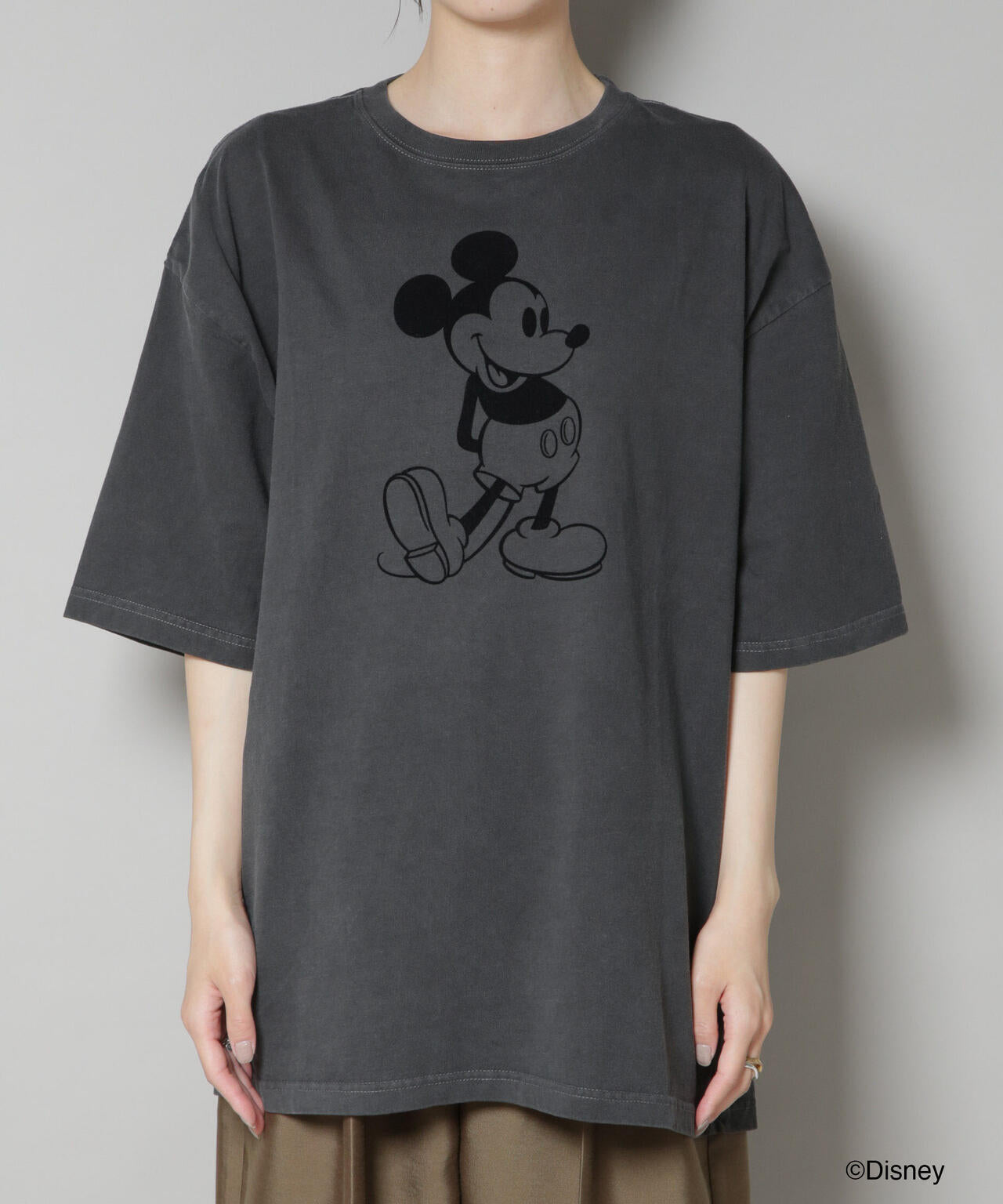ボディと同色の「ミッキーマウス」のプリントがこなれ見えする半袖Tシャツ。リラックス感のあるビッグシルエットで、デイリーの着回しに重宝するアイテムです。