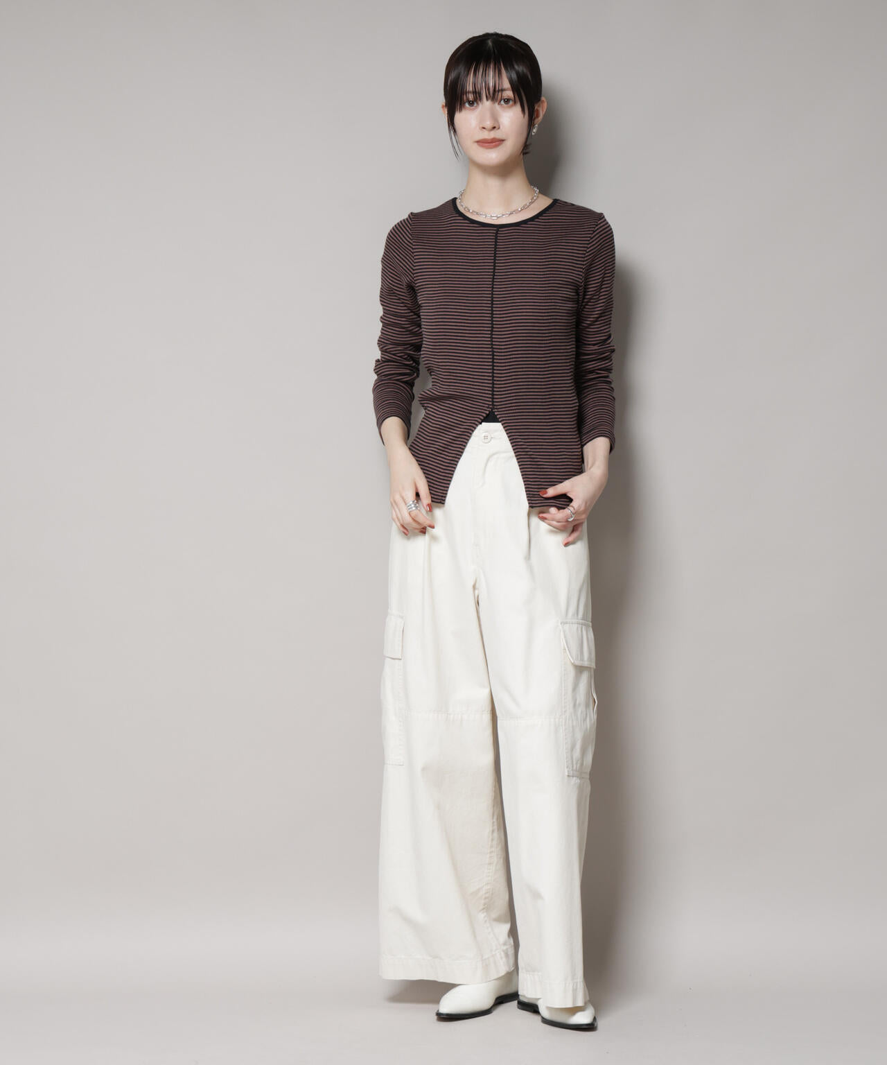 トップスとしての着こなしはもちろん、レイヤードスタイルにも重宝する長袖カットソー