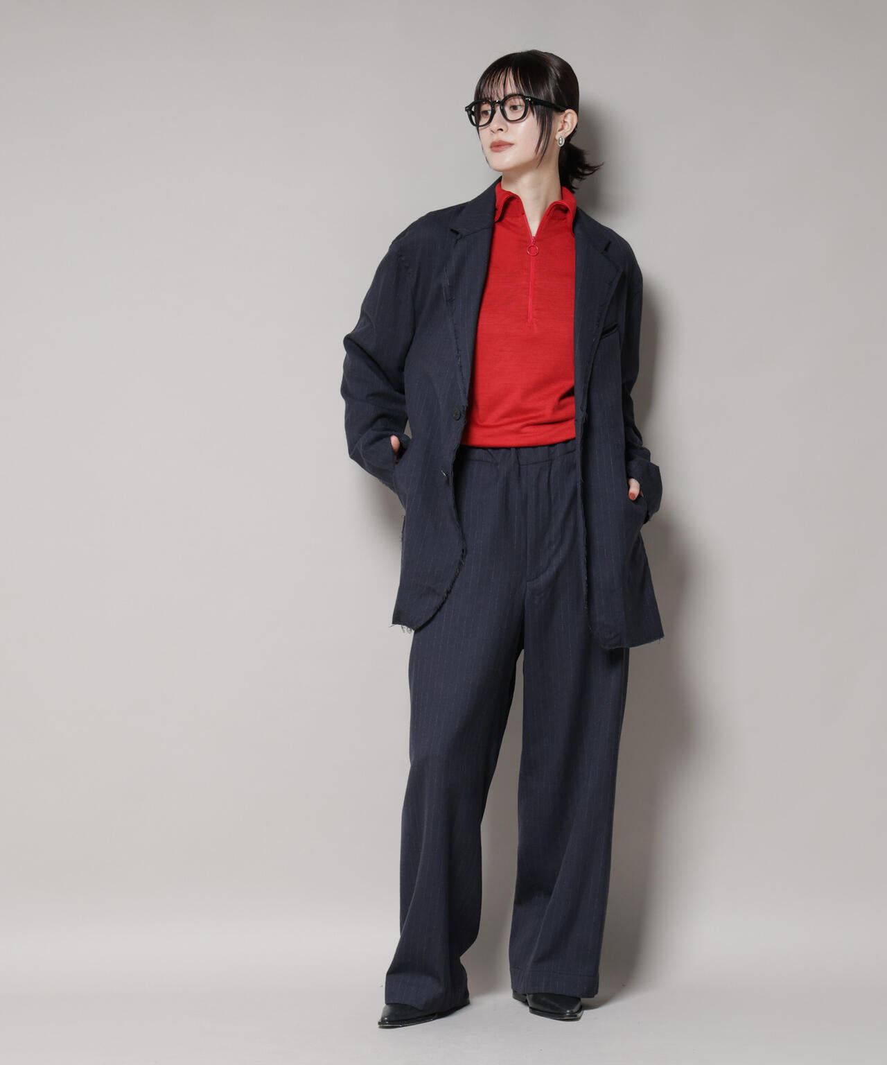 ・同素材展開のジャケットとのセットアップスタイルがおすすめ