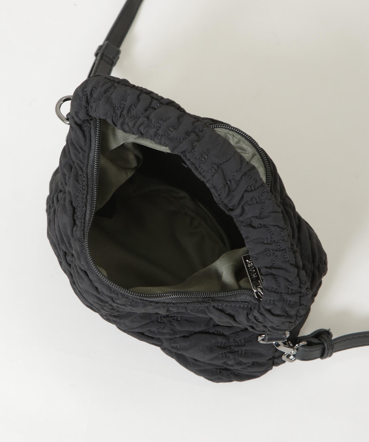 Twist(ツイスト)加工を施したツイル素材をキルティング風に仕立てたボディバッグ