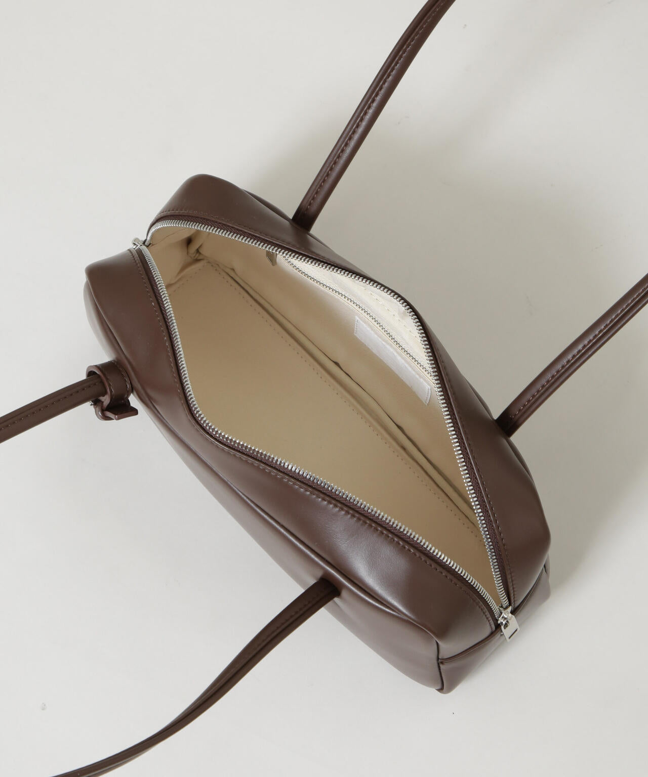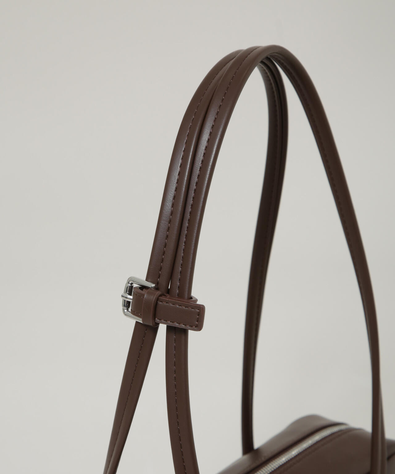 ハンドルは細めのダブルストラップで、肩掛けでも手持ちでもバランス良く持てる仕様