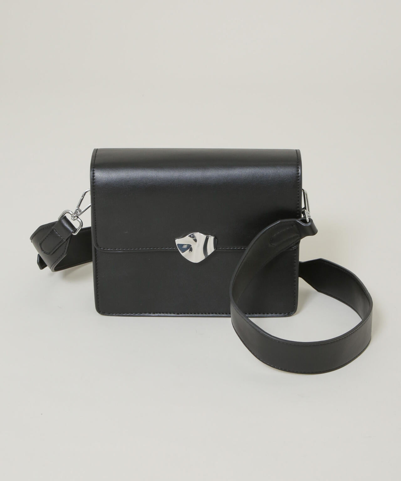 ・フロントのメタルディテールが洗練感を効かせるクロスボディバッグ