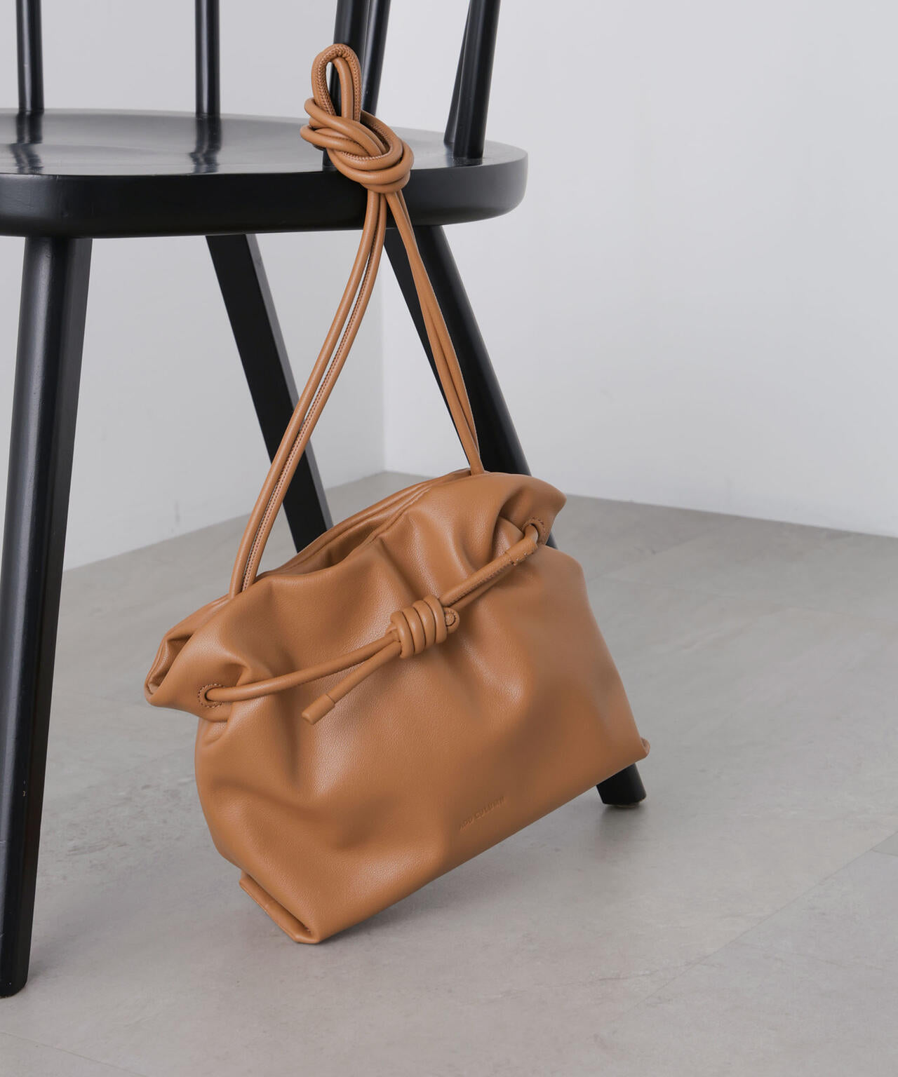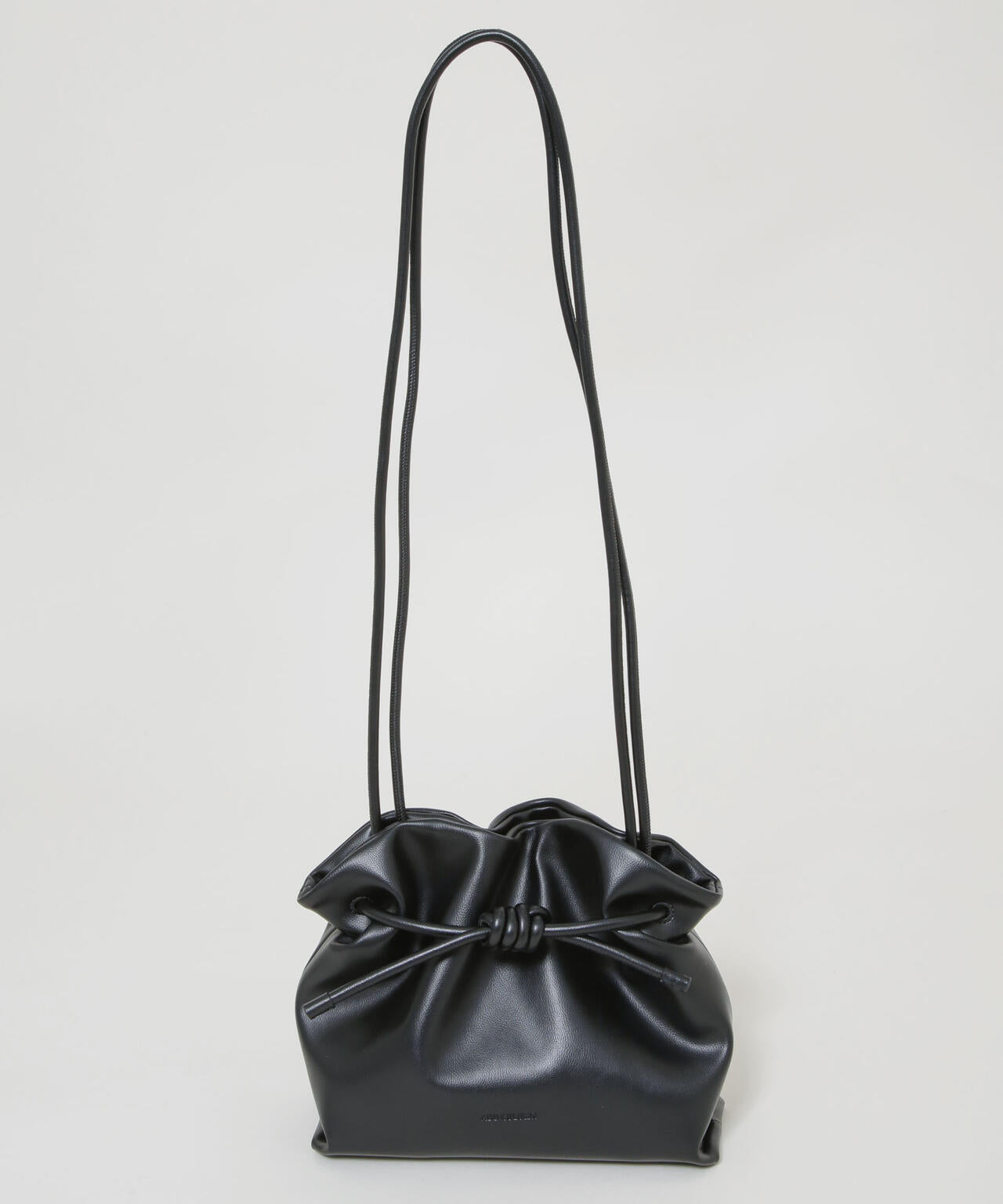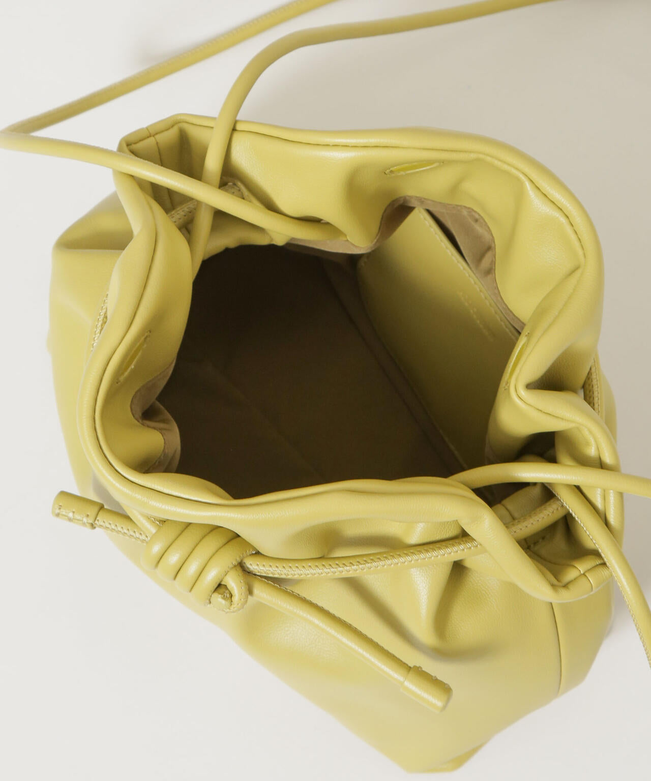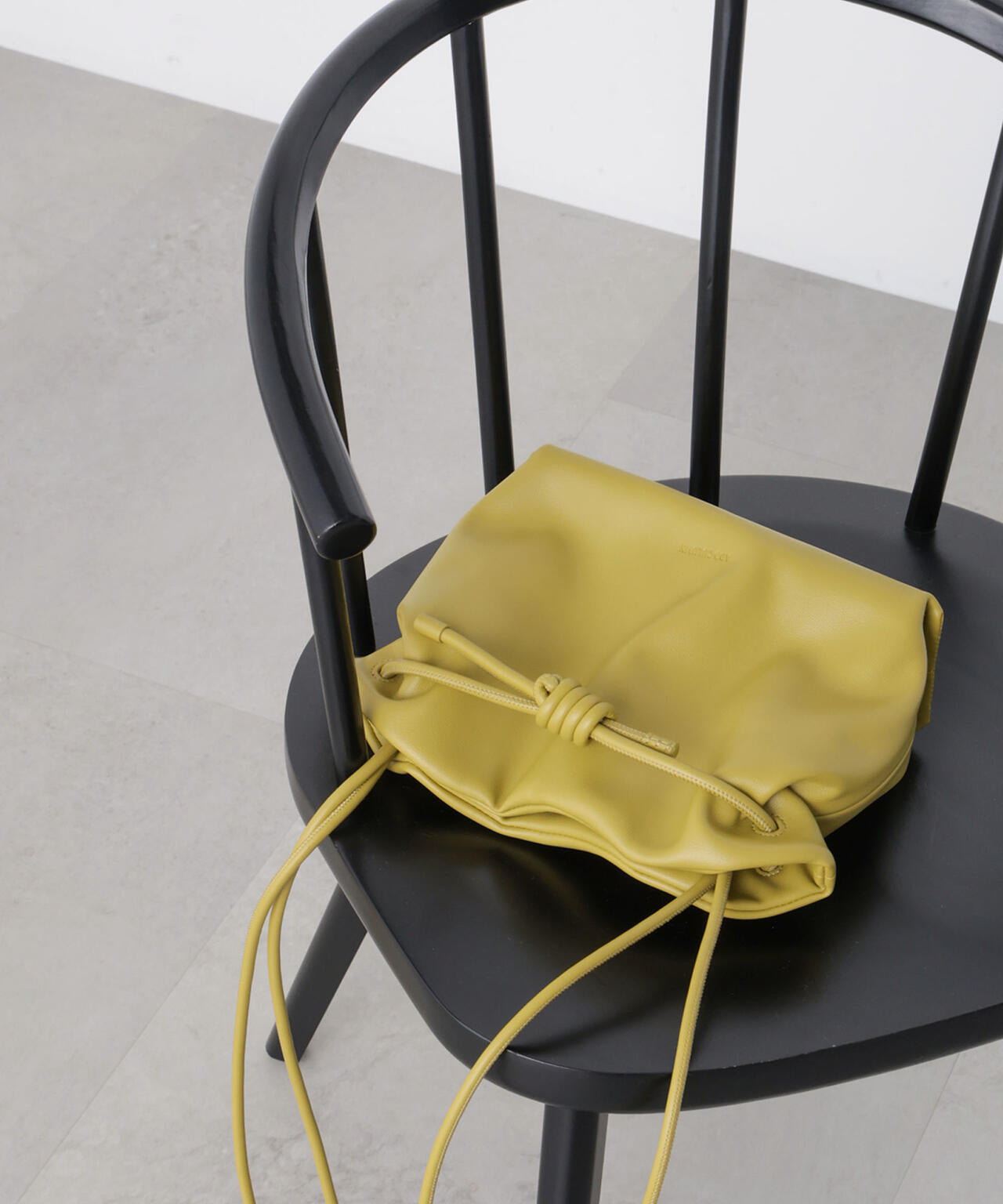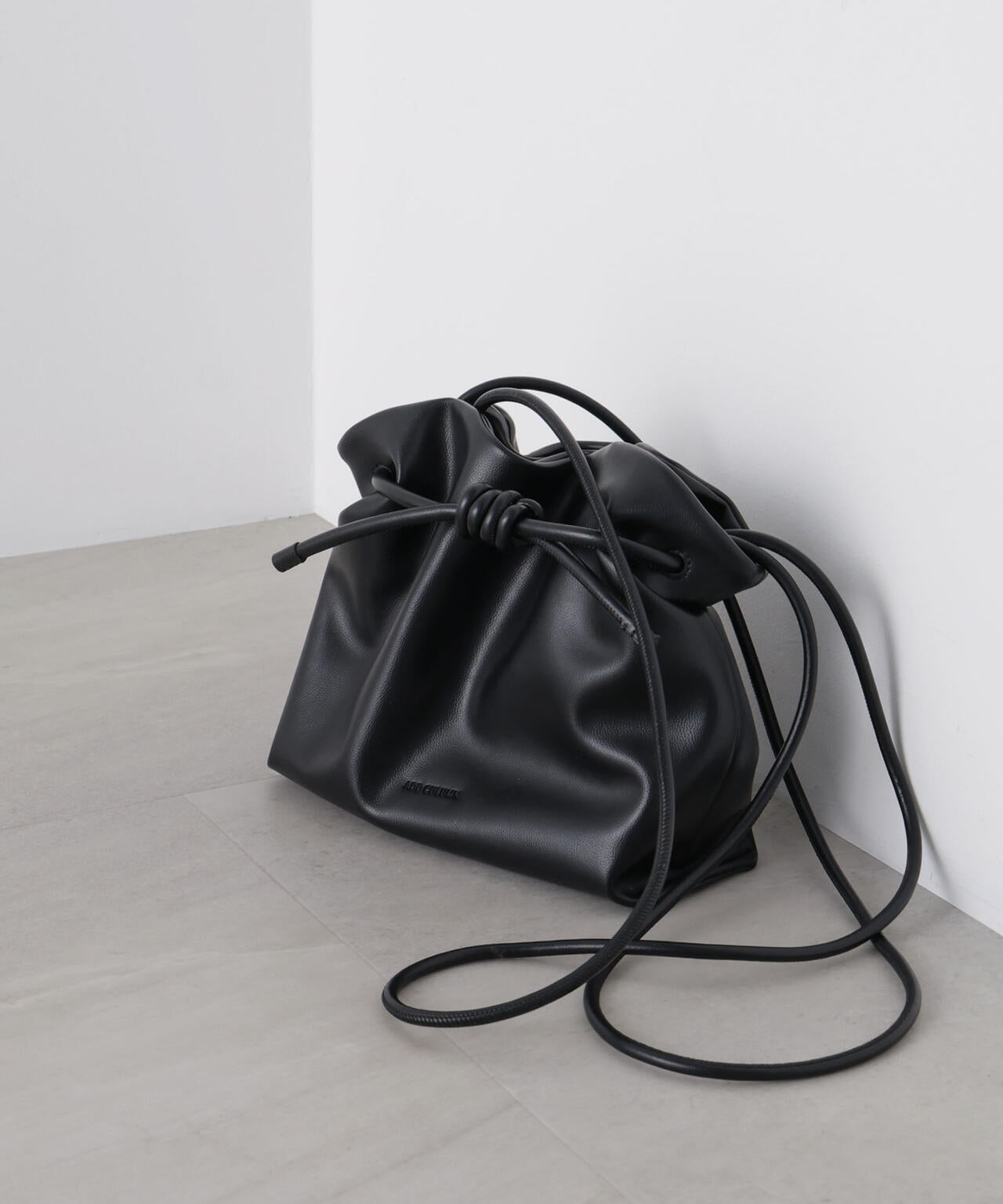 紐をぎゅっと絞ったり、広げたりしてバッグの形にニュアンスが生まれるユニークなデザイン