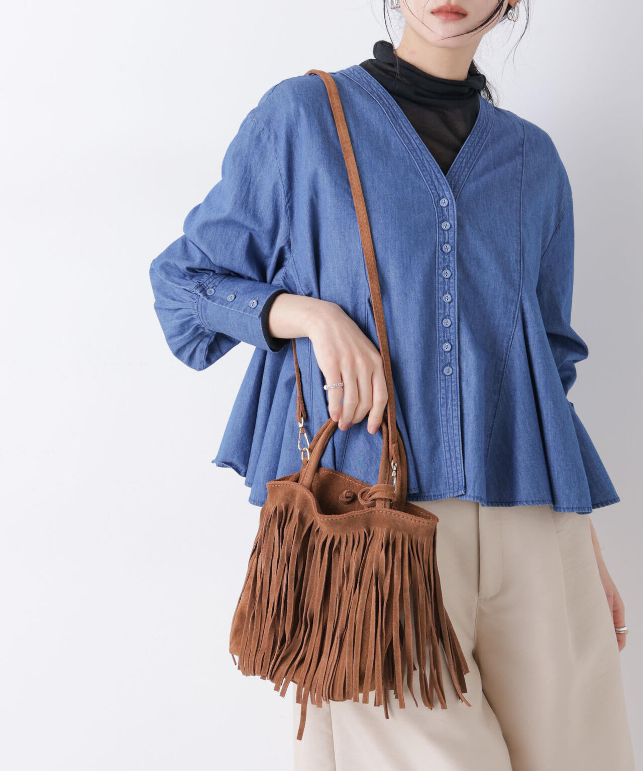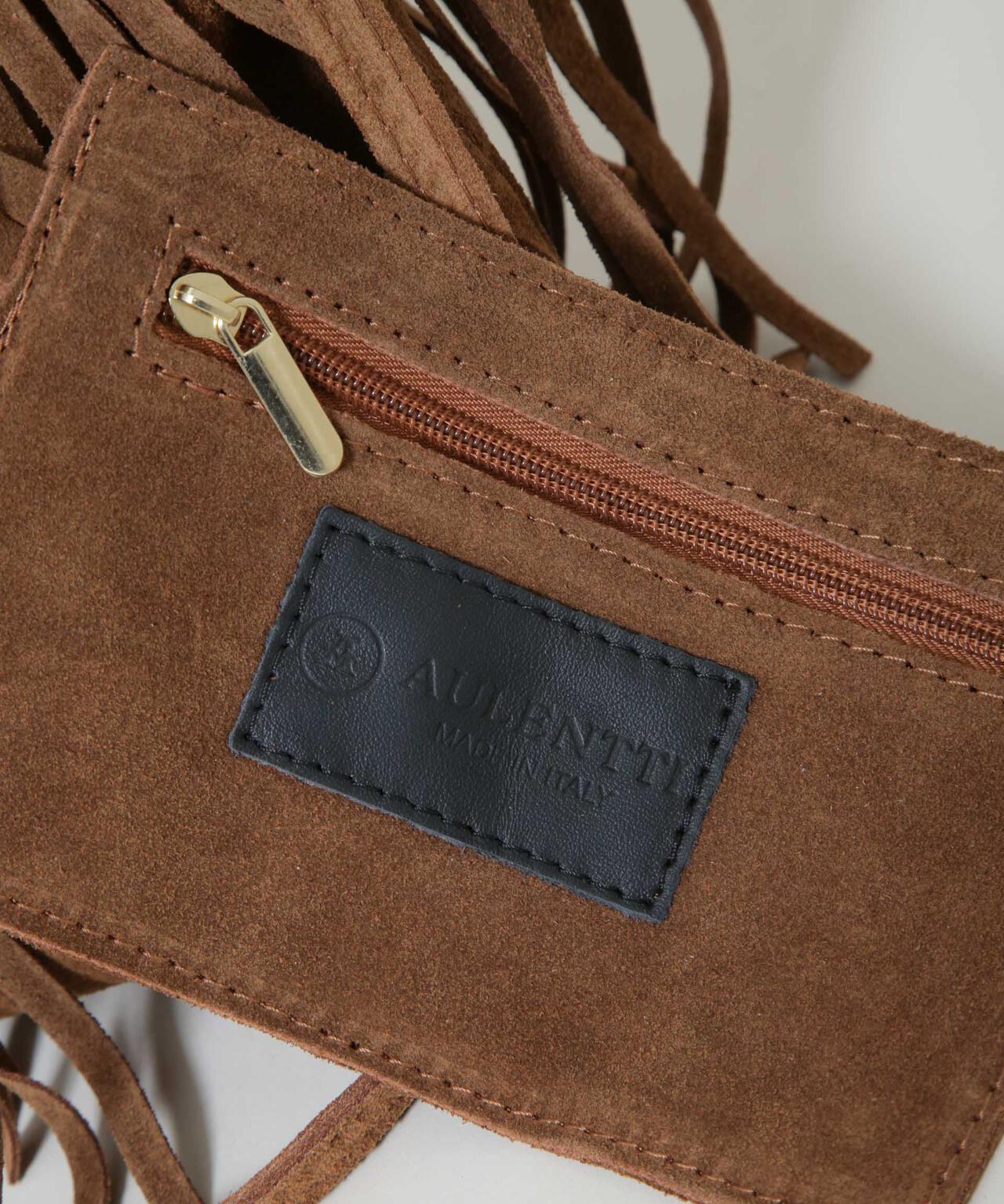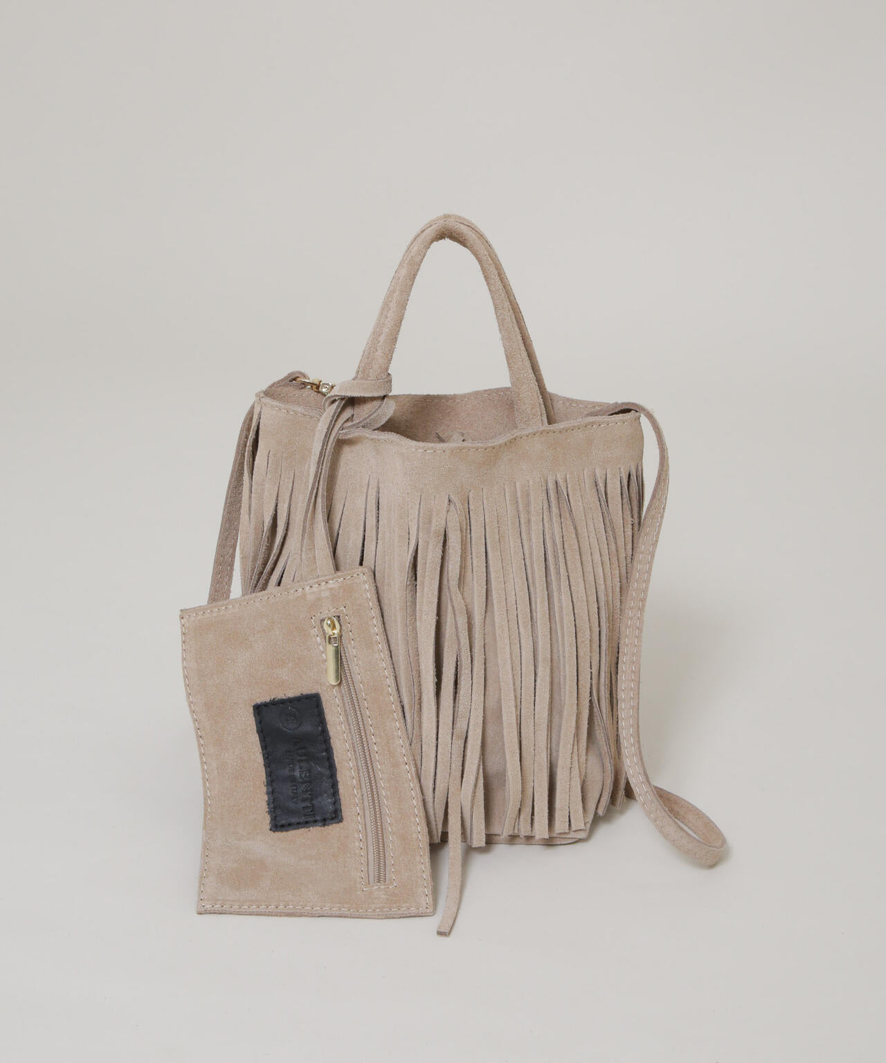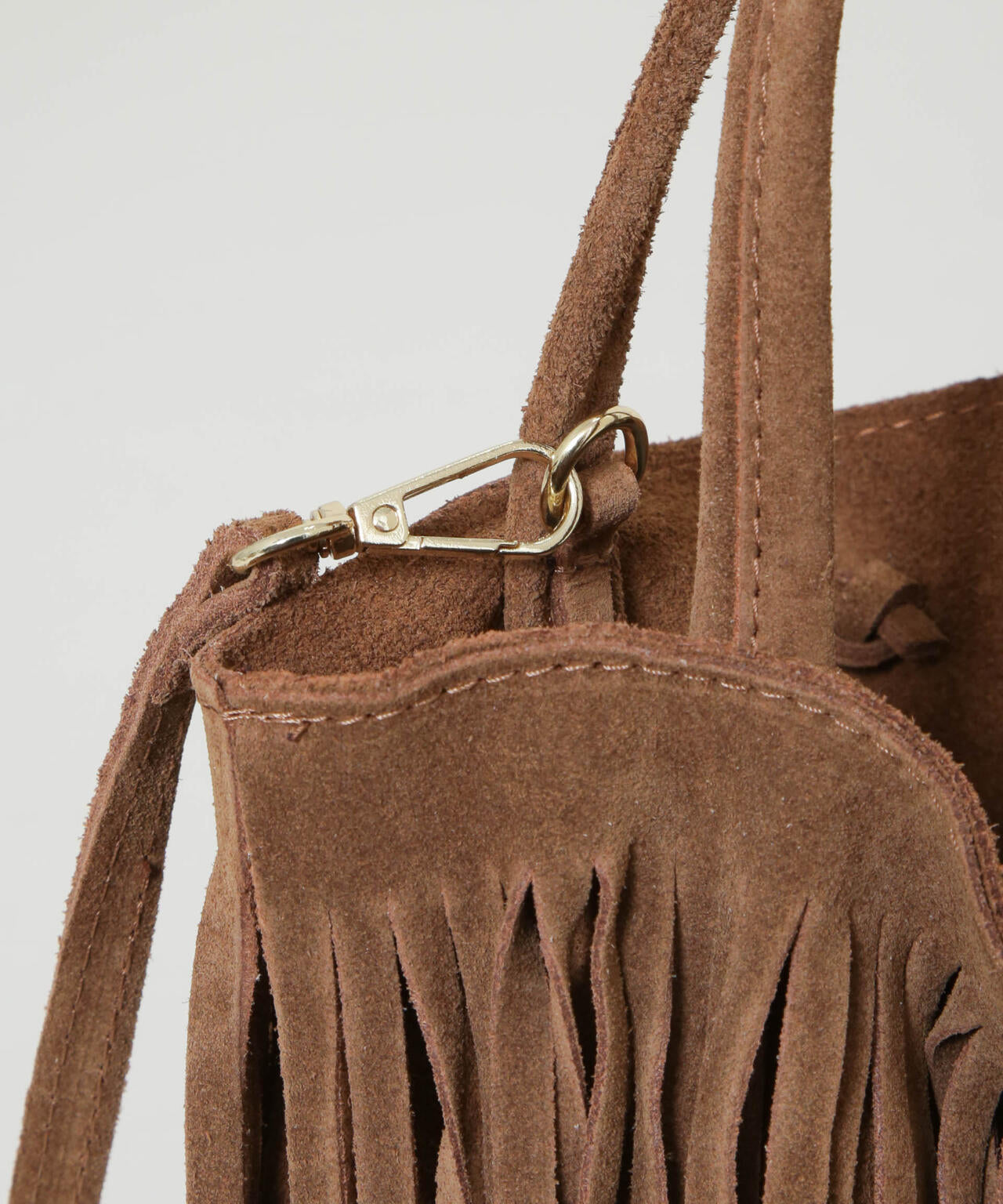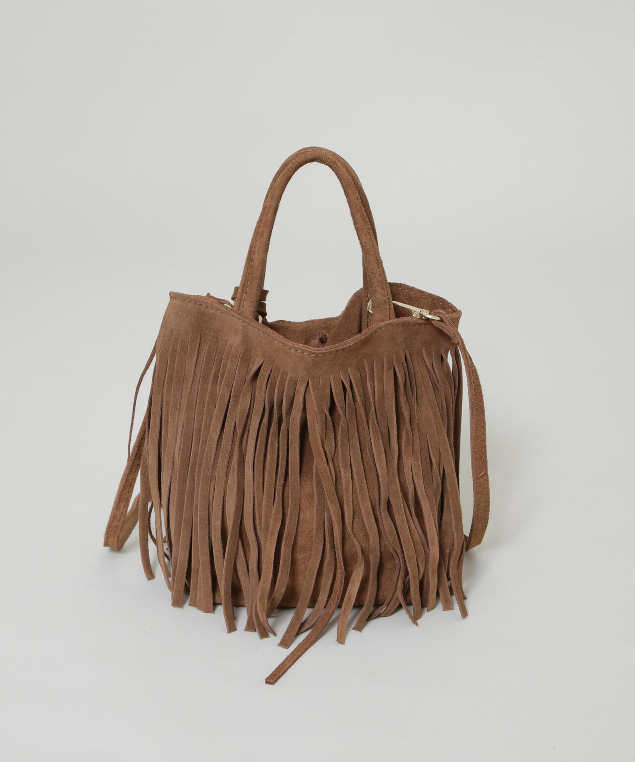 スエードのフリンジディテールが目を引く2WAYショルダーバッグ