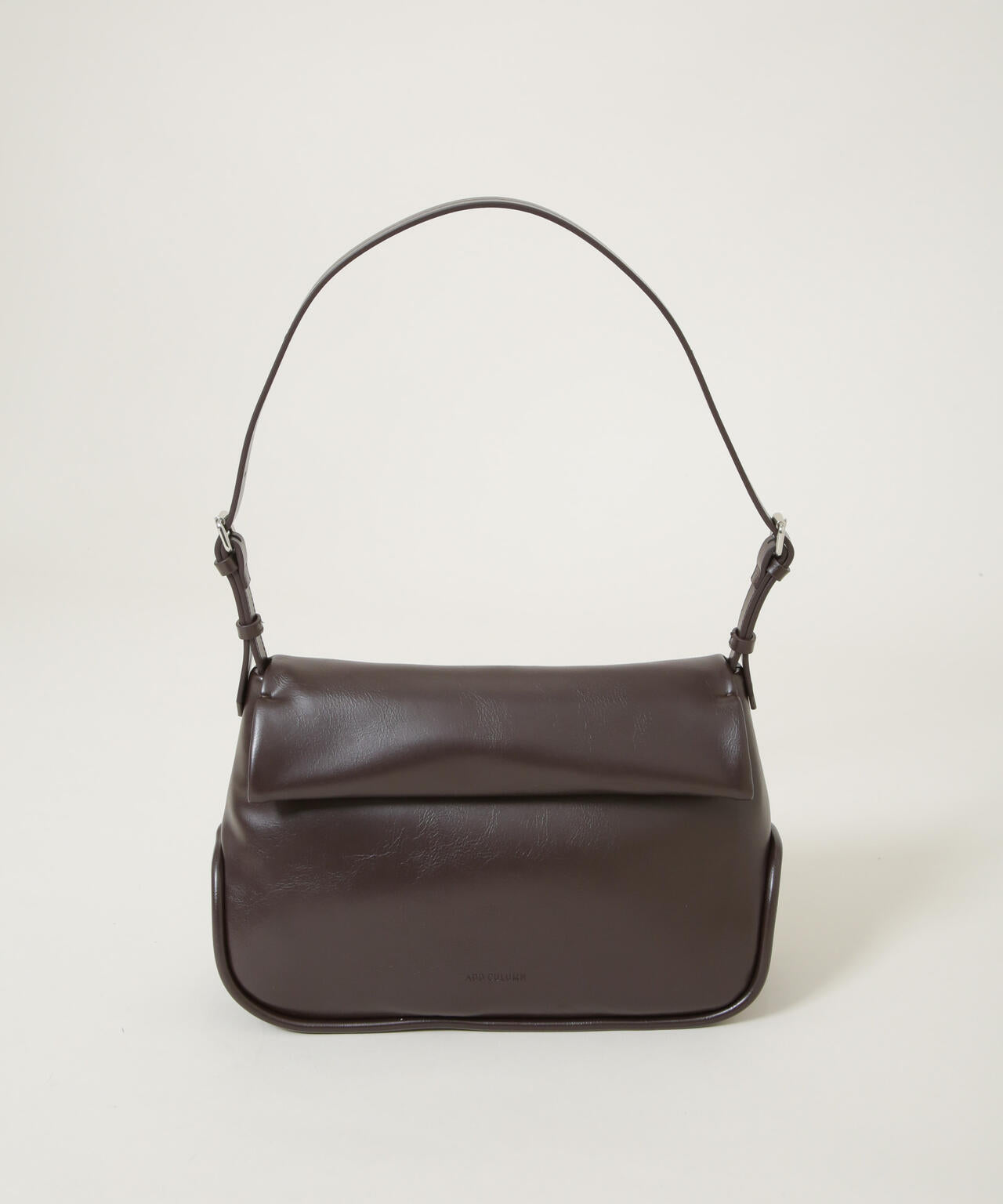 フラップをロールしたデザインと太めのパイピングが特徴