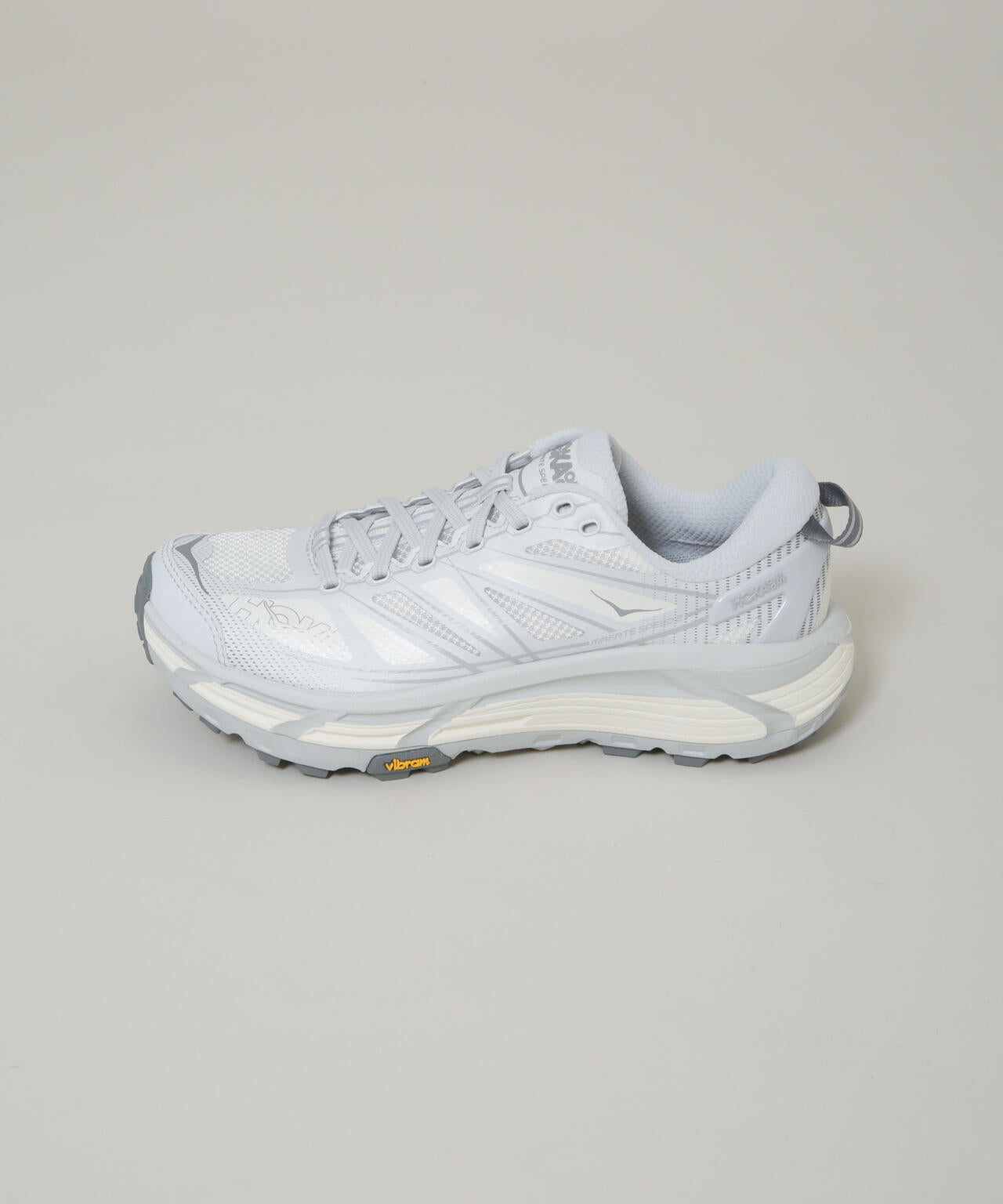 HOKAのブランドカラーがアクセントのグリップ性と反発性が優れたフラッグシップモデル。HOKAのルーツである山をテーマに、トレイルランニングシューズ「MAFATE SPEED 2 (マファテスピード2)」を現代のライフスタイルにフィットするデザインにアップデート。ルーツであるトレイルで必要なパフォーマンスを発揮するテクノロジーはそのままに、HOKAらしいボリュームシルエットに鮮やかなカラーを配した、コーディネートのアクセントになるデザインです。