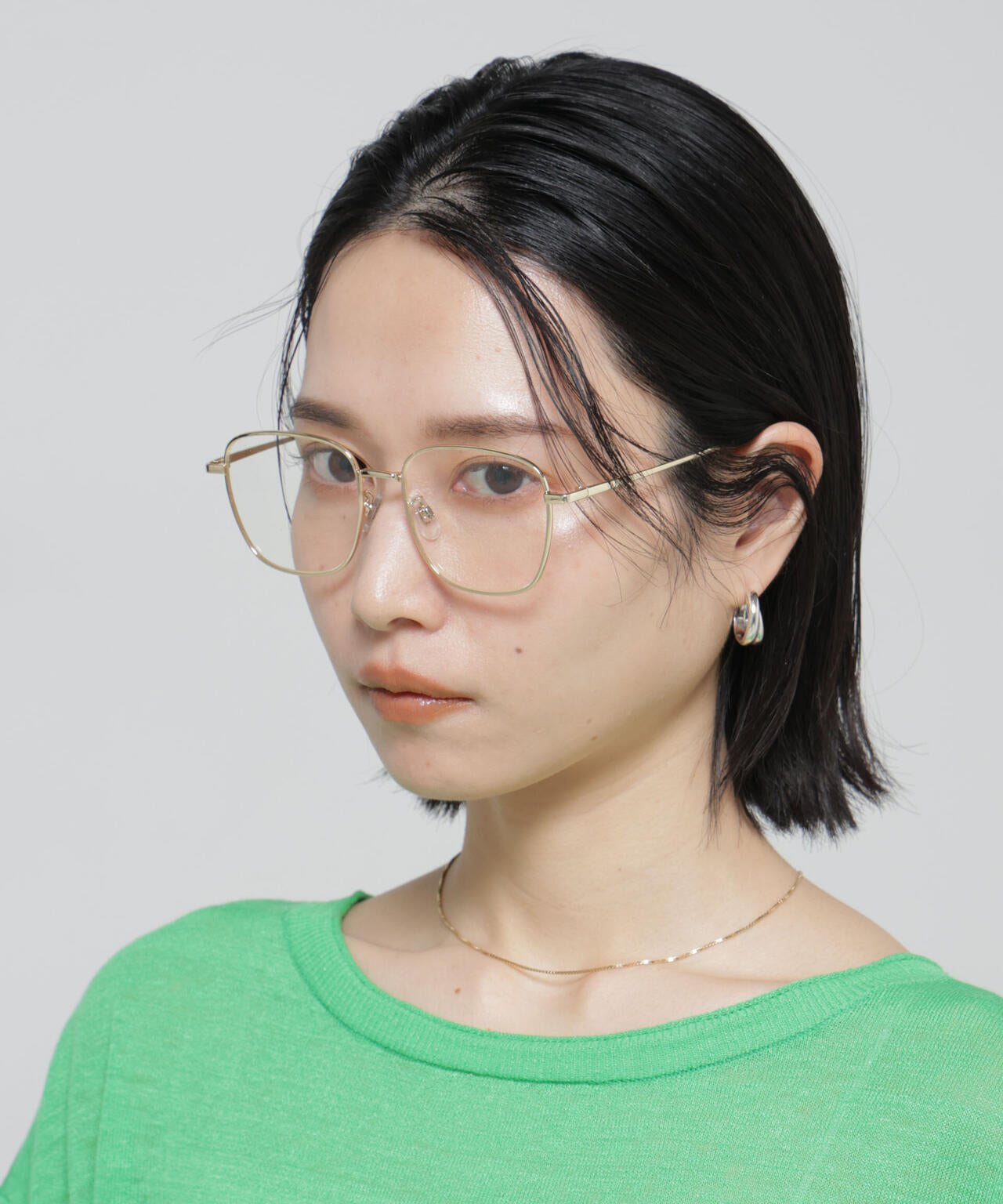 1970年後半のヴィンテージアイウェアに着想をえた縦幅のあるスクエアシェイプ。横幅だけでなく縦幅もあるスクエアは、メタルフレームの特性である細さとその枠の大きさとの対比がクラシックで、雰囲気のある本モデルの特徴。重量感のあるプラスチックフレームのコレクションとは一味違った知性的な面持ちは新たな表情を演出してくれます。