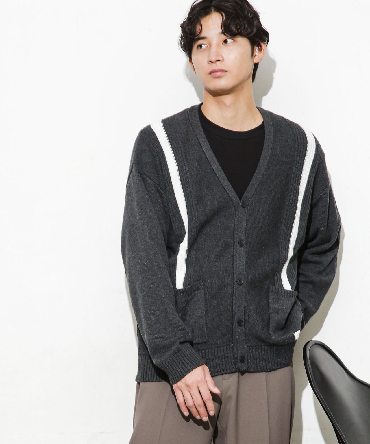 ・キューバシャツなどに使われるプリーツのデザインを施したカーディガン