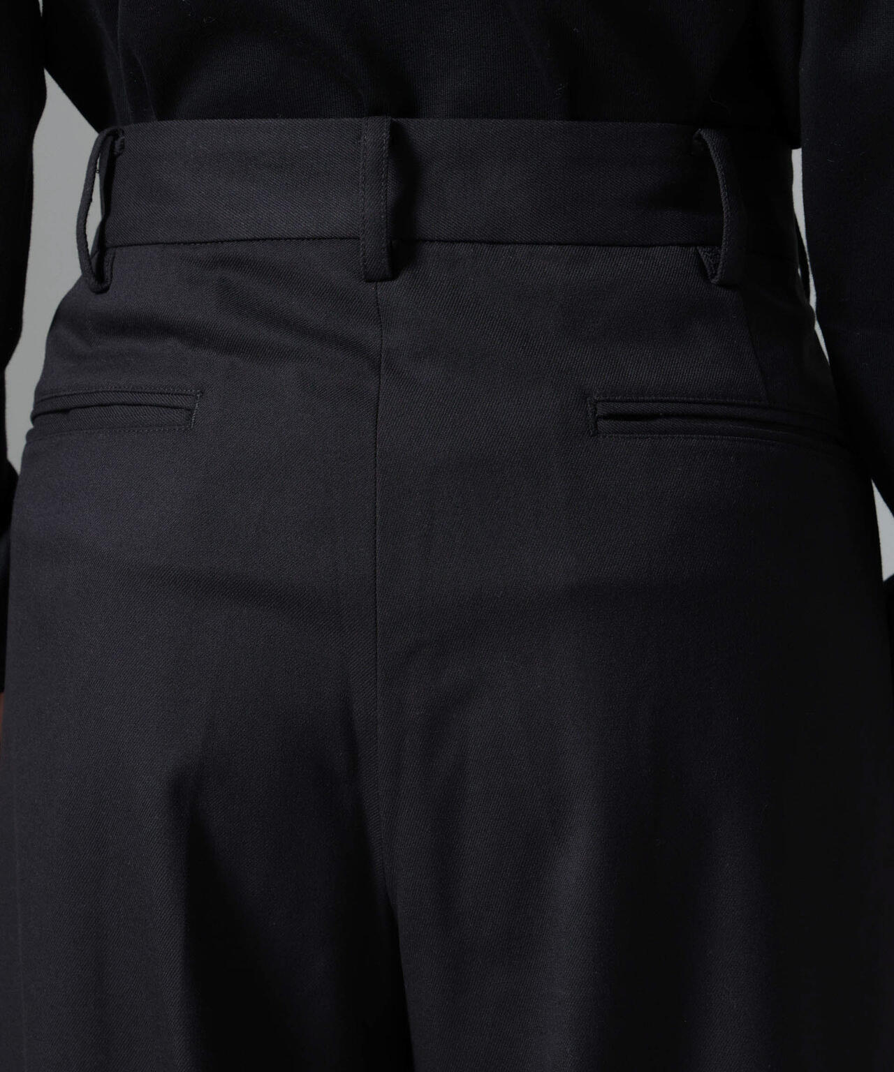 ヒップまわりに余裕を持たせ、裾に向け程よくテーパードしたワイドパンツ。伸縮性のあるストレッチ素材を採用した1本ながら、ドレスシーンやフォーマルシーンにも対応した万能なアイテム。