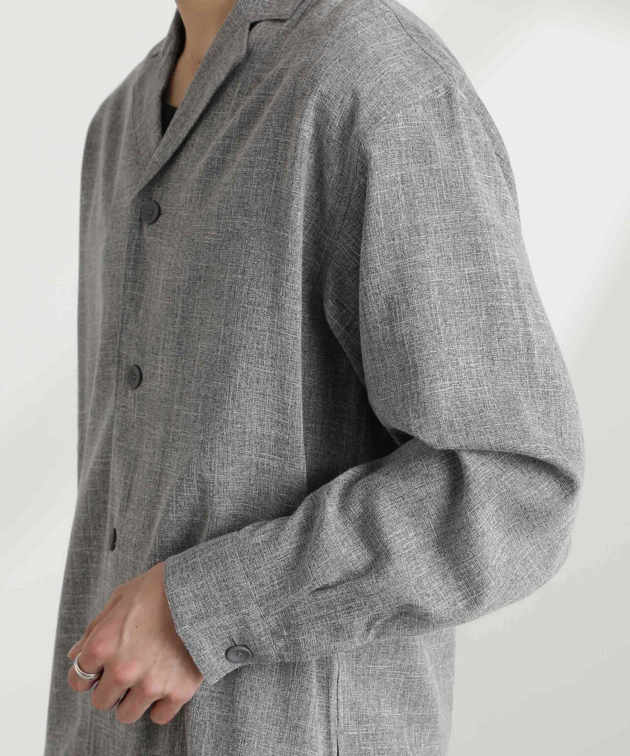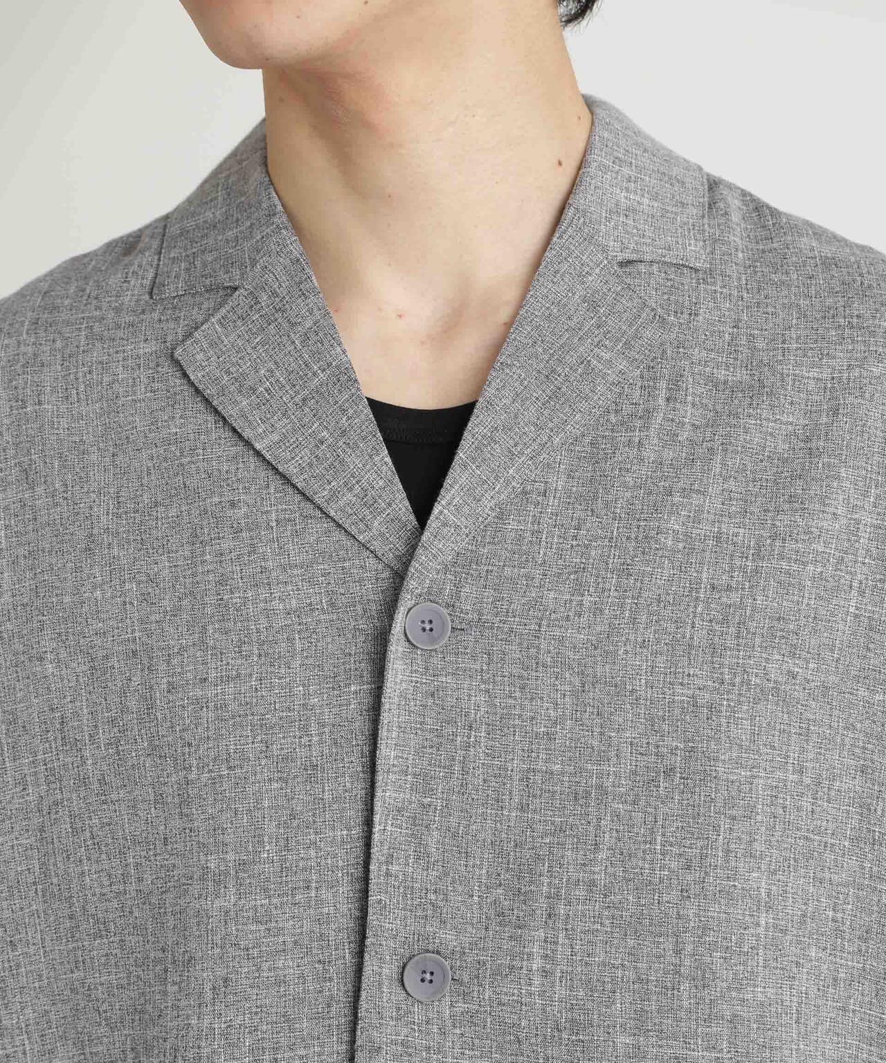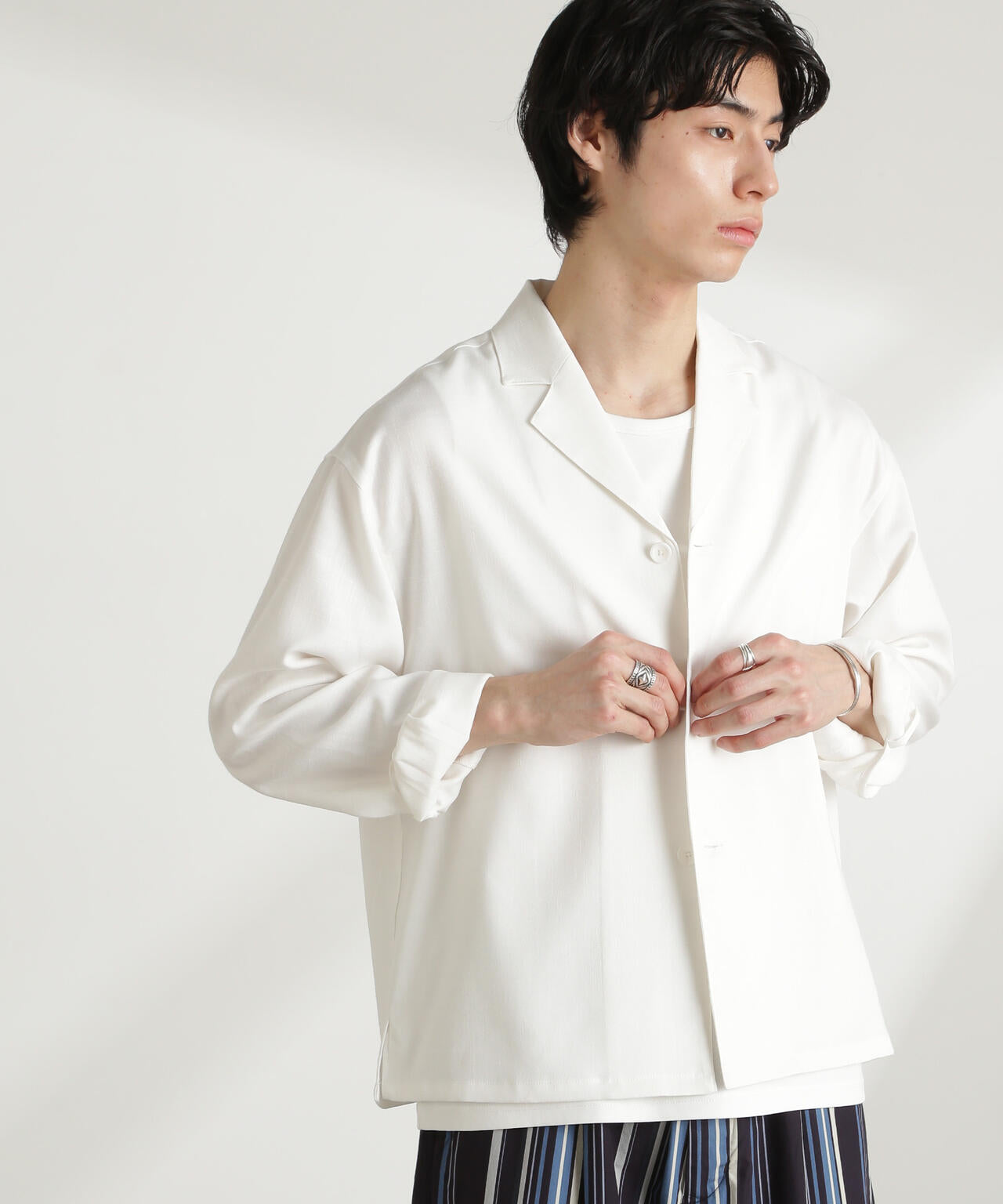 やや短めのコンパクトな着丈がポイントの開襟シャツ。前を開けてさらりと羽織っても、ボタンを閉めてトップスとしても着用いただけるワンランク上のデザインシャツです。