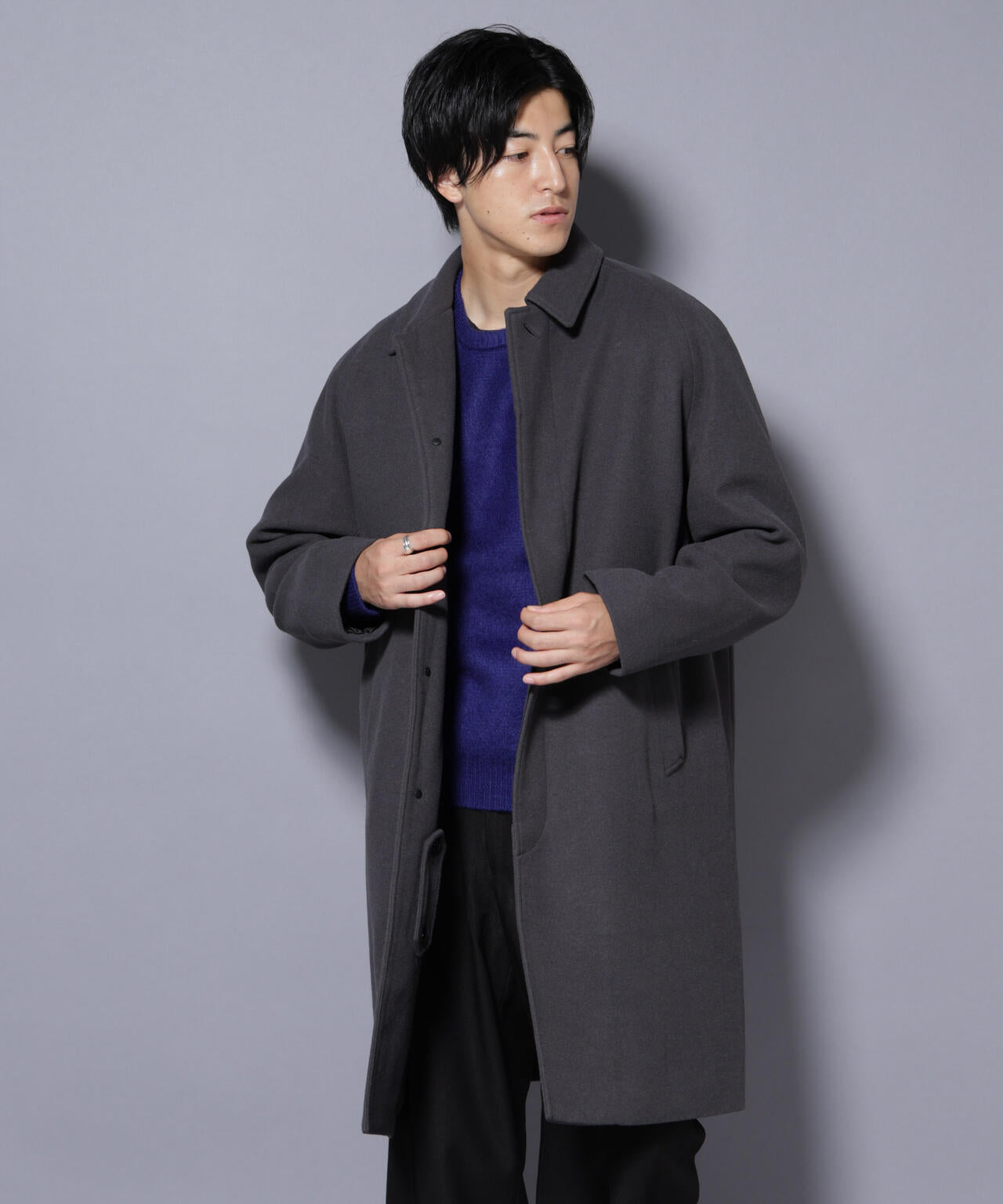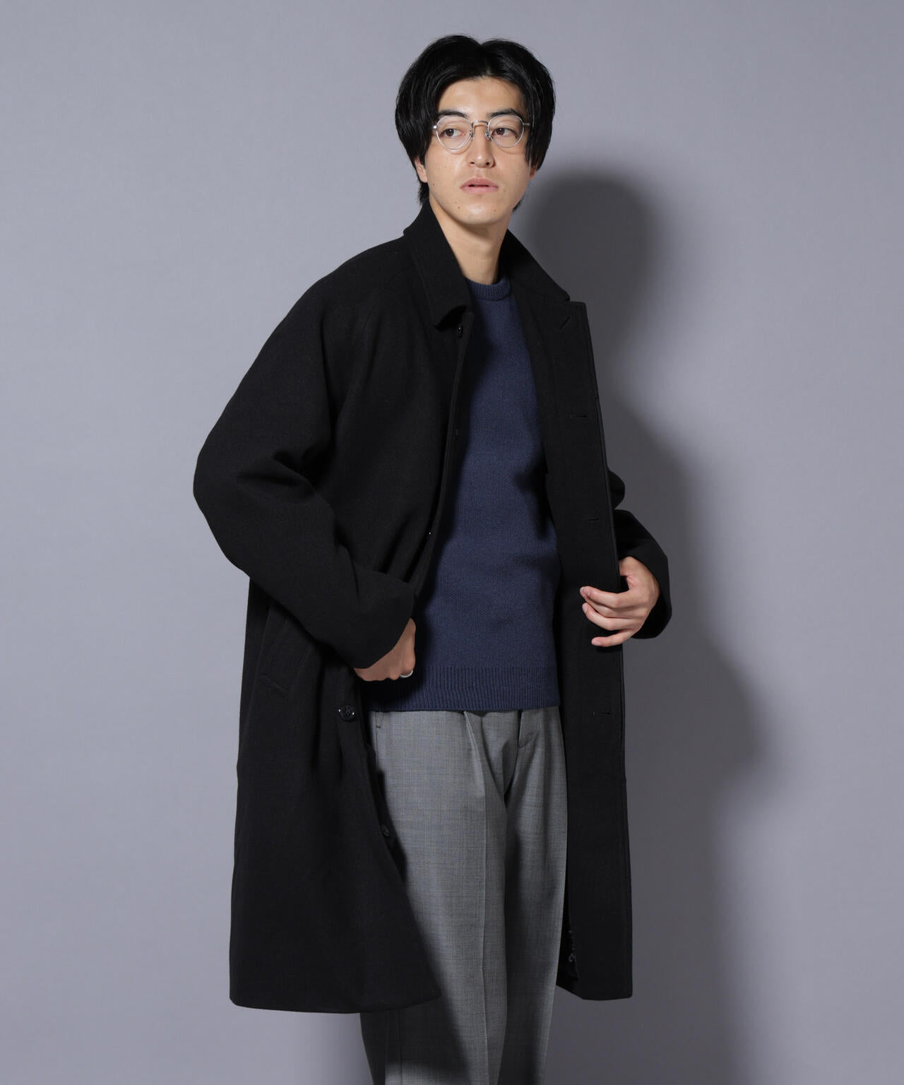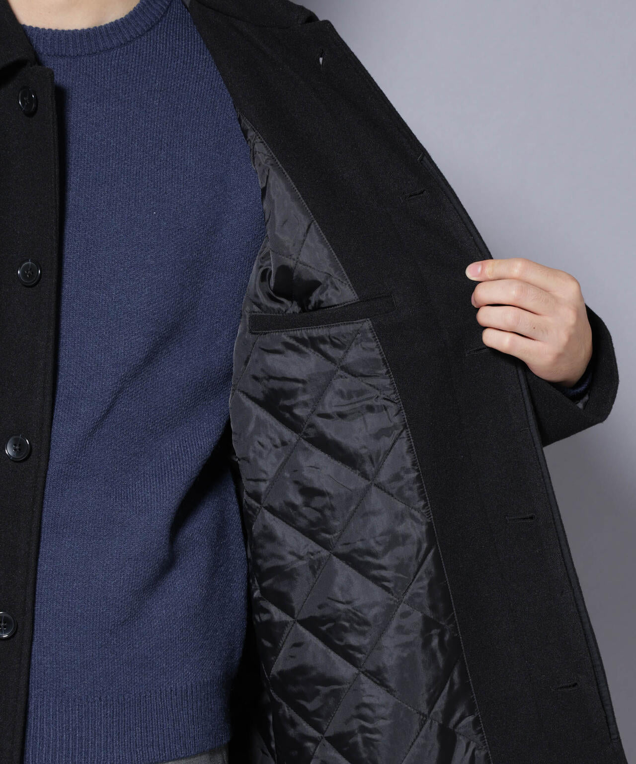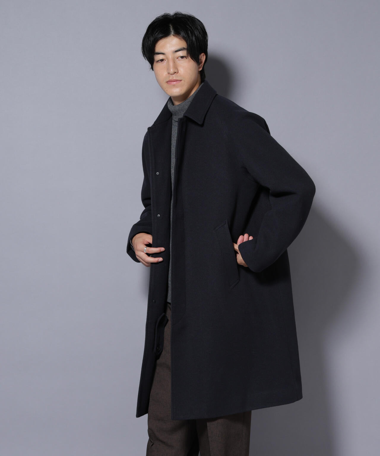 ウールのような心地よいタッチ感に伸縮性のあるテックメルトン素材を使用したステンカラーコート。今シーズンはサーモライト中綿を使用し保温性を確保。着心地やポケット角度などパターンも一新し、着心地や機能面を向上させた一枚です。