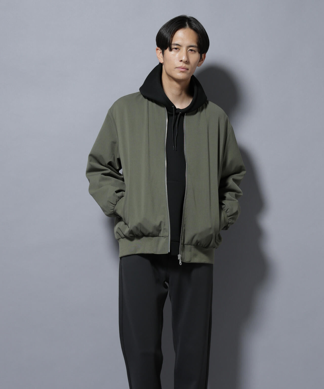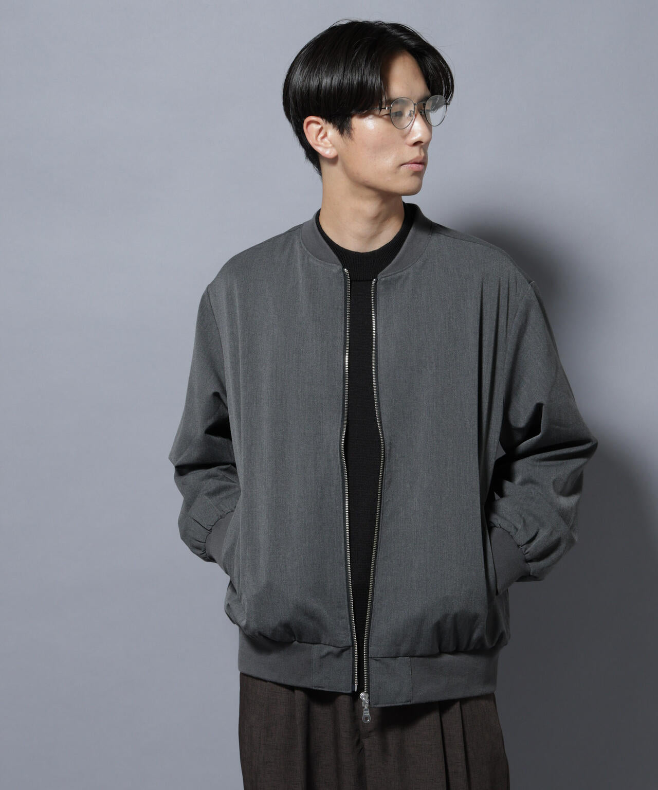 ナノ・ユニバース定番のTR MA-1。ストレッチの効いたTR生地を使用した羽織としておすすめの1着。パンツのシルエットを問わず、コーディネートに取り入れやすい季節の変わり目に重宝するアイテムです。