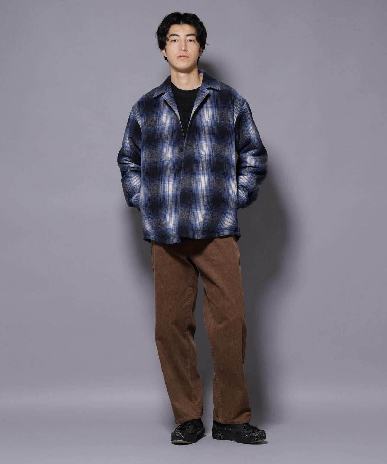 ウールのような心地よいタッチ感に伸縮性のあるテックメルトン素材を使用したシャツブルゾン。アメリカンヴィンテージのチェックをオマージュしたオリジナルチェック柄は、デニムからスラックスまで幅広いスタイリングにマッチする一着です。