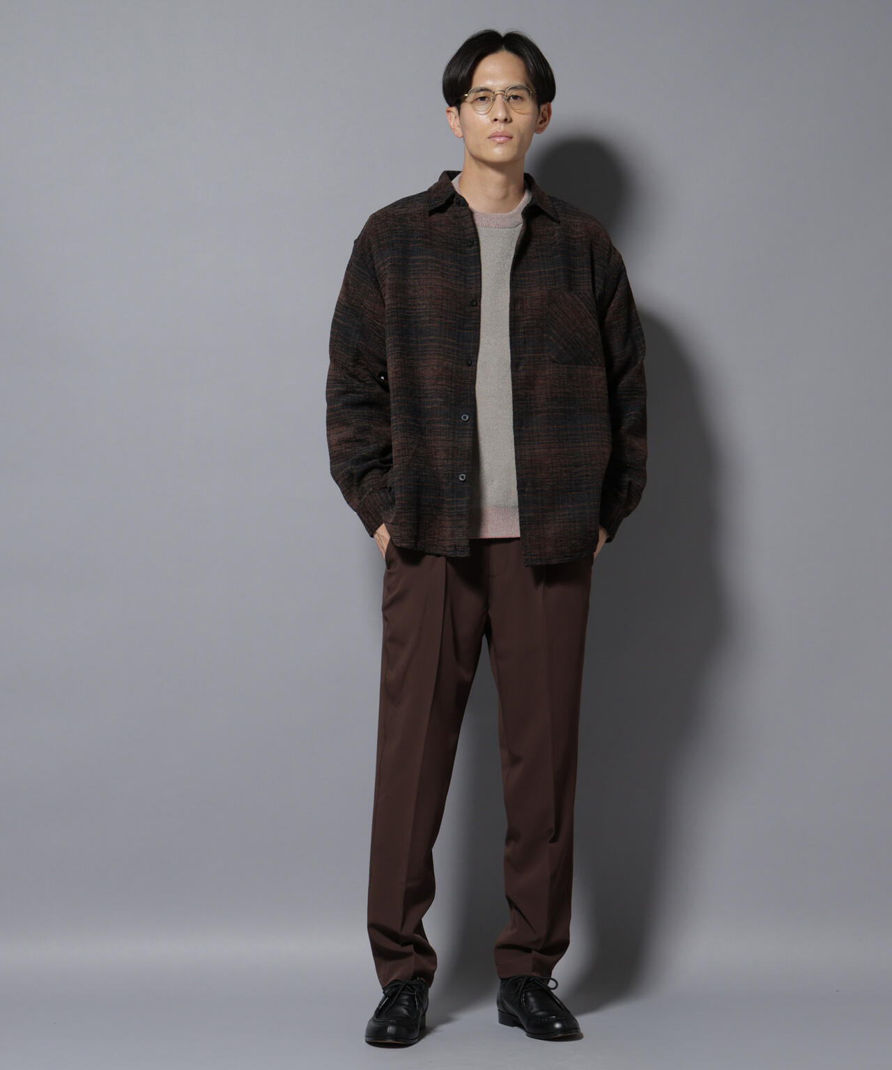 オリジナルで組まれたダークトーンのチェック柄が魅力の長袖シャツ。起毛しているモールの糸を使用している為、微光沢と起毛感のある秋冬らしいアイテムになっています。