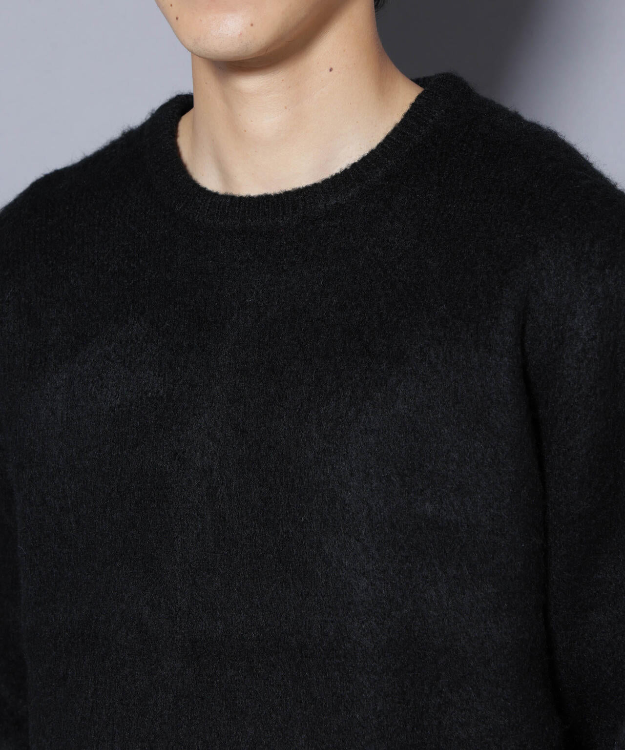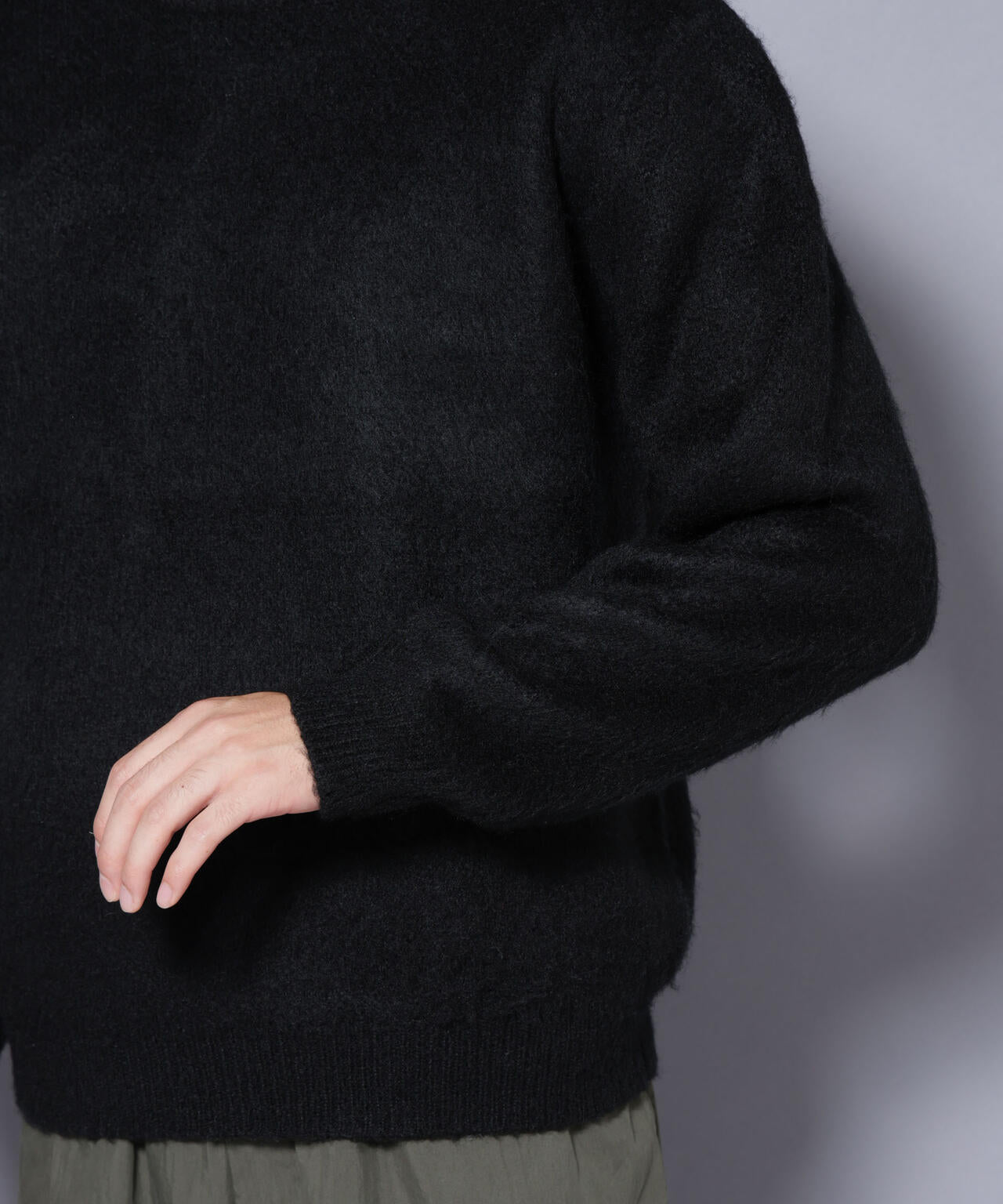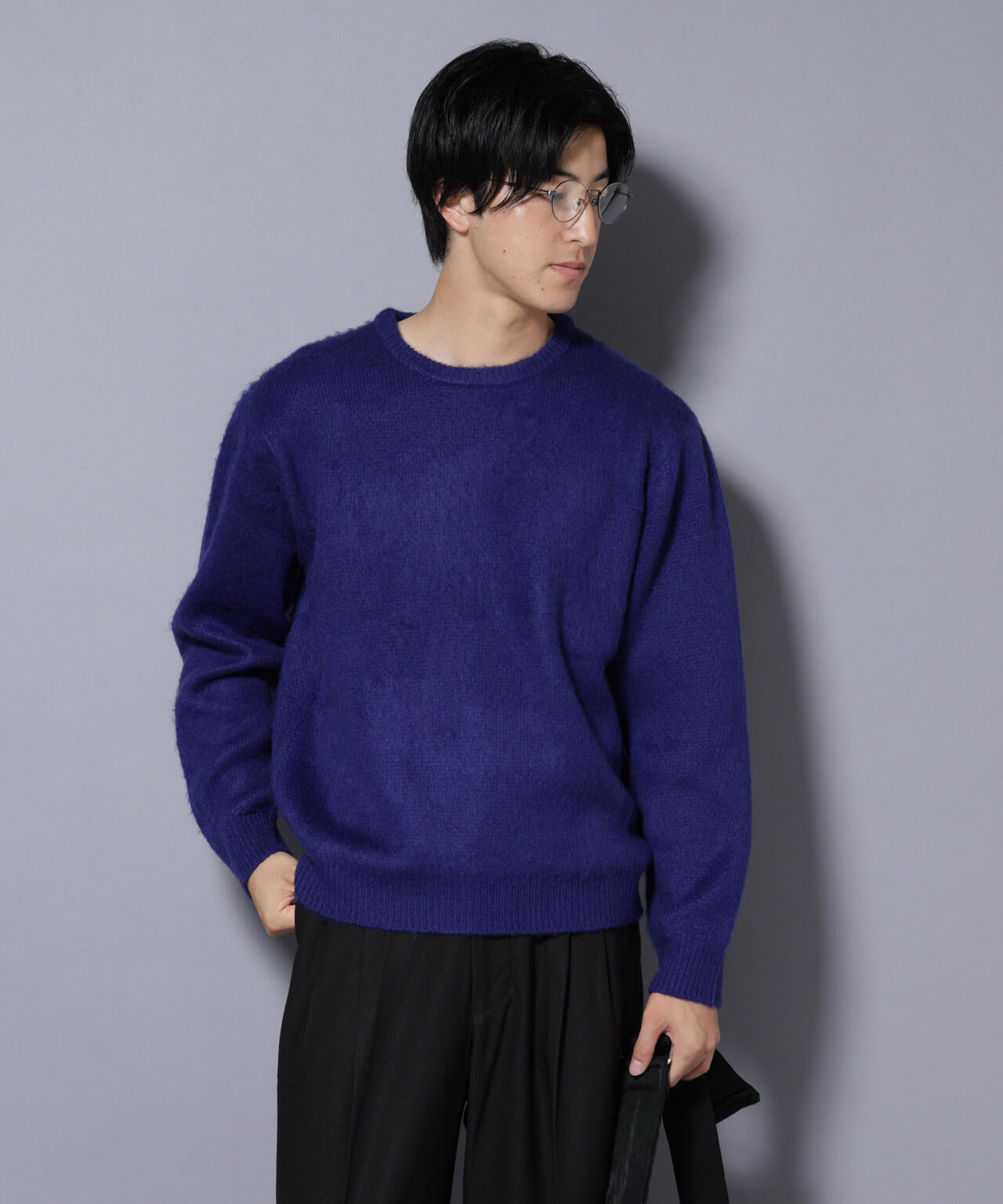 モヘアのような毛足の長いふんわりとしたニット。軽くてウォーム感のある1枚は、インナー使いから1枚着としても重宝。肩にかけてスタイリングのプラスにするのもお勧めです。