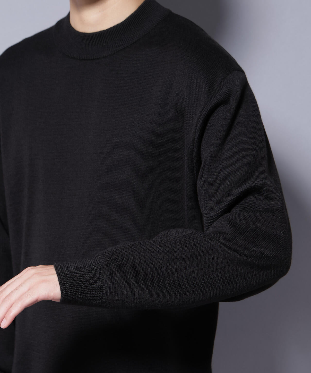上品な印象を与えるモックネック