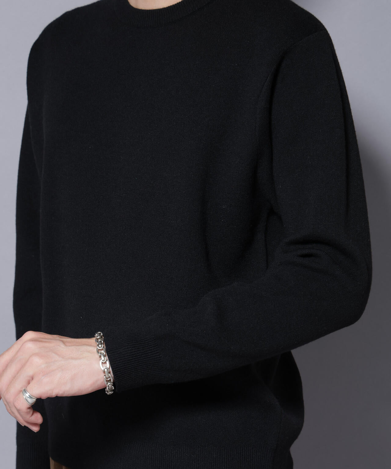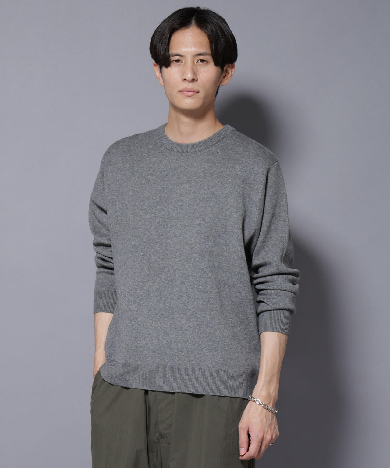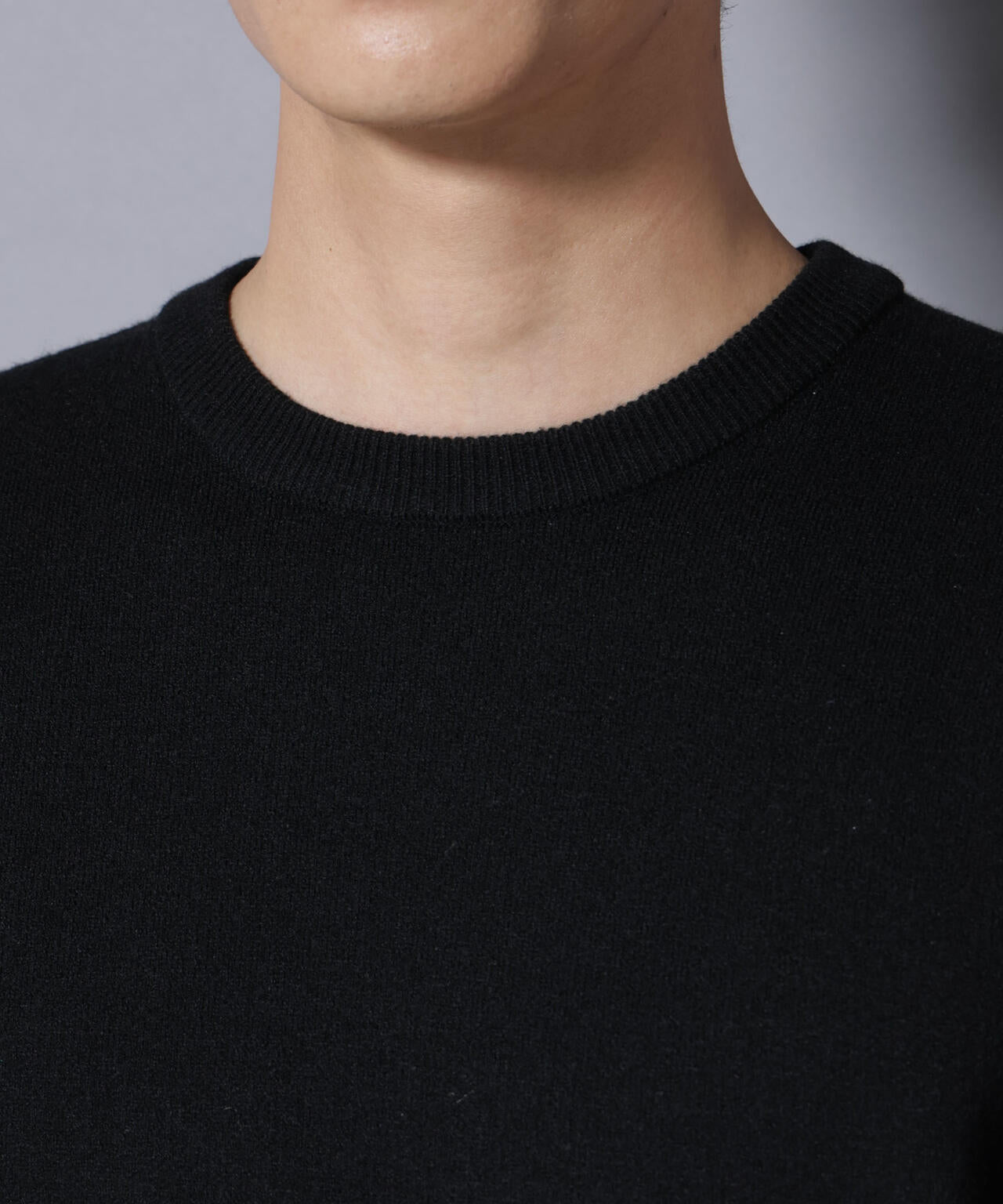 ベーシックながらも少しラグジュアリーなシルク混のクルーネックニット。スーツのインナー使いはもちろん、カジュアルな着こなしにも対応できる万能な一枚。マシンウォッシャブル対応なのも嬉しいポイントです。