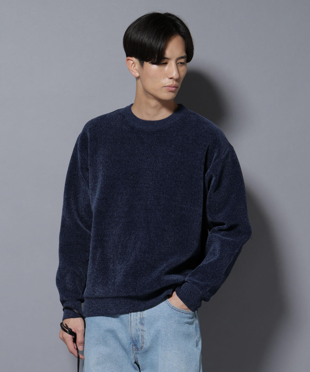 ウォーム感のあるモールヤーンを使用したクルーネックニット