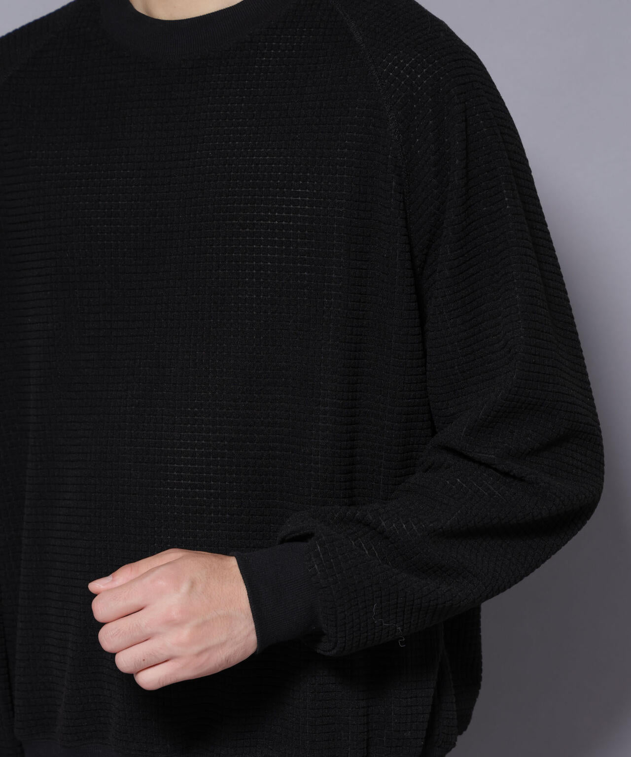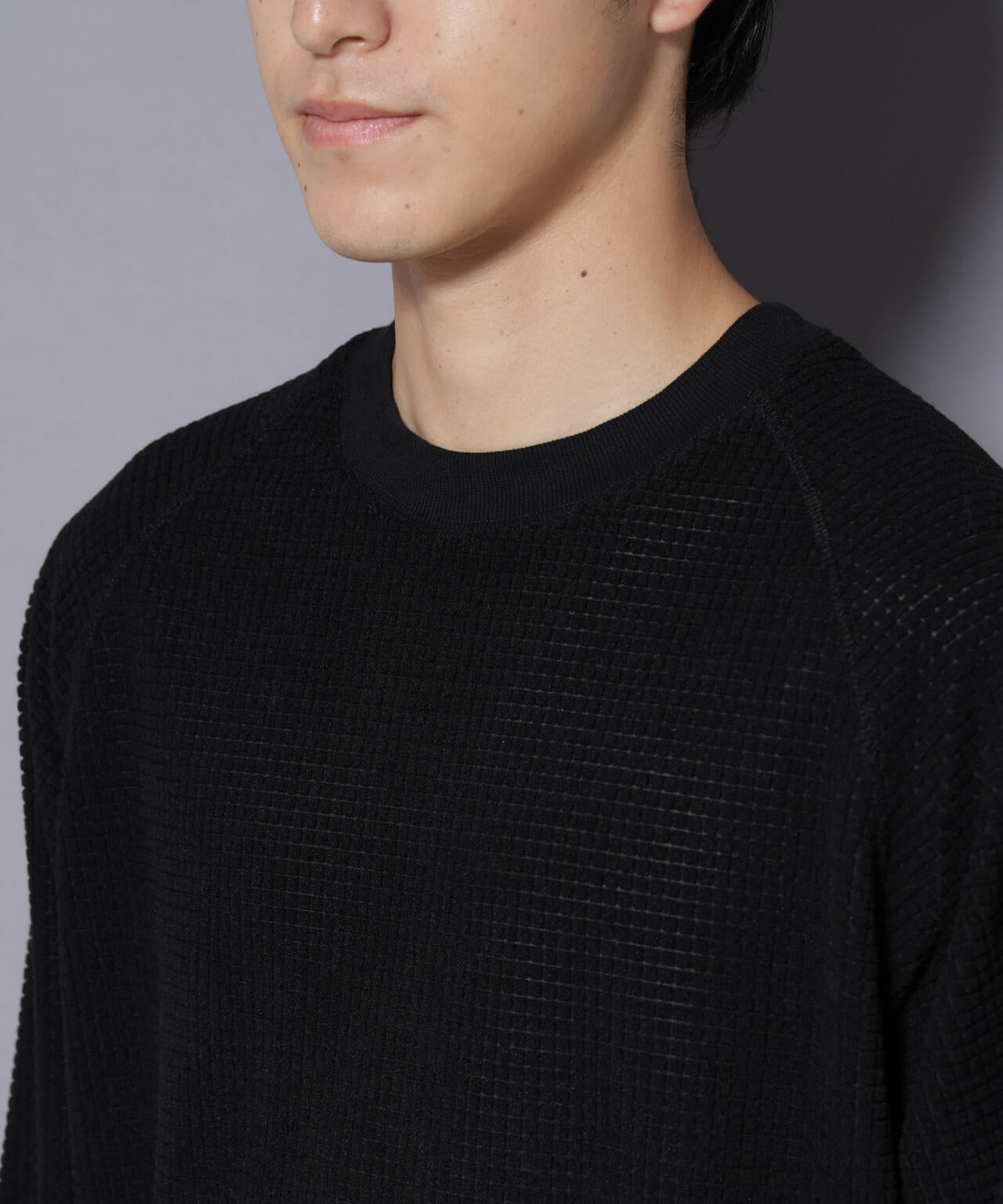 軽量かつ保温性に優れたフリース素材に、ワッフル調の凹凸感を加えたロングスリーブカットソー。シンプルなデザインながら、素材の表情があり特徴的な印象に仕上げたアイテムです。