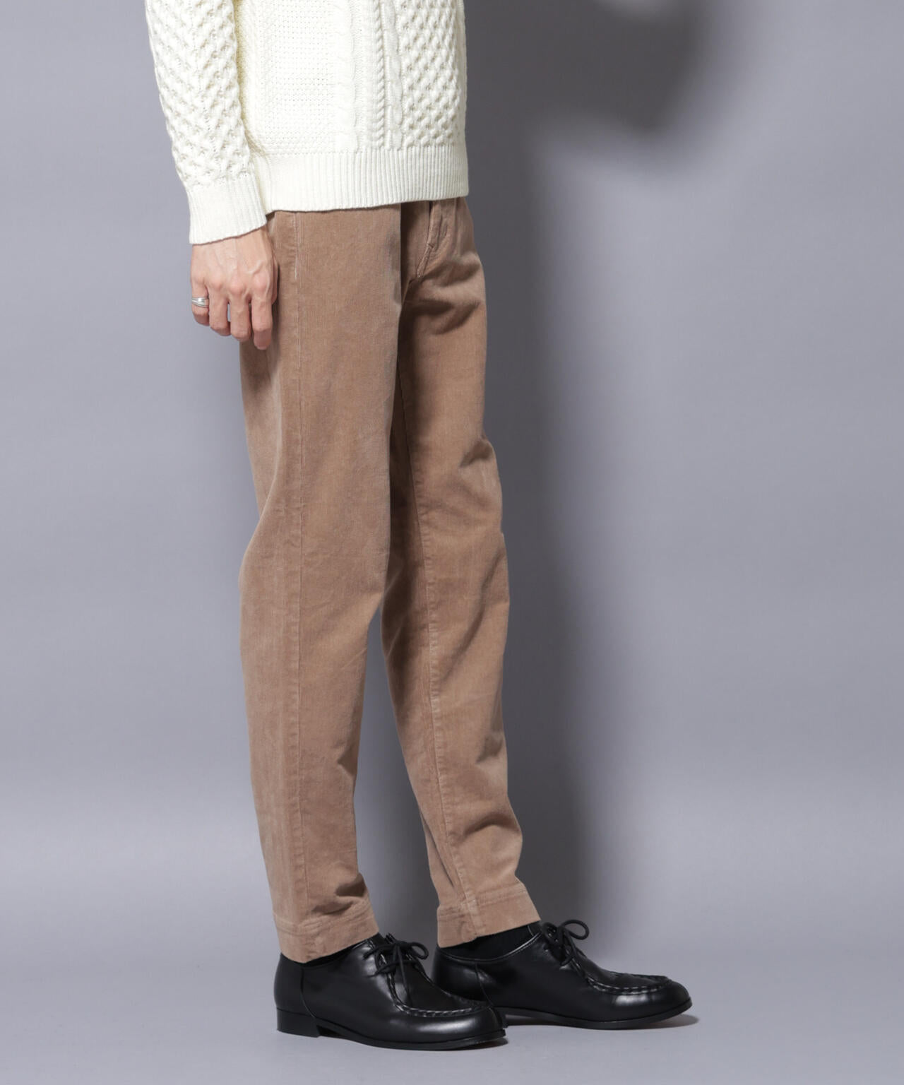 細目のシルエットにテーパードが効いたコーデュロイパンツ。コートやダウン、ジャケットまでアウターを選ばずフィットする、今シーズンおすすめの1本です。