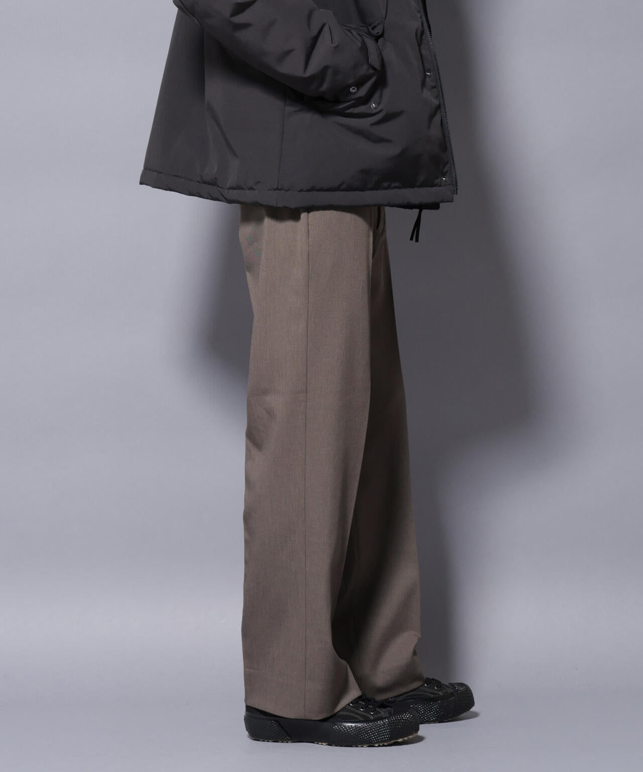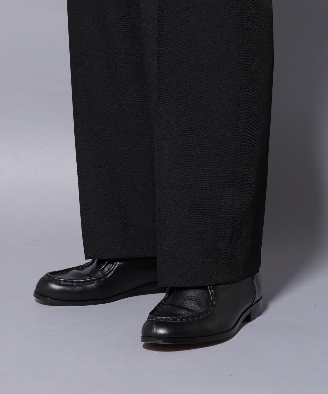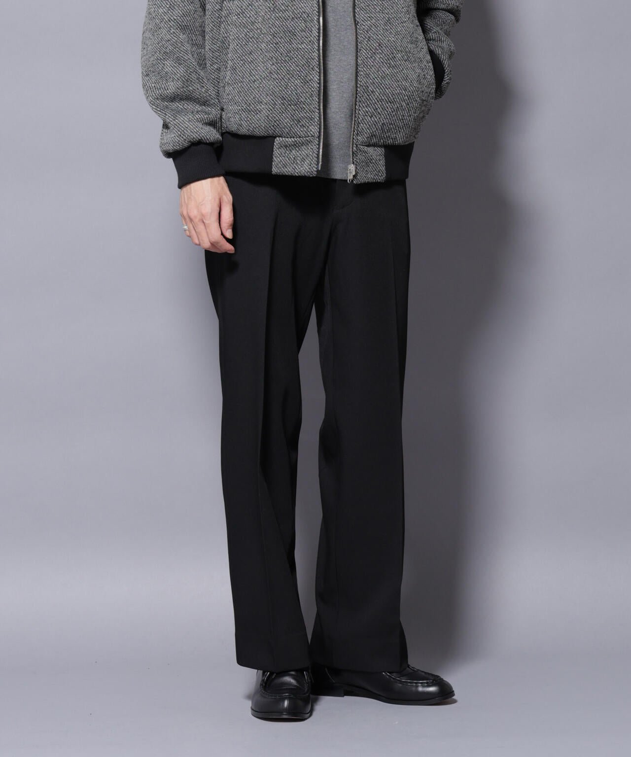 スッキリとした美脚に見えるストレートシルエットのトラウザーズ。裾部分にゆとりを持たせ、ワンクッション置く着こなしが今シーズンおすすめのスタイリングです。
