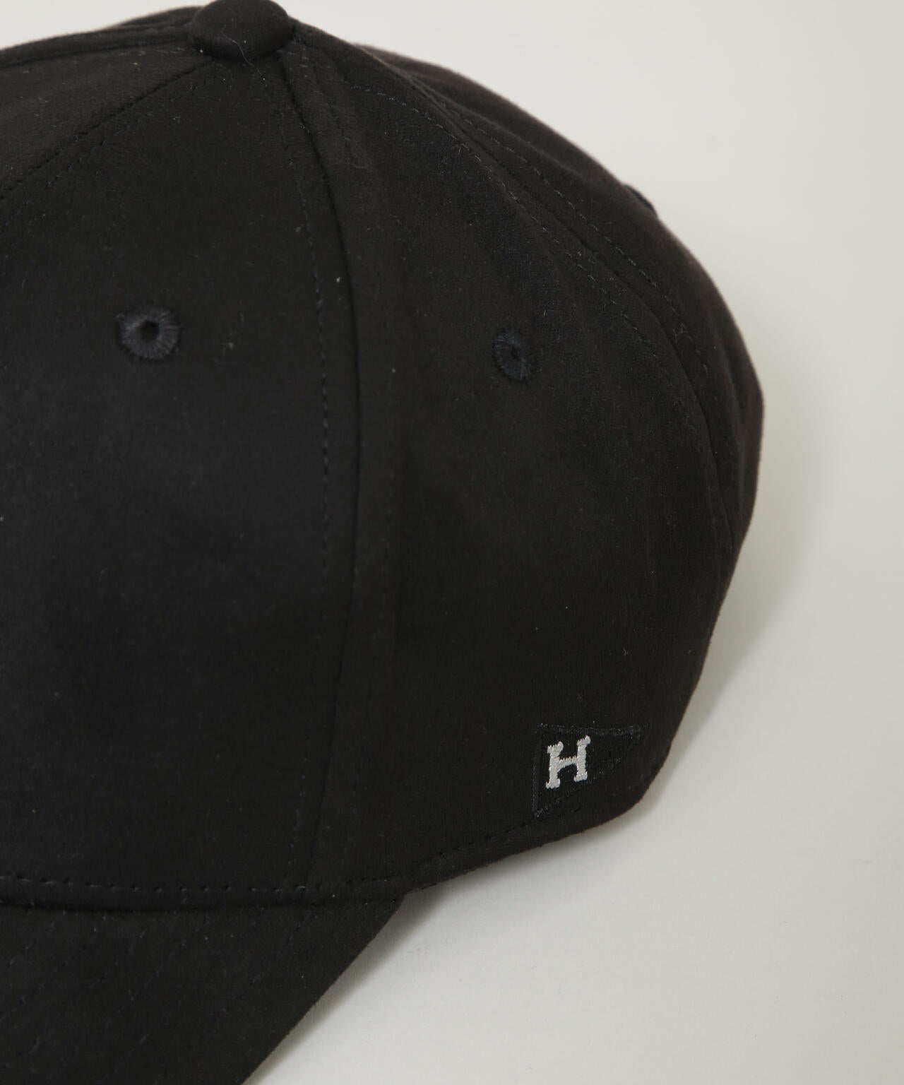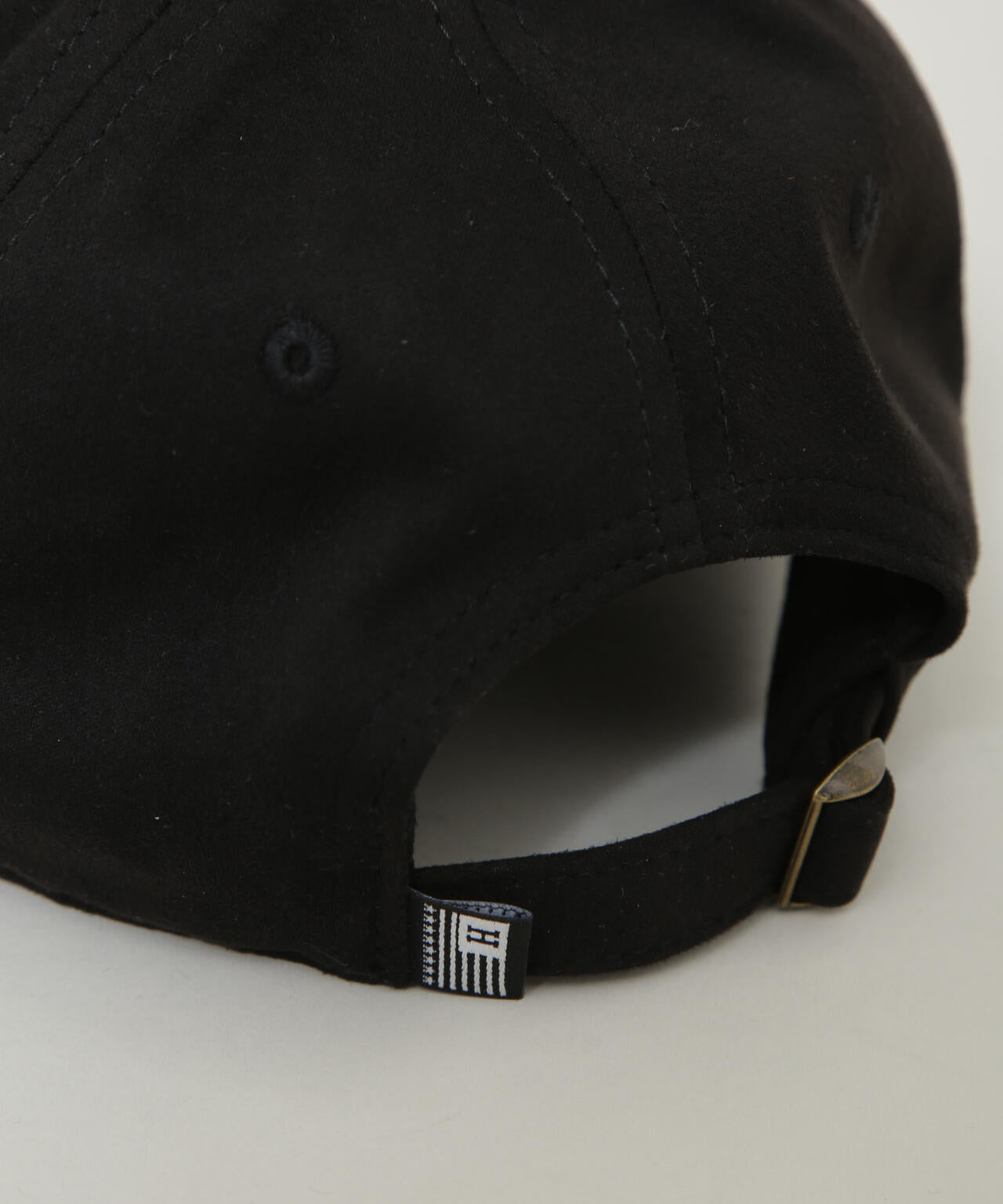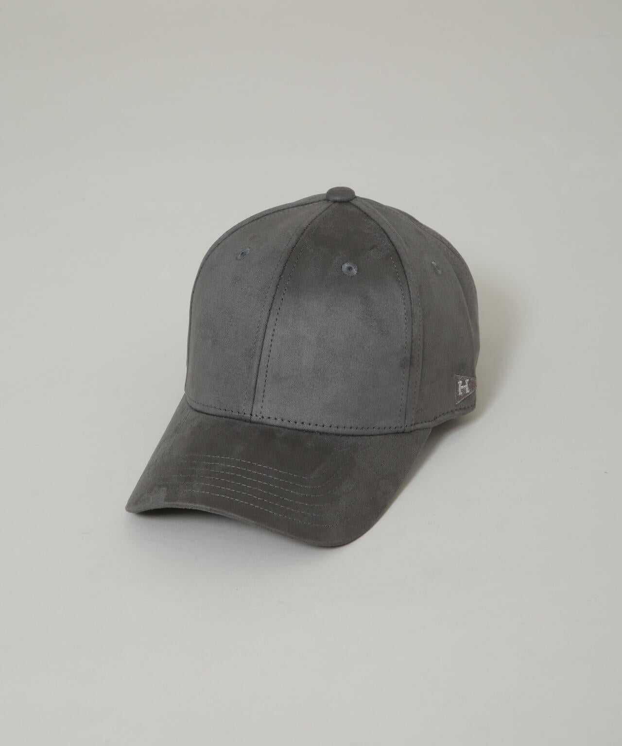 ペナント刺繍を施したフェイクスエードキャップ。キャップボディと同系色のペナントがアクセントを加えるアイテム。