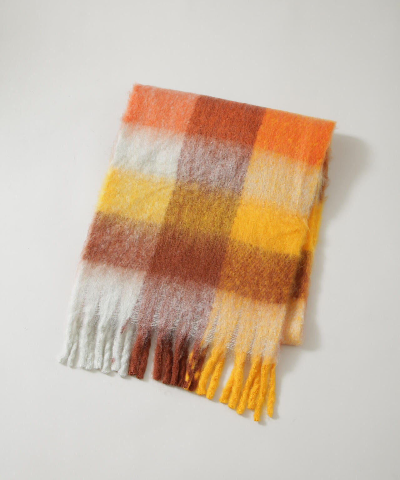 存在感のあるチェック柄でシーズンコーデにアクセントを添えるボリュームフリンジマフラー。シンプルな着こなしに合わせるだけでスタイリングを格上げしてくれる、主役級アイテムです。