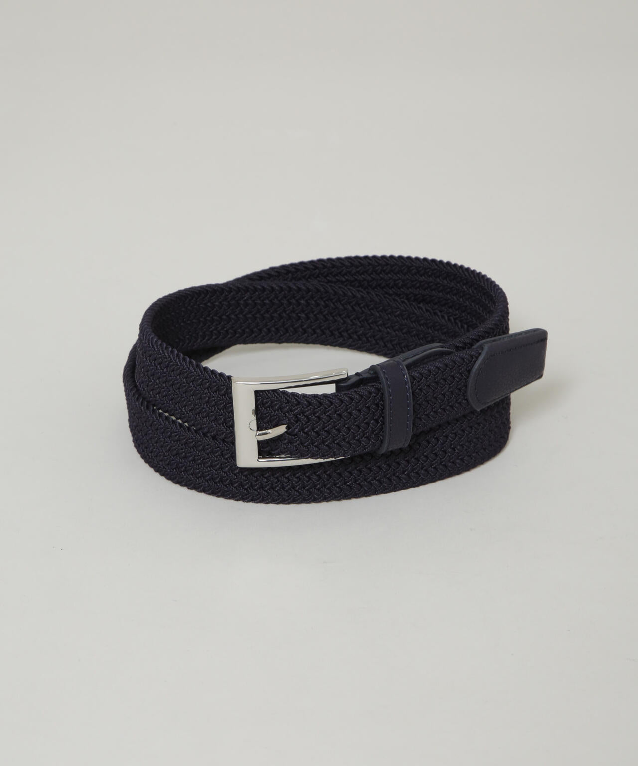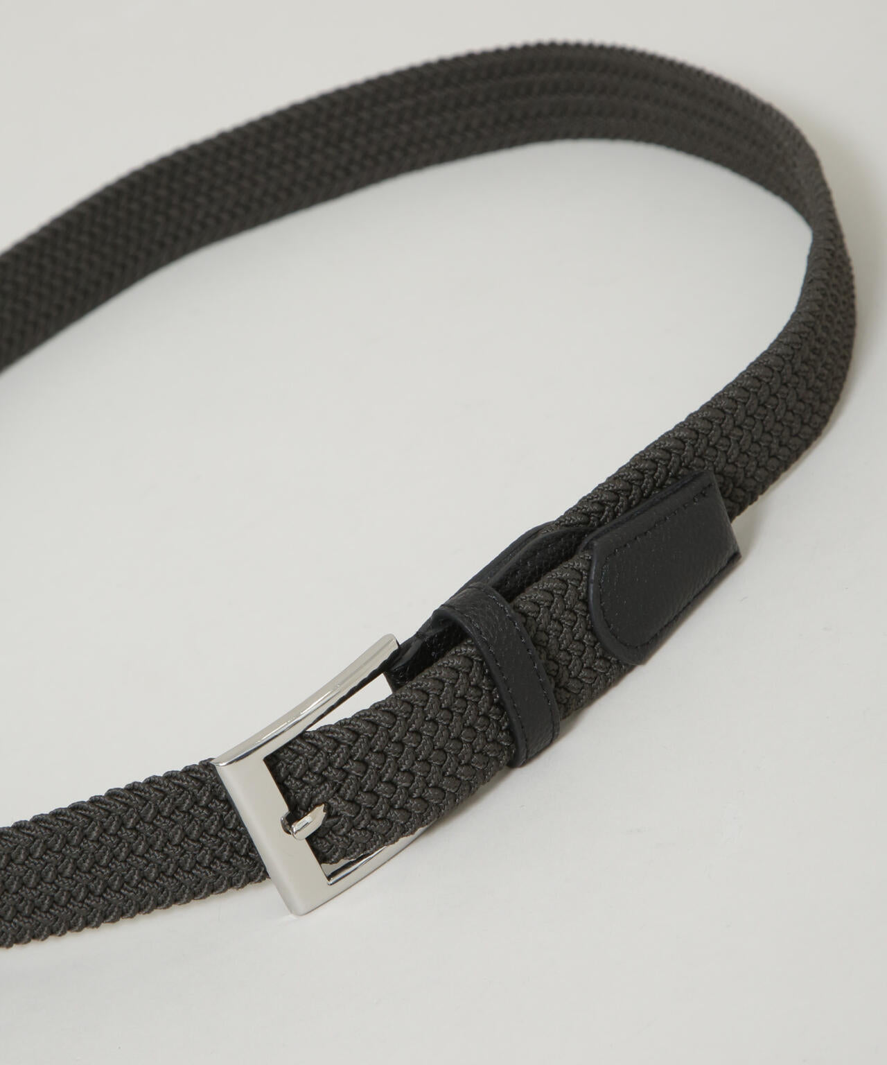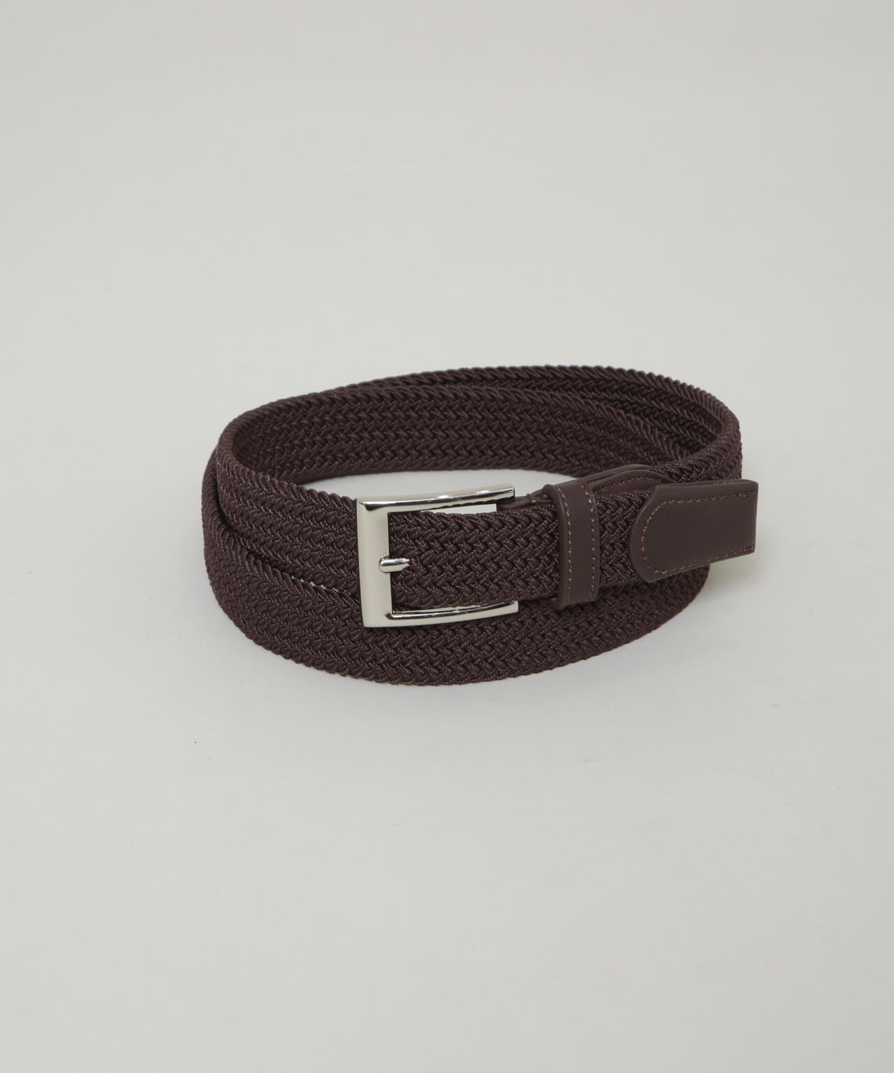 伸縮性に優れたゴムメッシュ素材を使用した、ソリッドカラーのシンプルベルト。ネイビー、Dブラウン、ブラックの落ち着いたカラー展開でONOFF問わず活躍します。