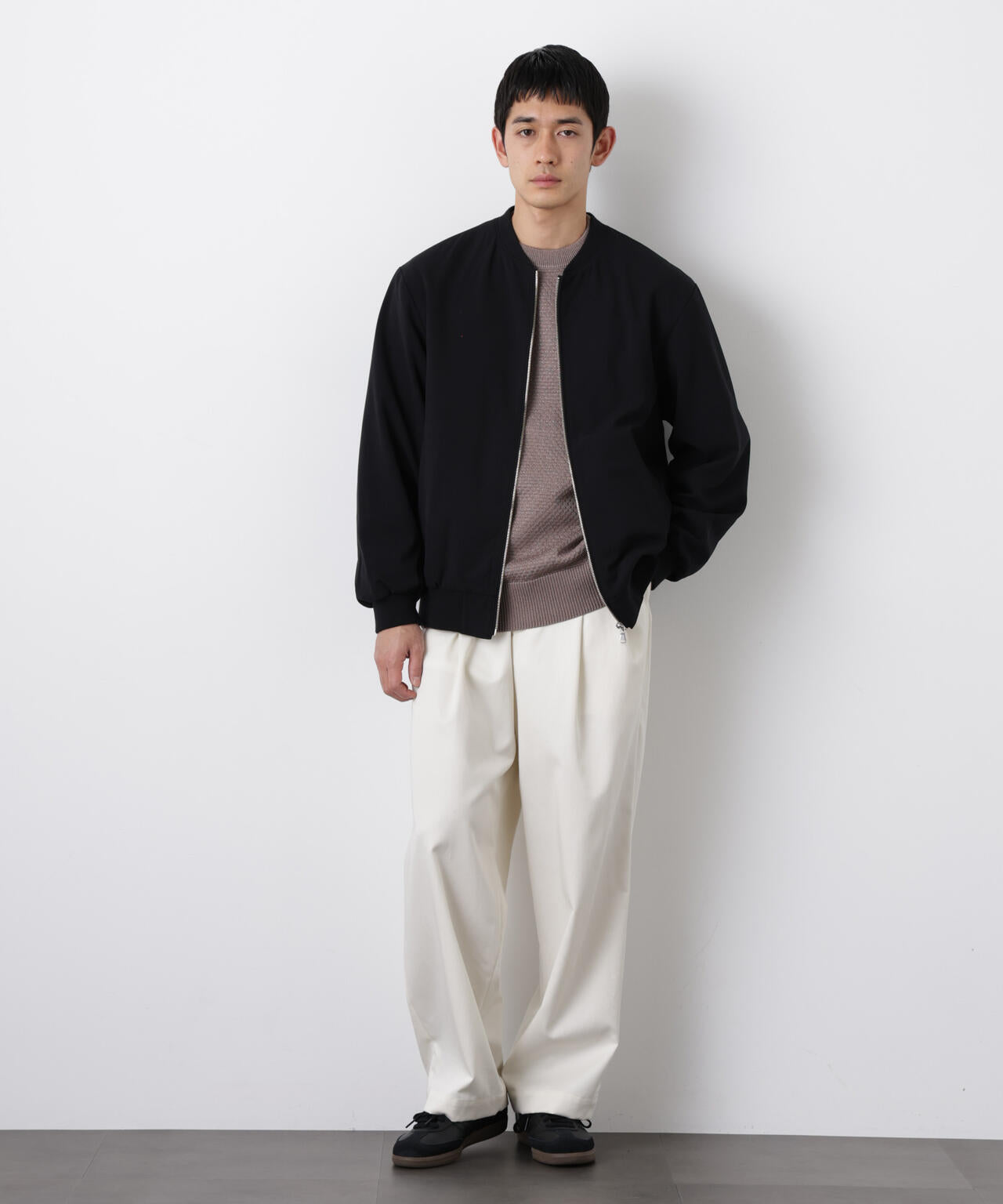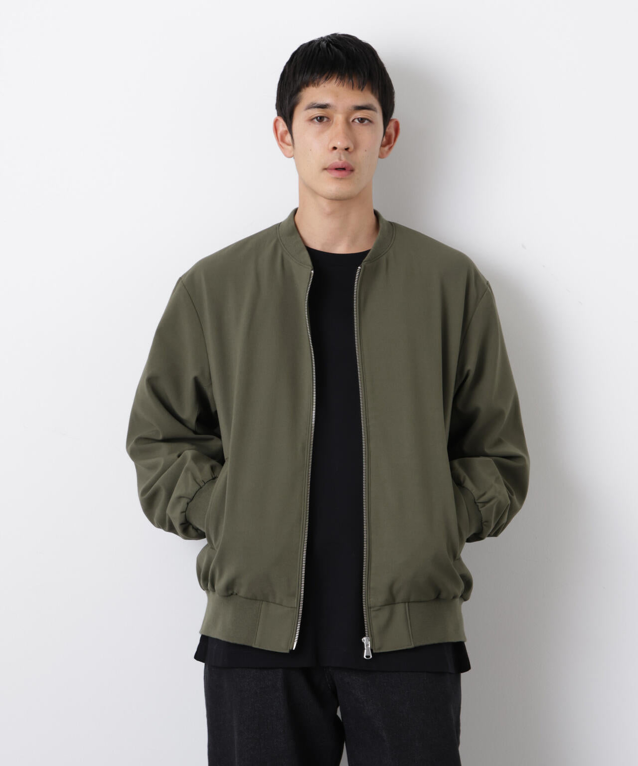 ナノ・ユニバース定番のTR MA-1。ストレッチの効いたTR生地を使用した羽織としておすすめの1着。パンツのシルエットを問わず、コーディネートに取り入れやすいアイテムです。