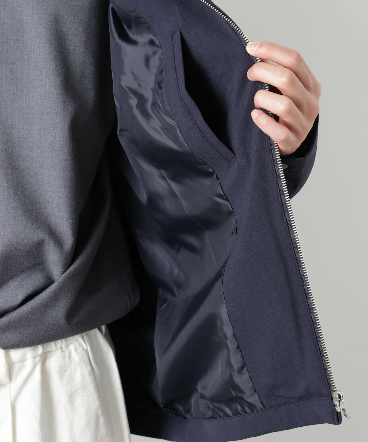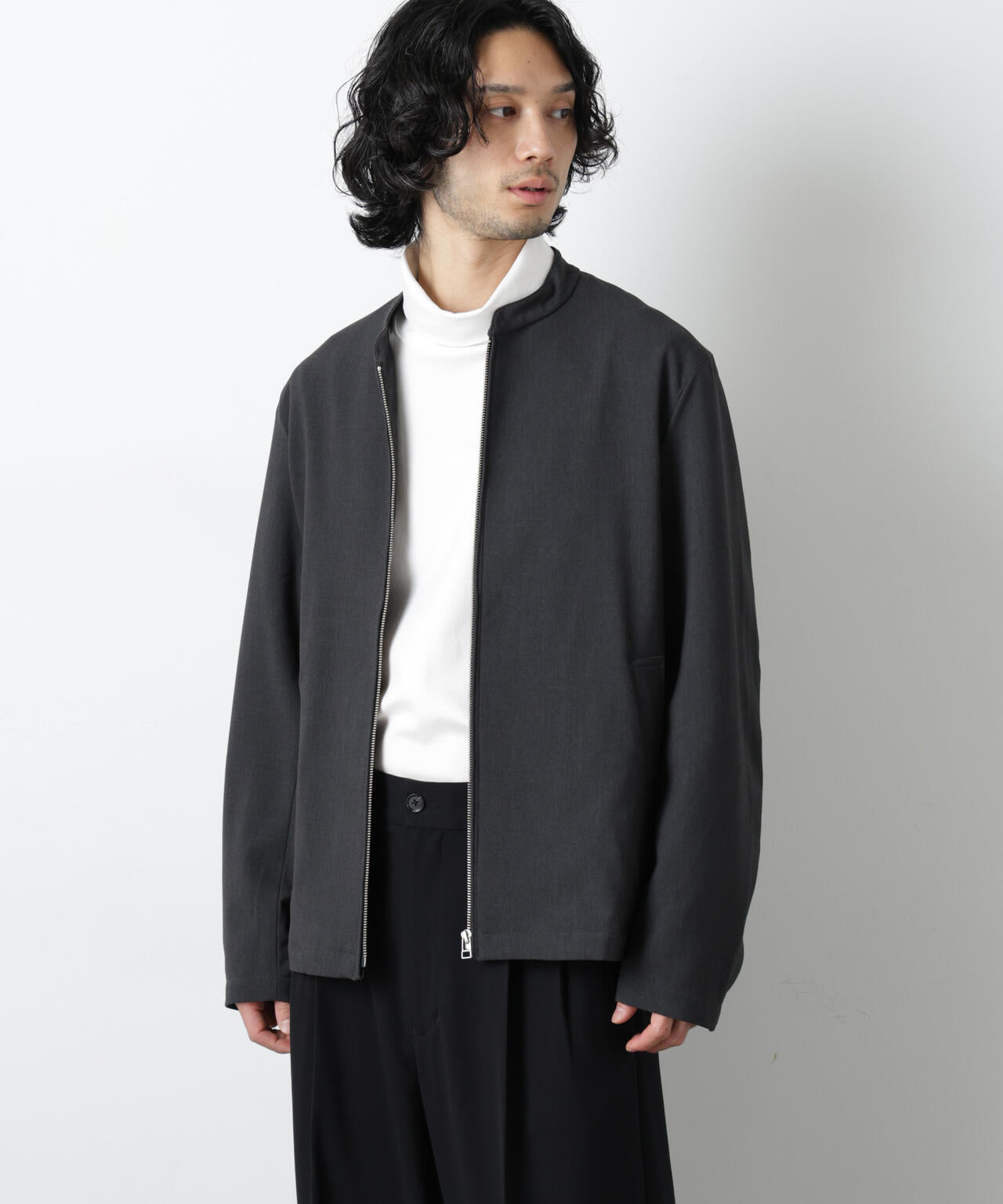 レザーライダースを布帛素材で再構築したシングルライダース。ファスナー部分にタコ糸パイピングを採用し、より引きやすく開閉しやすい仕様にアップデート。肌触りの良いツイル素材に程よい落ち感を持たせることで、ハードになりすぎず、きれいめに着用できる一枚です。