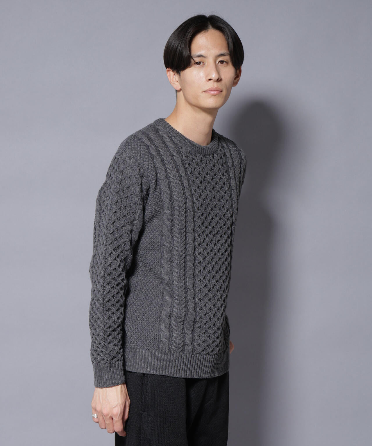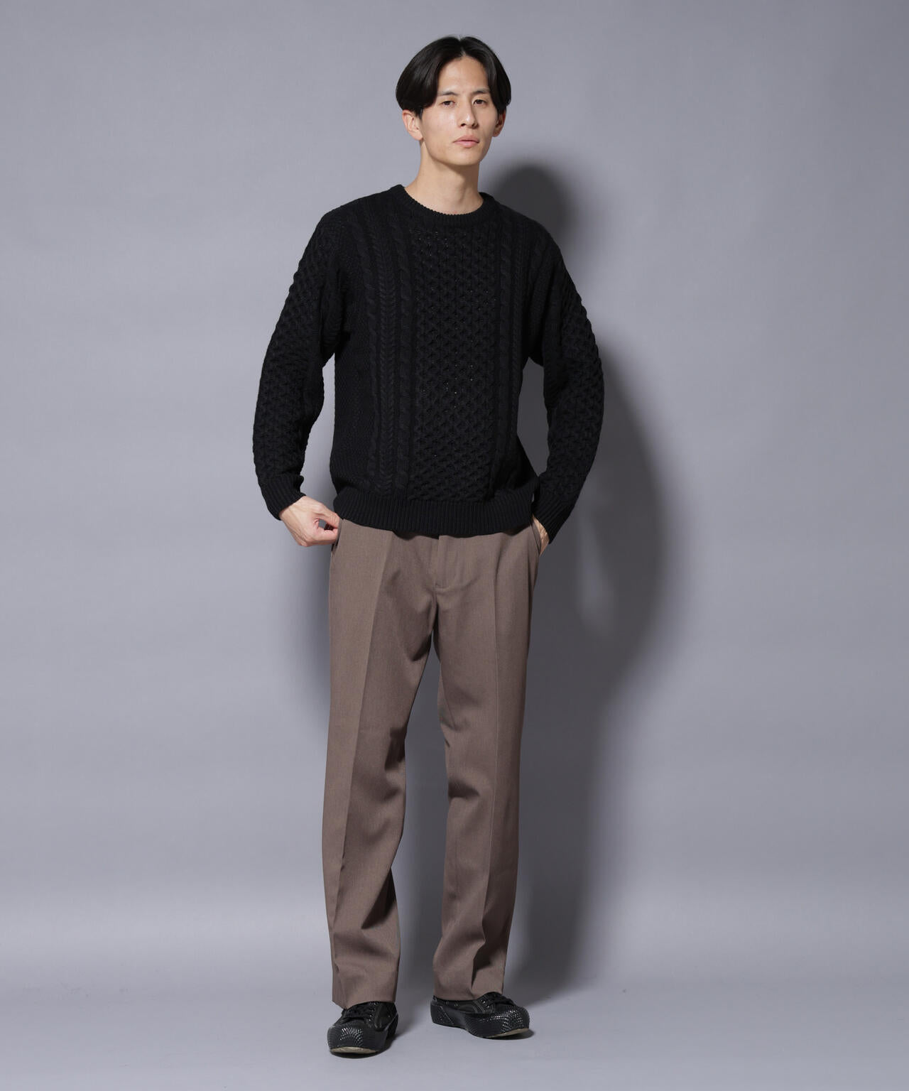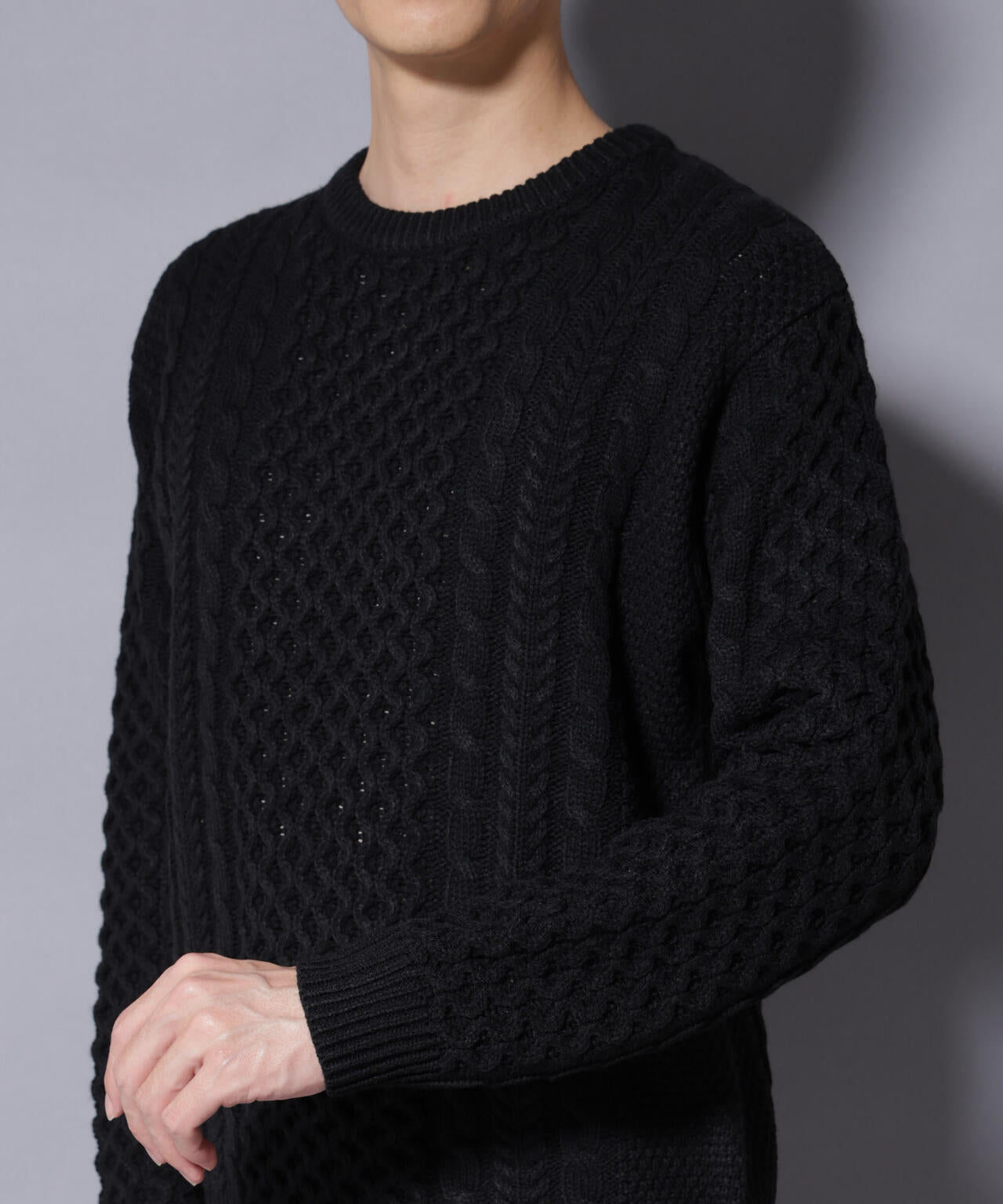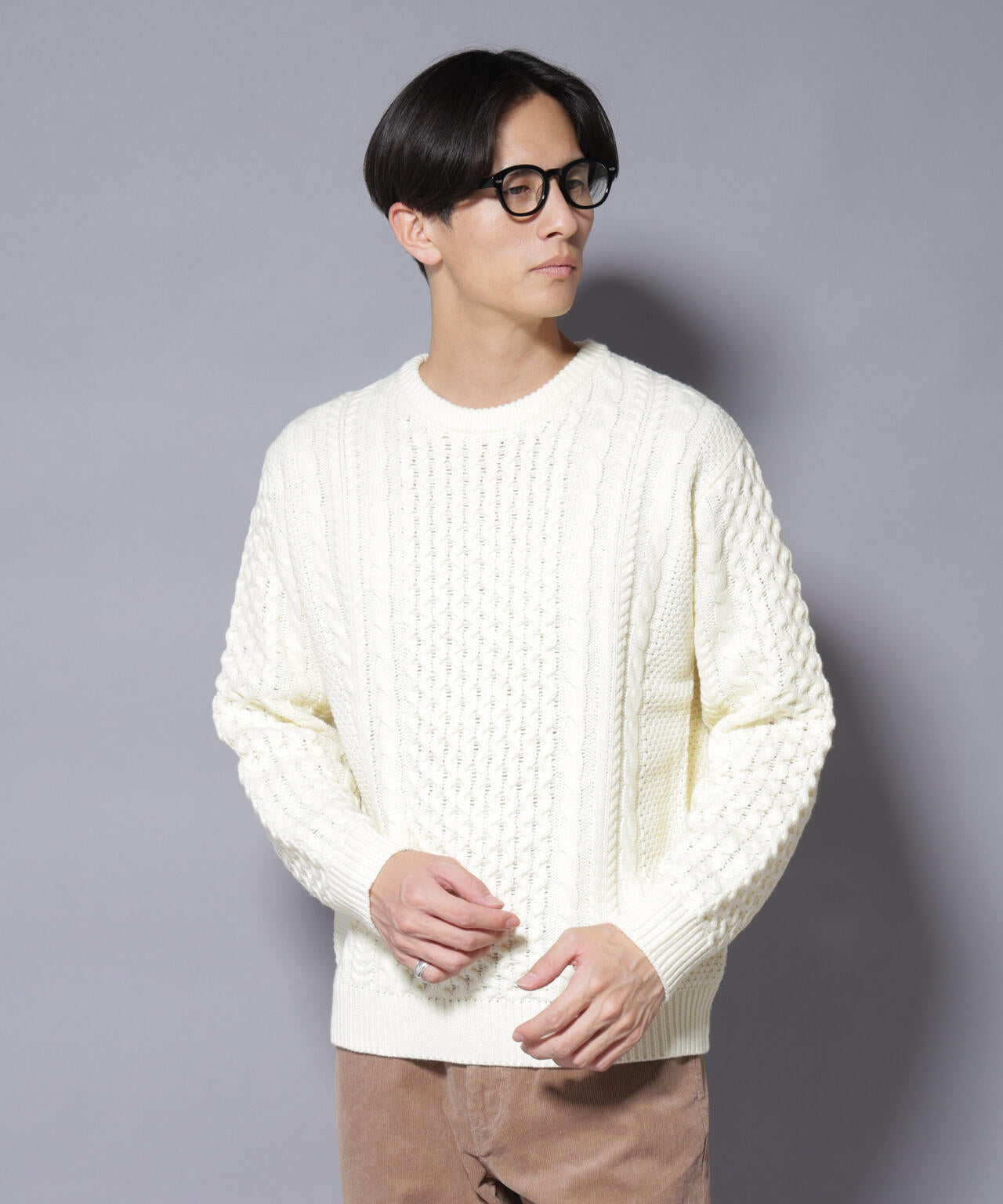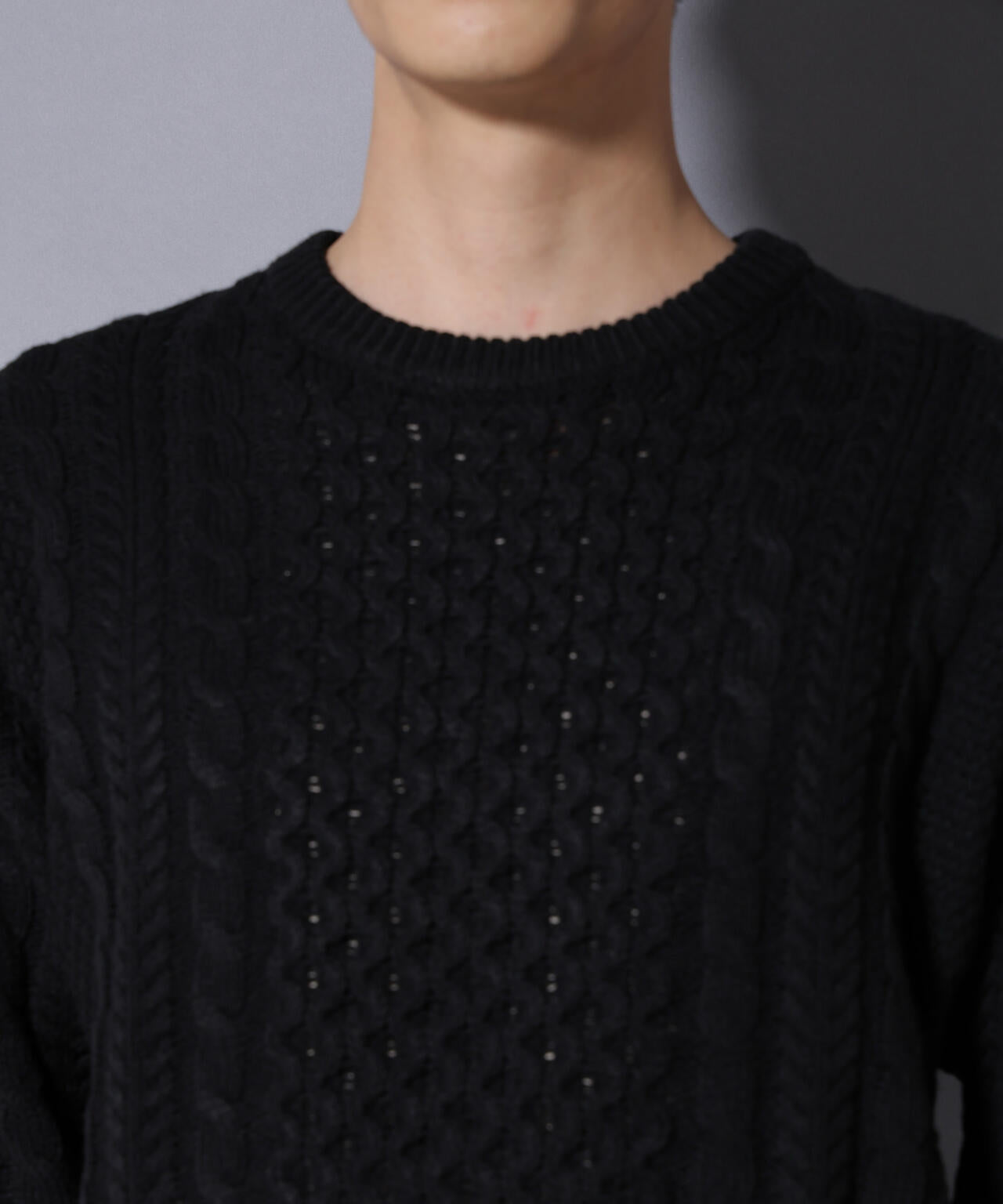 膨らみのあるバルキー糸を使用し程よい肉感に仕上げたケーブルニット。綺麗な発色で、秋冬のコートやアウターのインナーにおすすめのアイテムです。