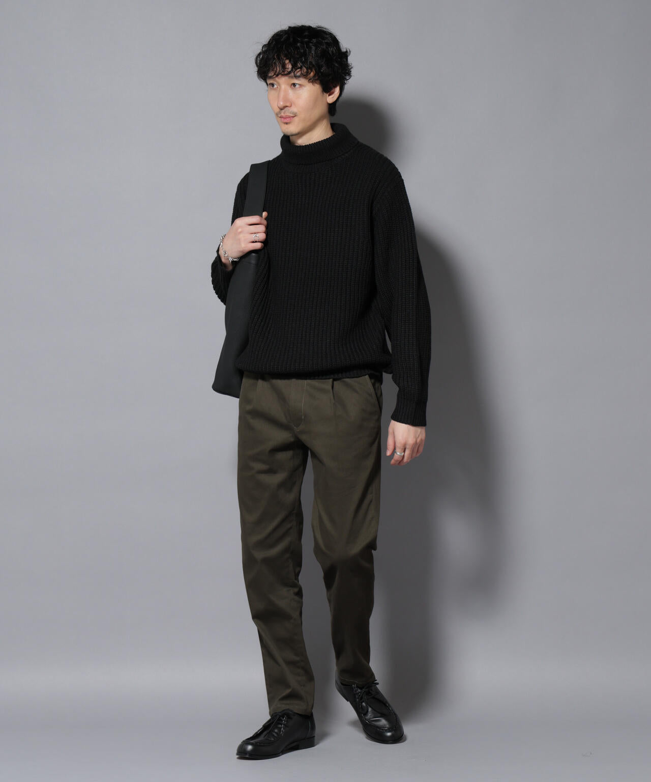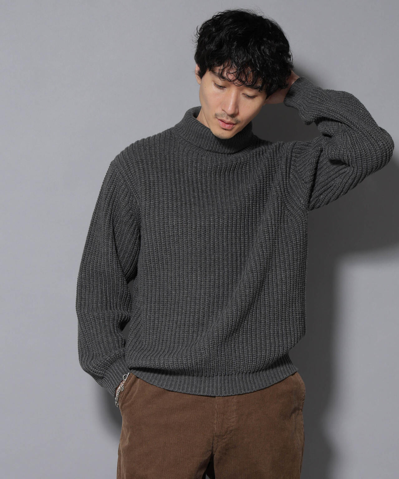 膨らみのあるバルキー糸を使用したタートルニット。綺麗な発色で、秋冬のコートやアウターのインナーにおすすめのアイテムです。