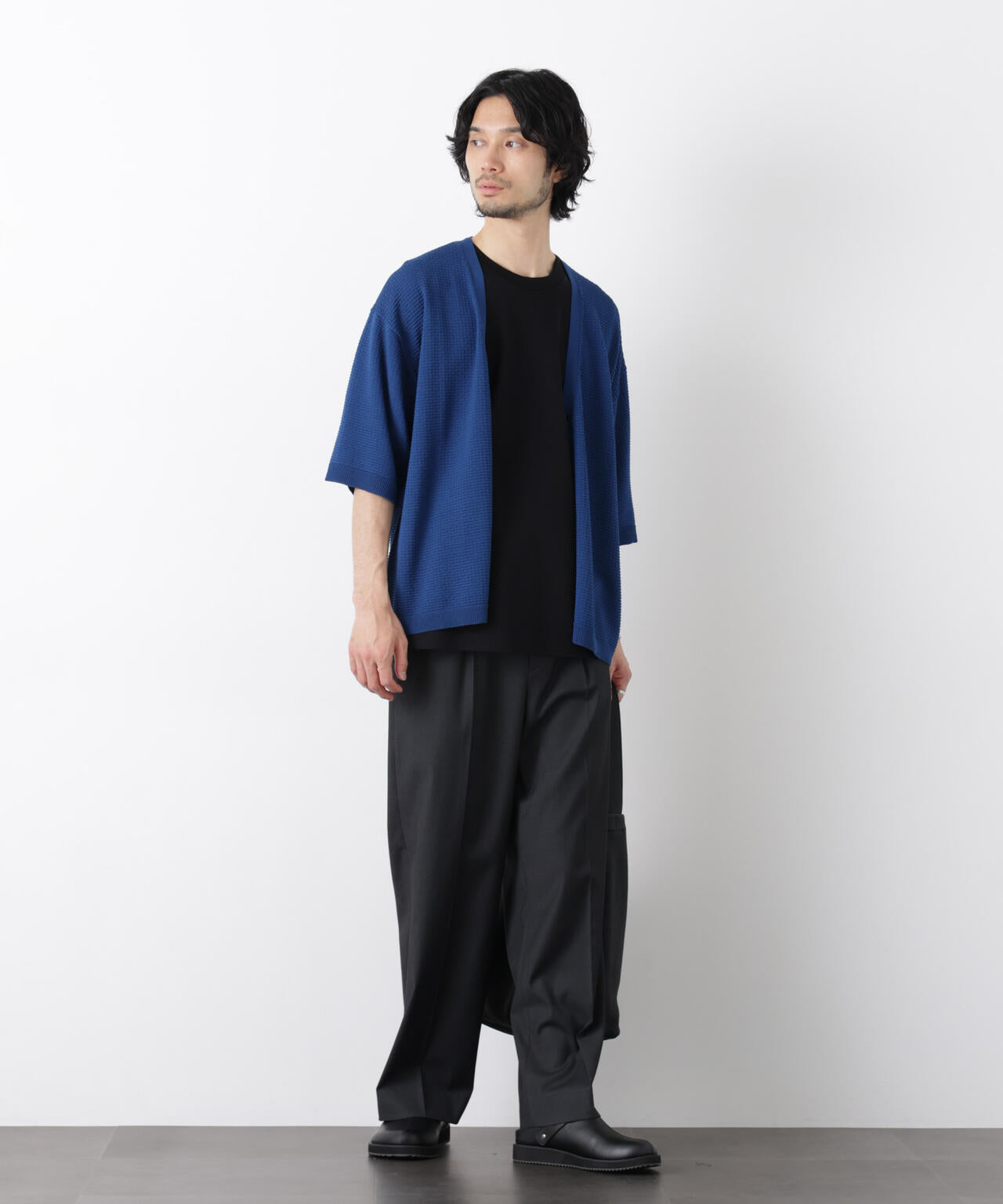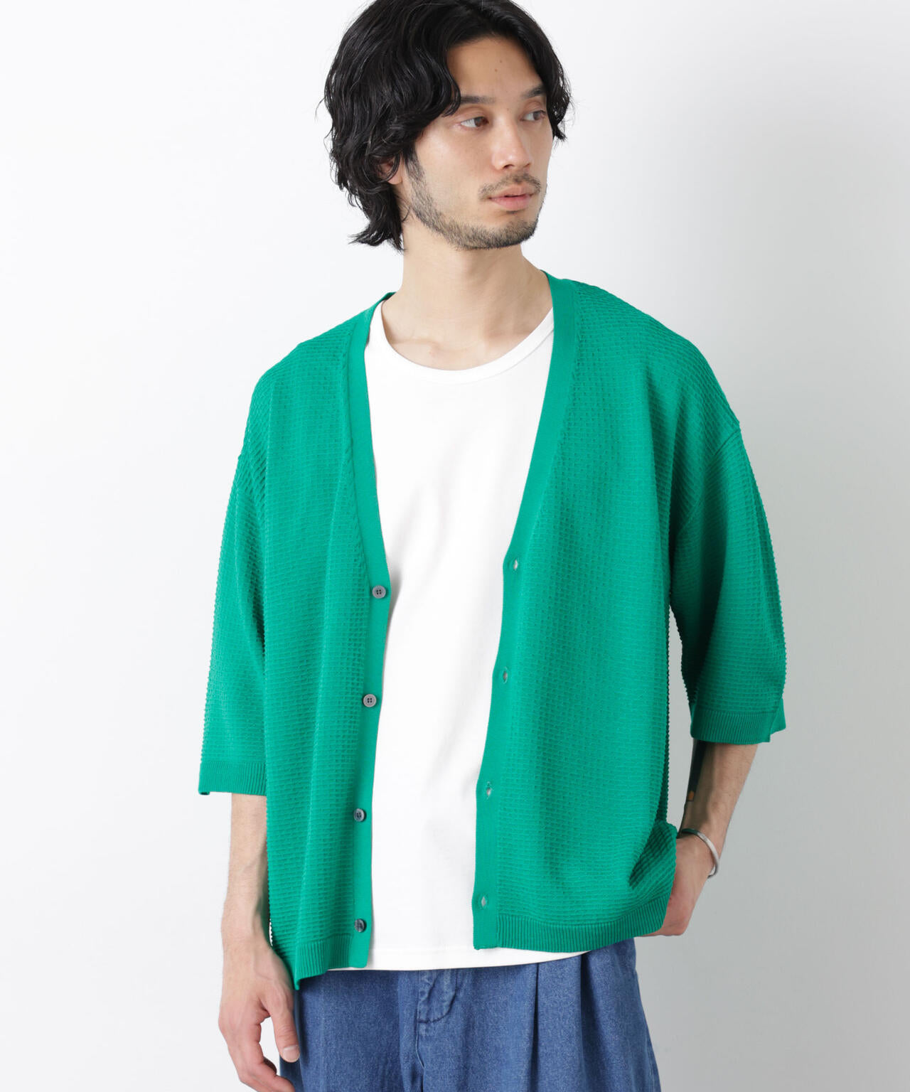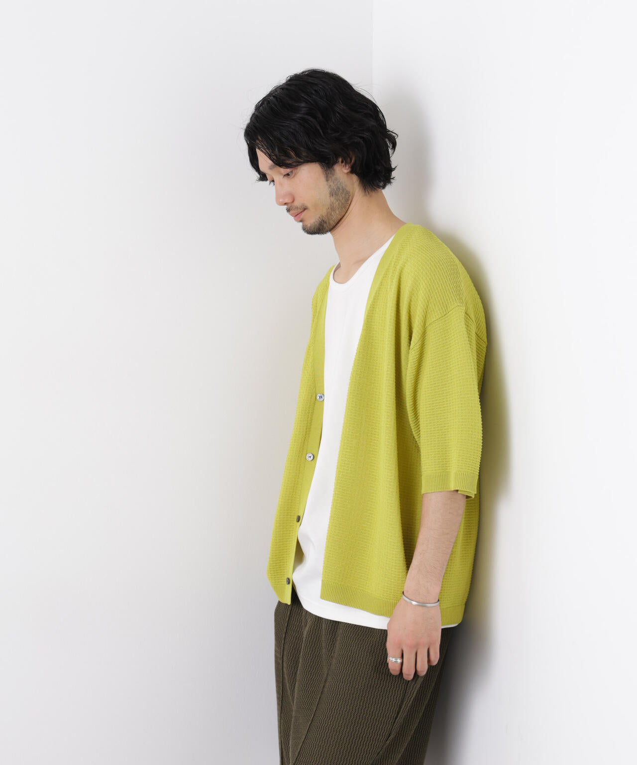 奥行きのある表情が魅力のニットカーディガン。リネンライクなドライタッチ素材が、さらりとした清涼感と程よい落ち感を併せ持ち、肌離れの良い快適な着心地を提供。上品で洗練された見え方と通気性の良さを両立した、春夏シーズンを通して活躍する一枚です。