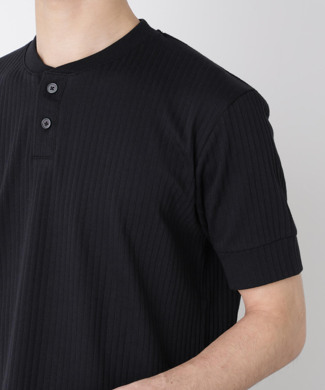 凹凸感が特徴的なオリジナルのリブ素材を使用したヘンリーネックTシャツ