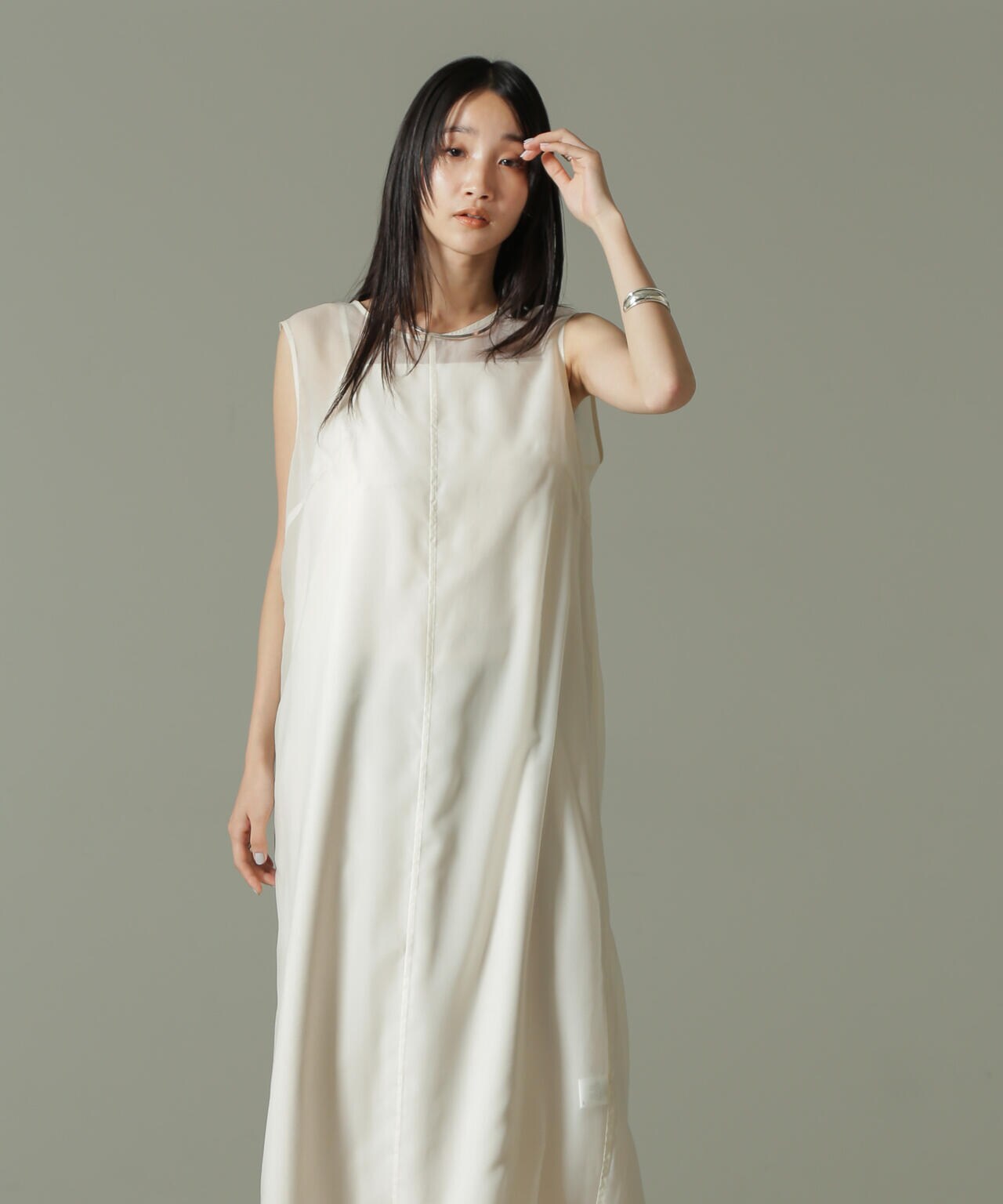 ヘルシーな雰囲気のレイヤードスタイルを楽しめるワンピース。装飾を取り除いたシンプルなデザインと、Iラインのシルエットがスタイリッシュで女性らしい印象に。そのままセットでオケージョンスタイルはもちろん、デニムやワイドパンツを合わせてカジュアルな雰囲気で着て頂くのもおすすめです。