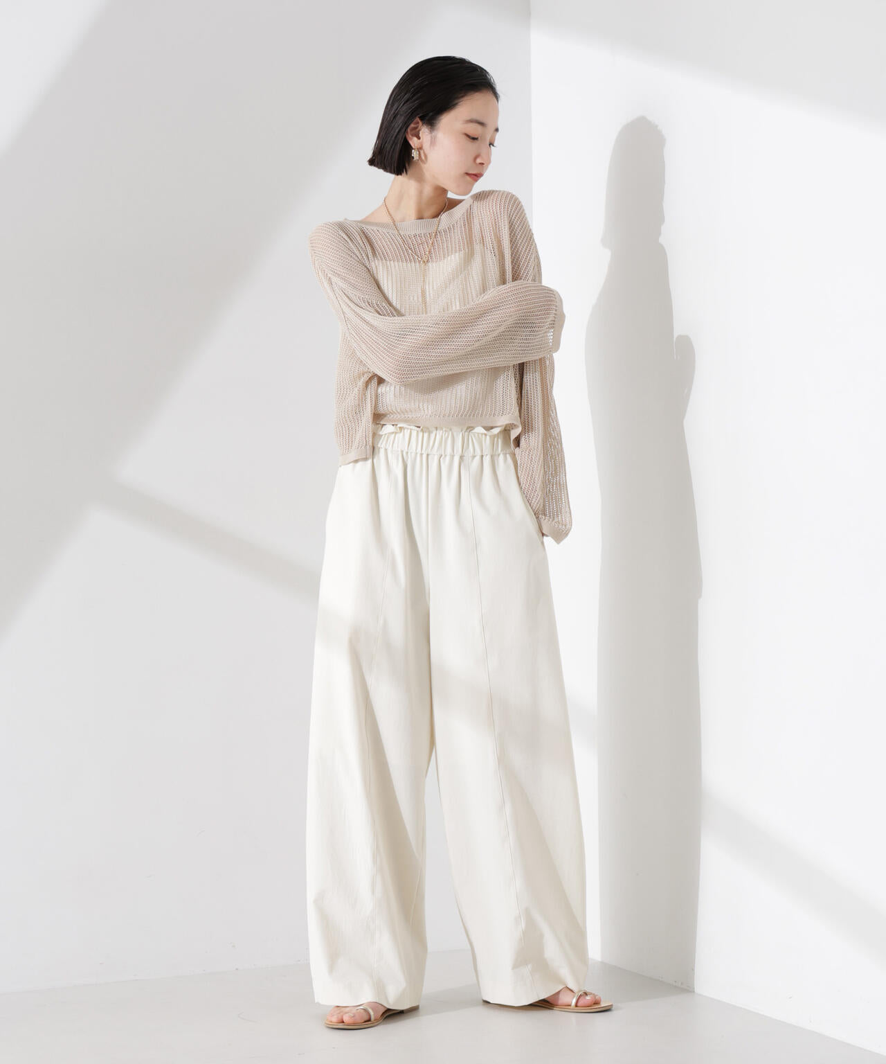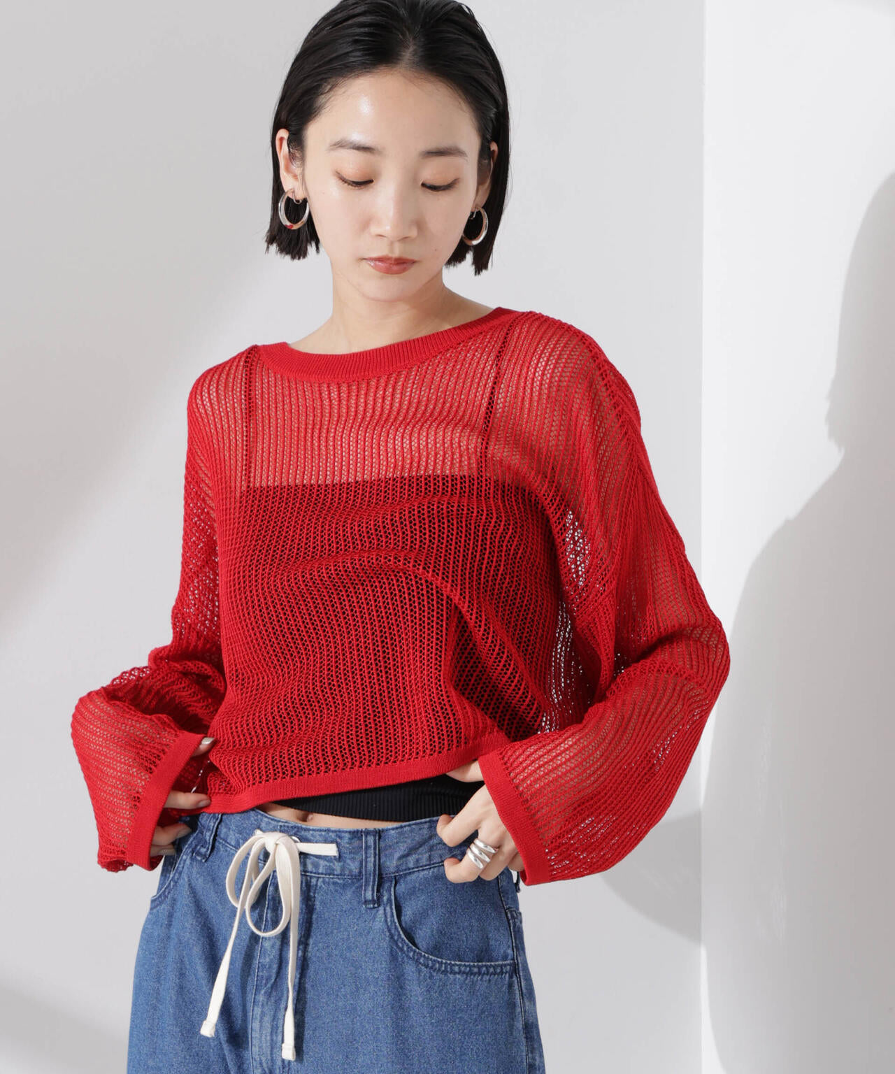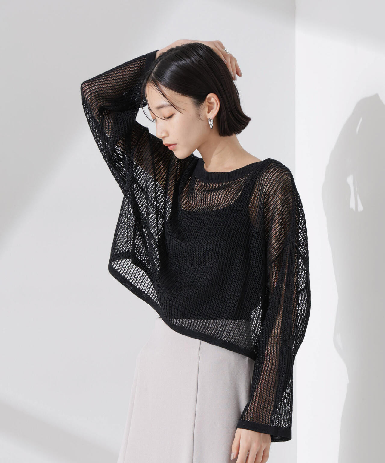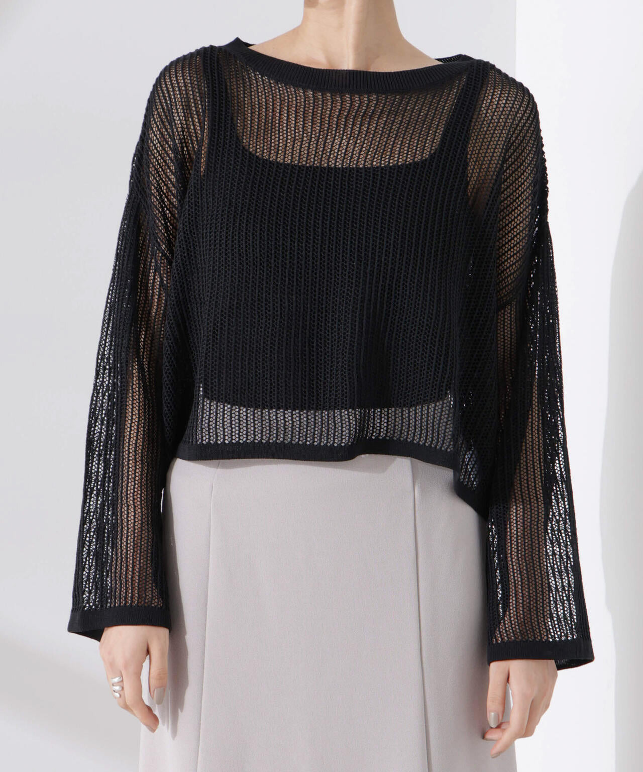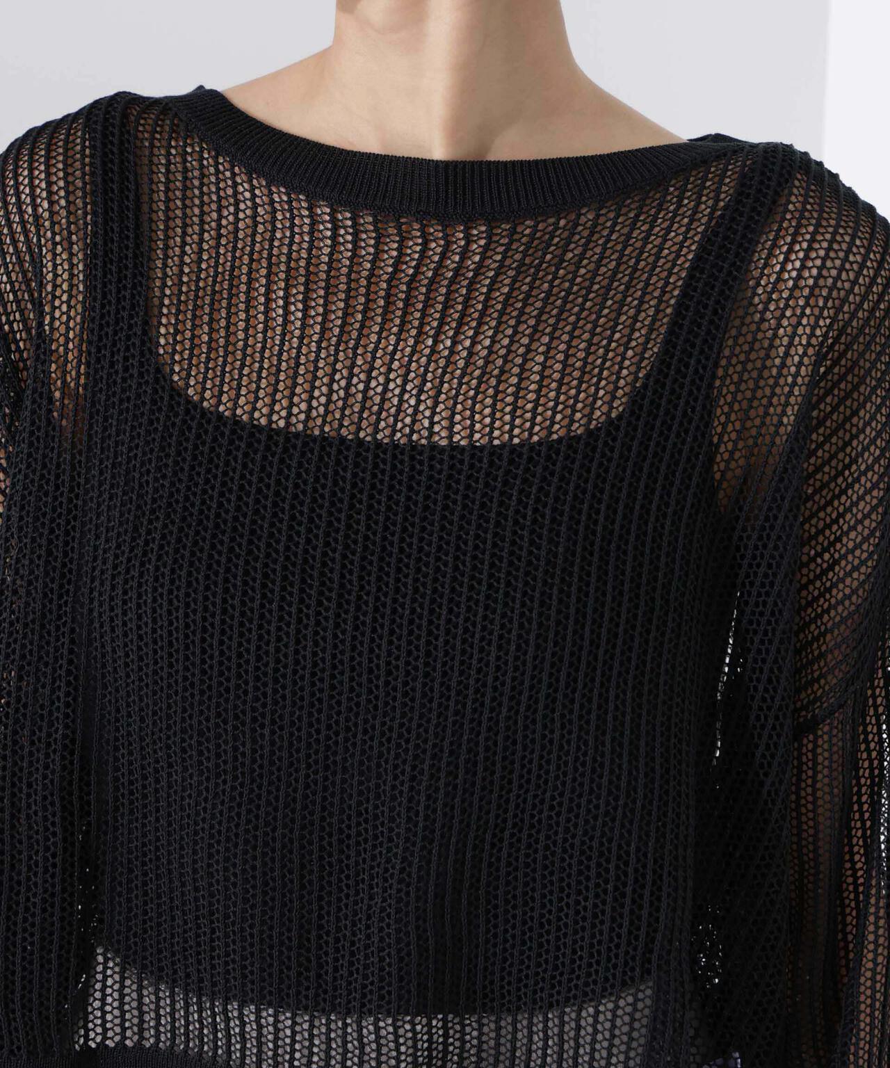 トレンドの透け感をメッシュ編みで表現したニットトップス