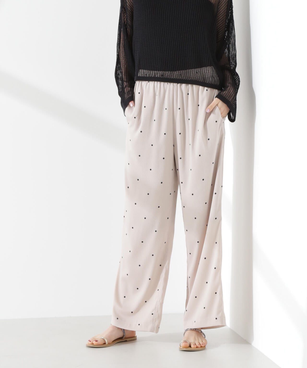 オリジナルのドット柄プリントが目をひくイージーパンツ