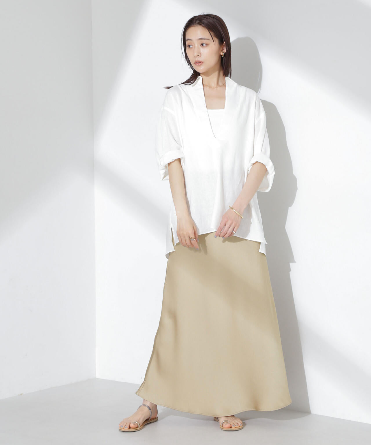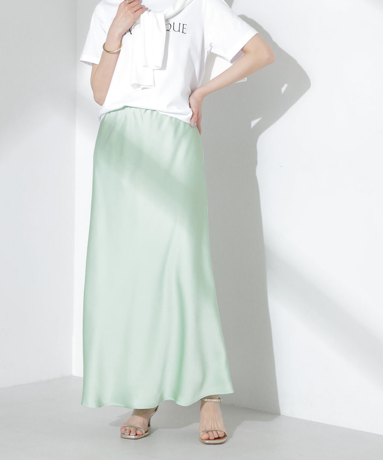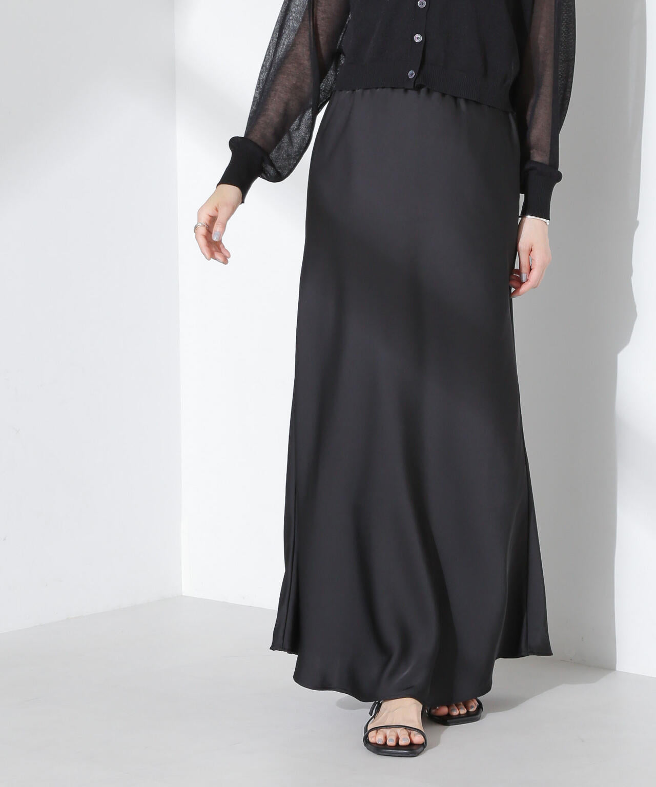 オンオフで楽しめる大人レディな仕上がりのサテンスカート