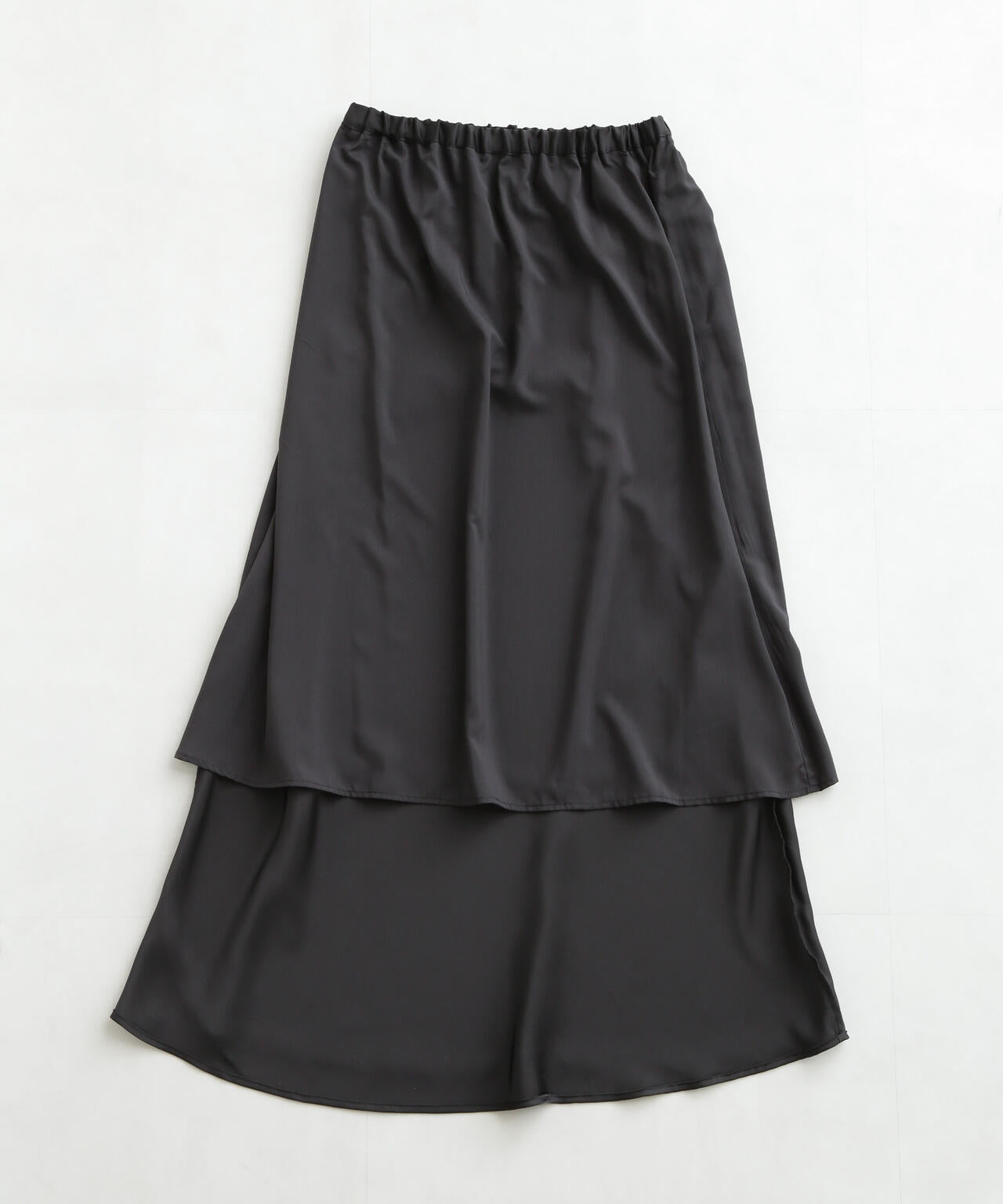 裾に向かって入ったフレア感が上品なサテンマキシスカート。品のあるしなやかさがありつつ、ウエストゴムのイージー仕様も嬉しい!程よい光沢感が女性らしくオケージョンやセレモニーシーンにも活躍する一枚です。