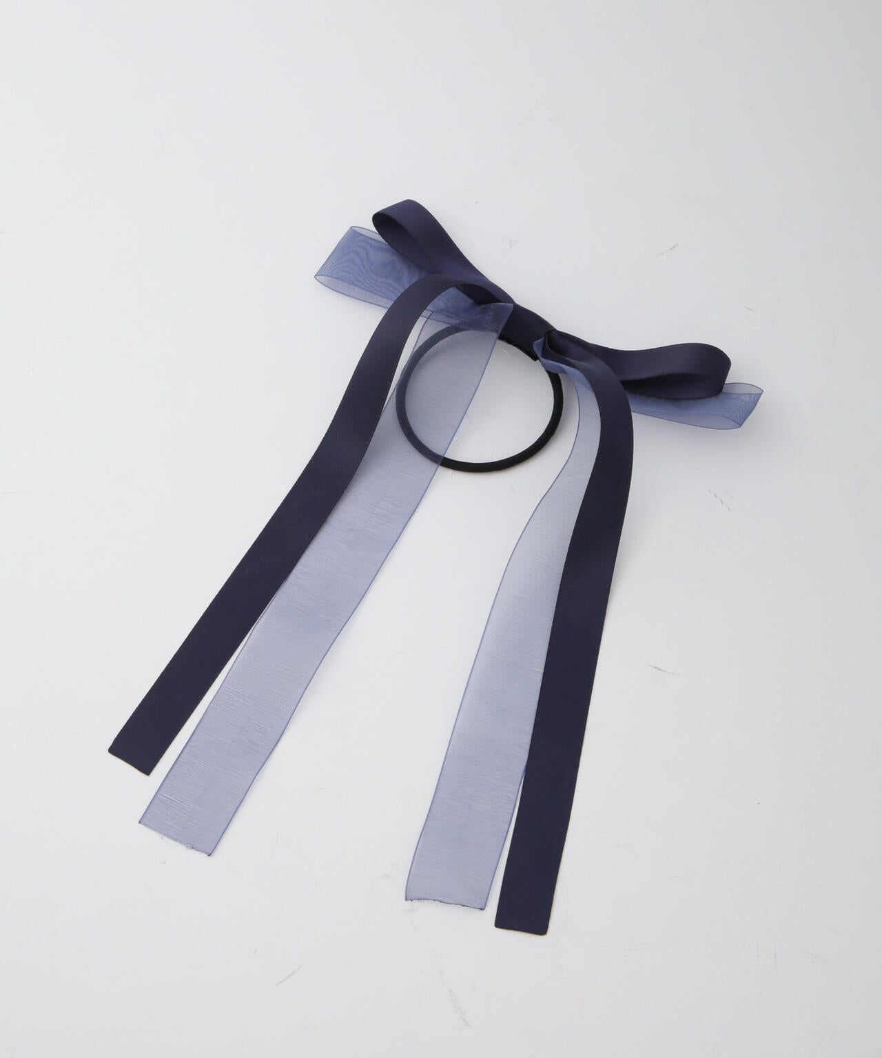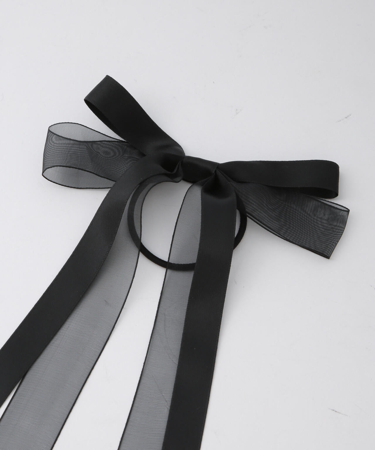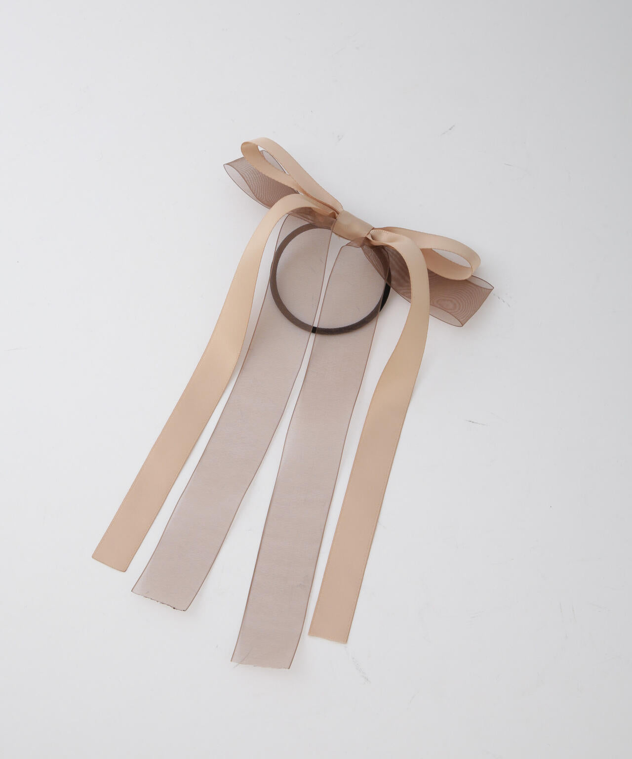 二つの生地を掛け合わせたリボンデザインが華やかな印象のヘアゴム。一点投入でヘアスタイルがサマになるので、デートやお呼ばれシーンに重宝してくれます。