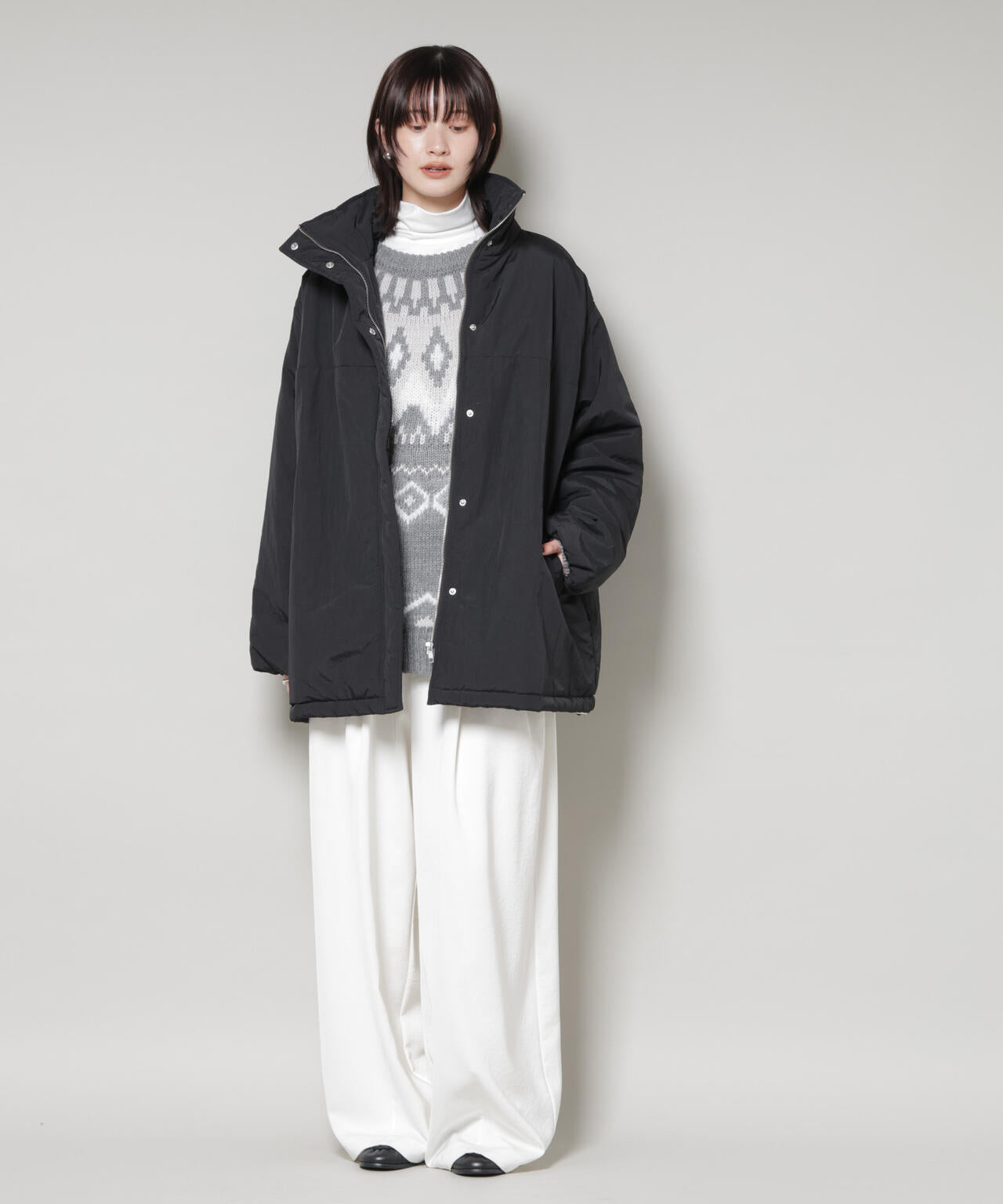 ボリュームある中綿のデザインが特徴のスタンドカラーブルゾン
