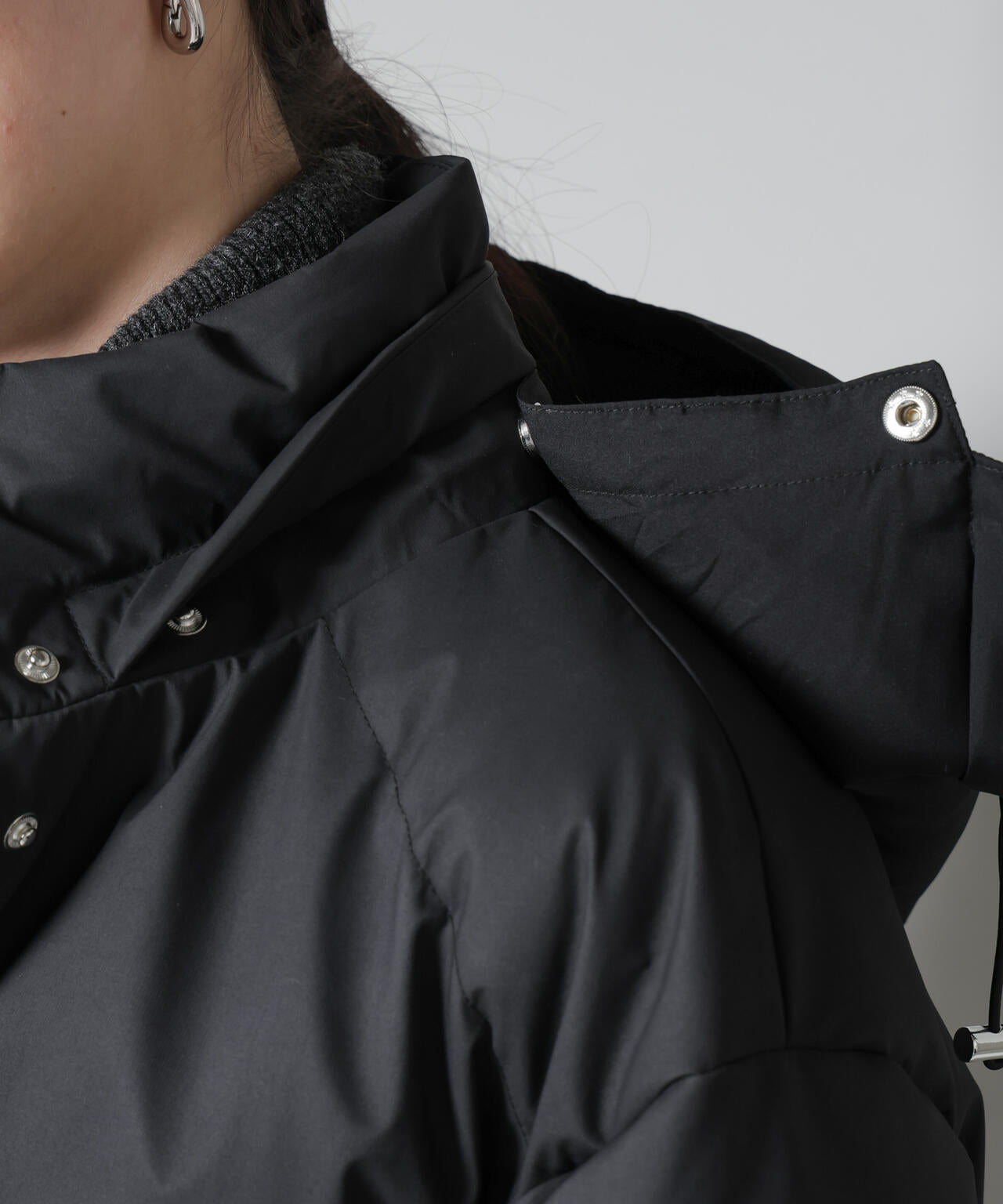 大人の女性らしさ引き立つAラインシルエットのミドル丈ダウンコート。スタイリングやボトムスに合わせて、裾のドロストコードで好みのシルエットに調節も可能。ダウンとフェザーの暖かく軽やかな着心地がデイリーに重宝する一着です。