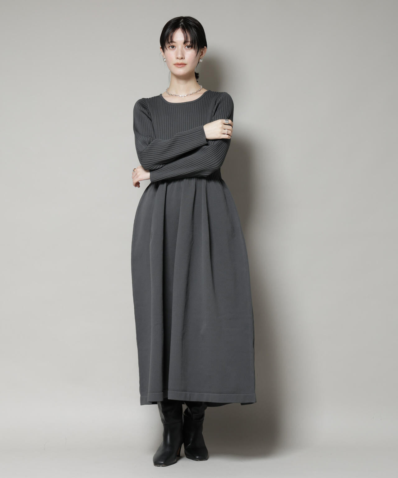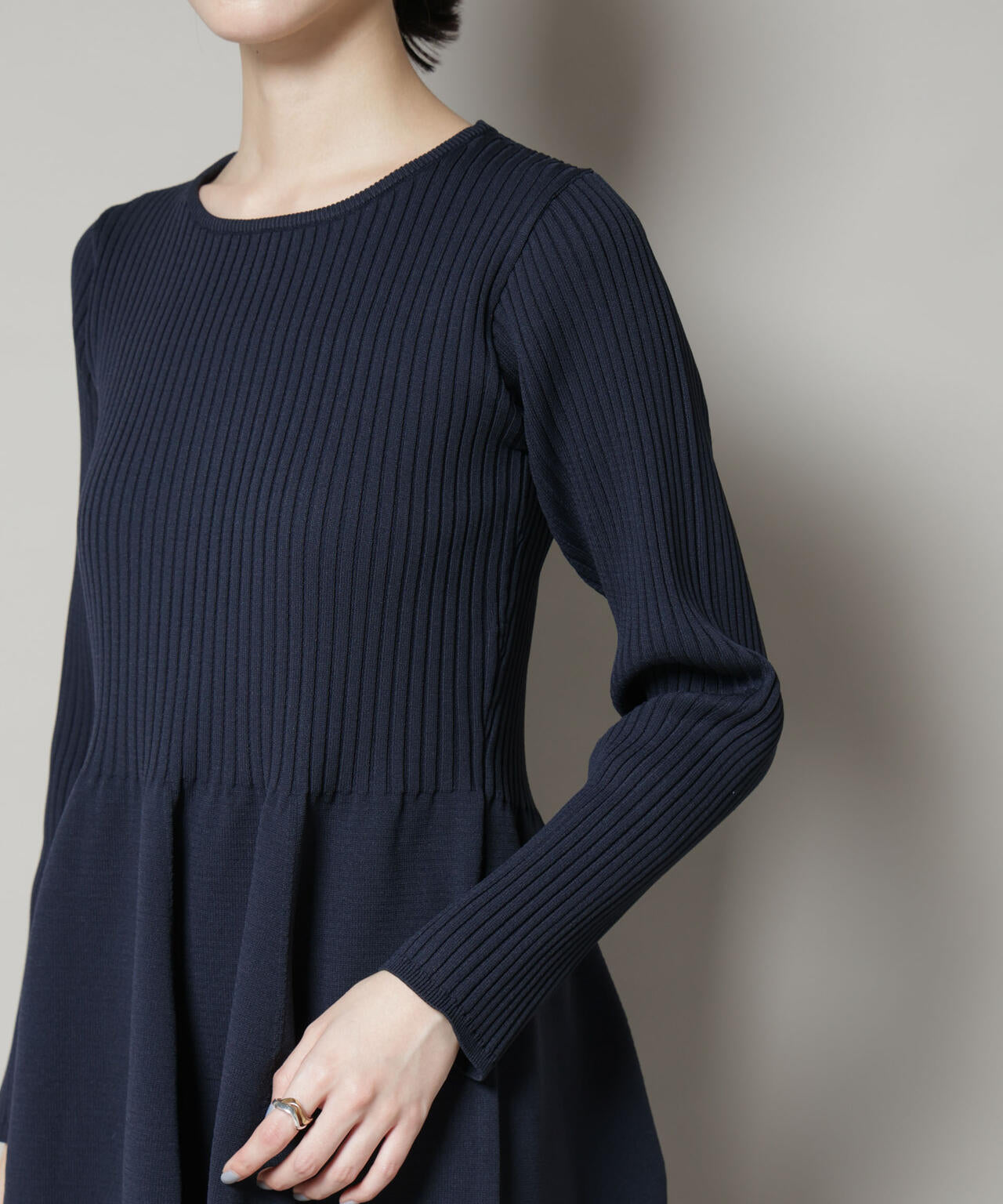 ウエストから立体的に広がるフォルムが美しいニットワンピース