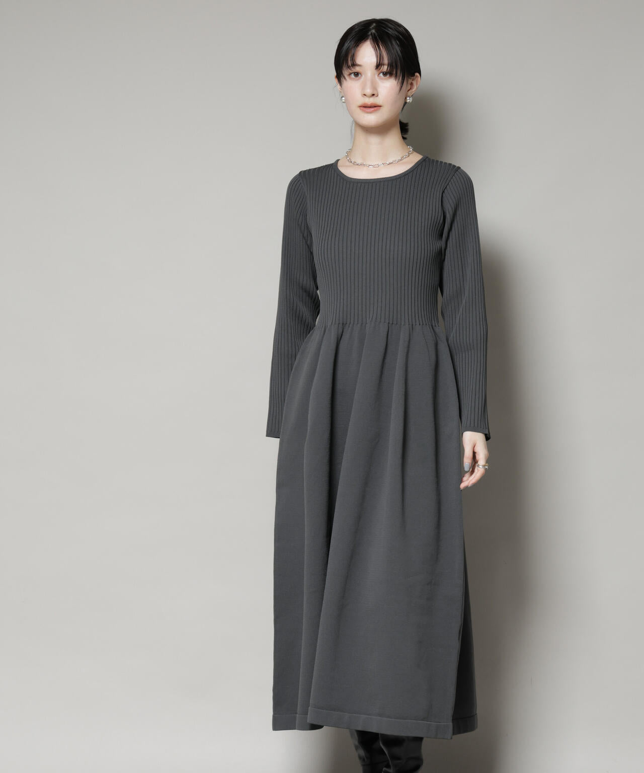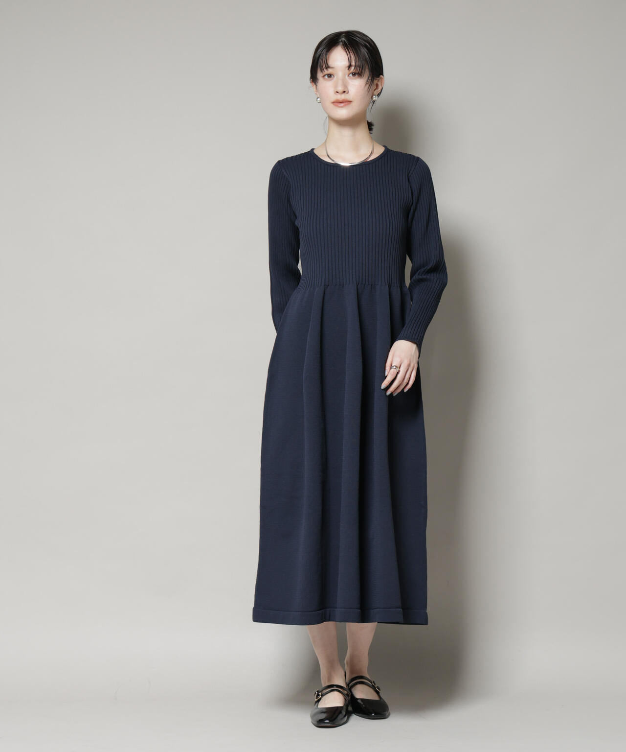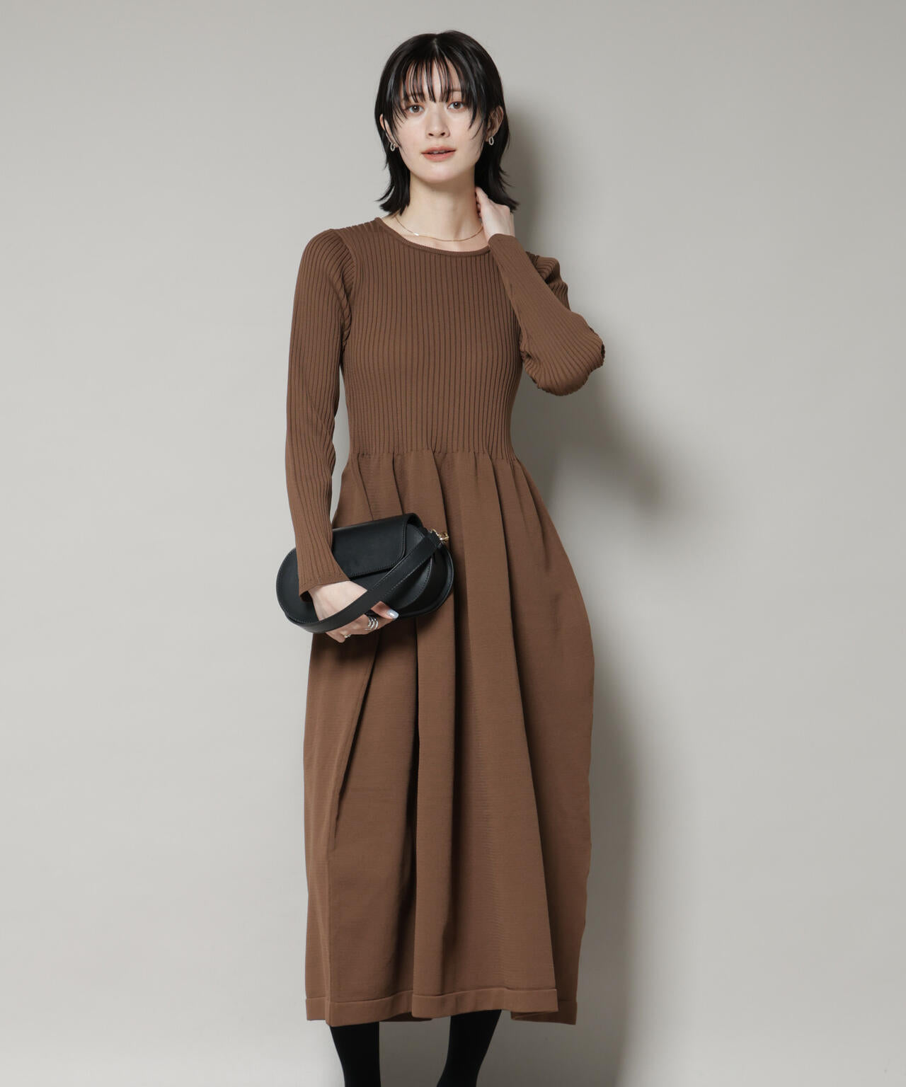 ウエストから立体的に広がるフォルムが美しいニットワンピース。デイリーシーンの着回しにはもちろん、アクセサリーなどの小物使いでオケージョンスタイルまで幅広く頼れる逸品です。