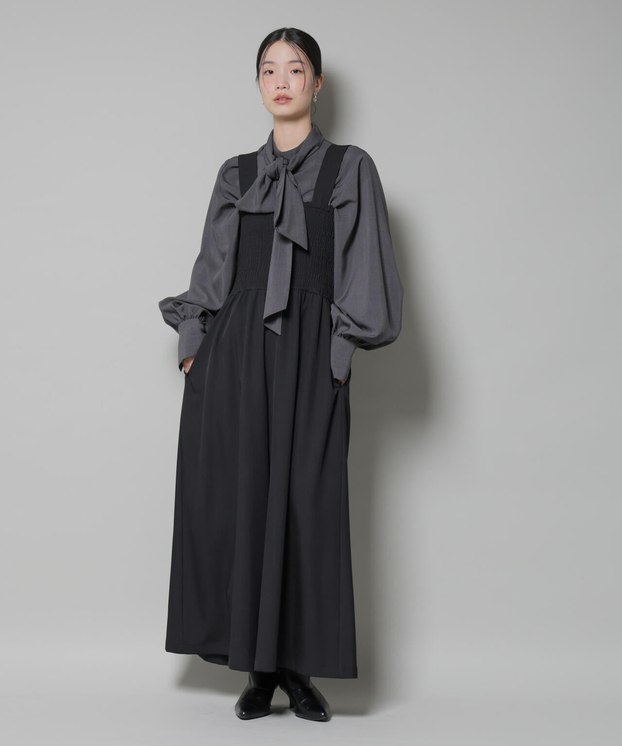 ワンピース感覚で着用できる股上深めのデザイン